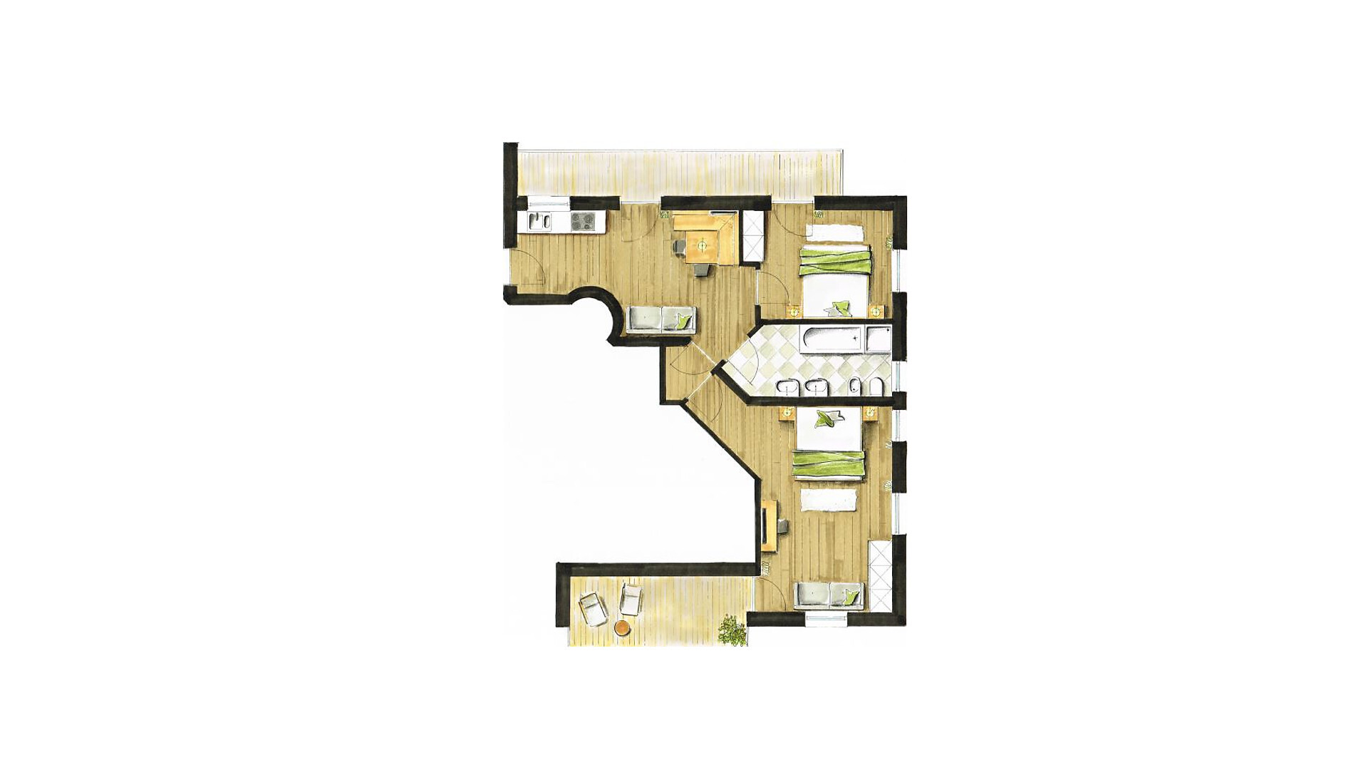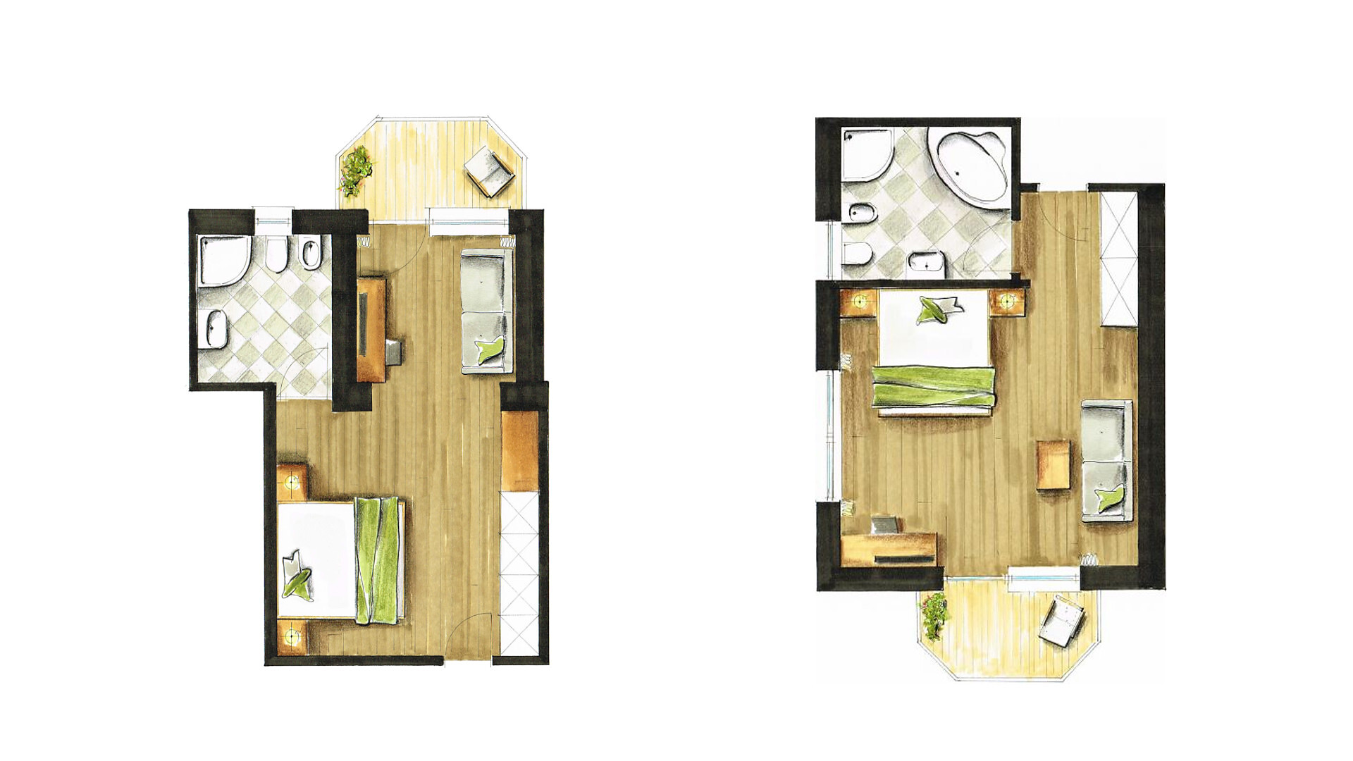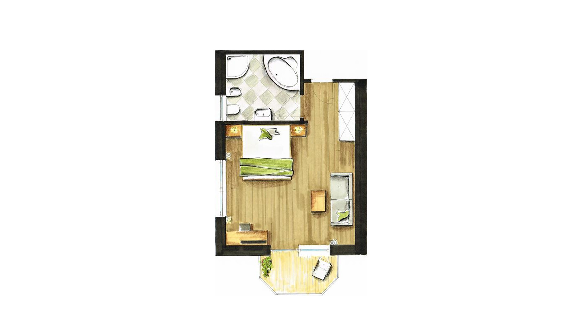 Double room, Double bed , Cot, Balcony, Safe, Shower / Bath tub, Hair dryer, Bathrobe, TV, WLAN, Hotel annex, Panoramic view, South view