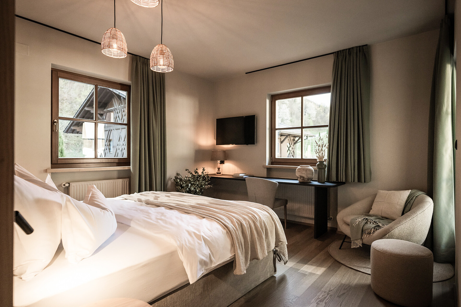 Why not staying longer to fully enjoy the Christmas season. Right now it is especially beautiful. Marvel at the sea of lights at the Merano Christmas Market, catch the silence on a snowshoe hike or relax in our new Brunnenhaus.Spa. We promise you war...