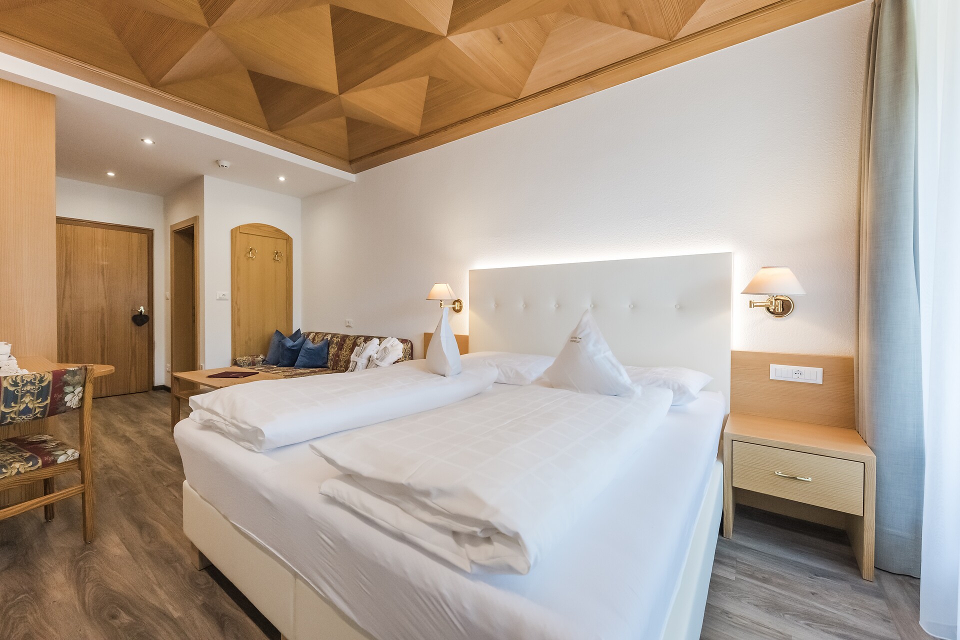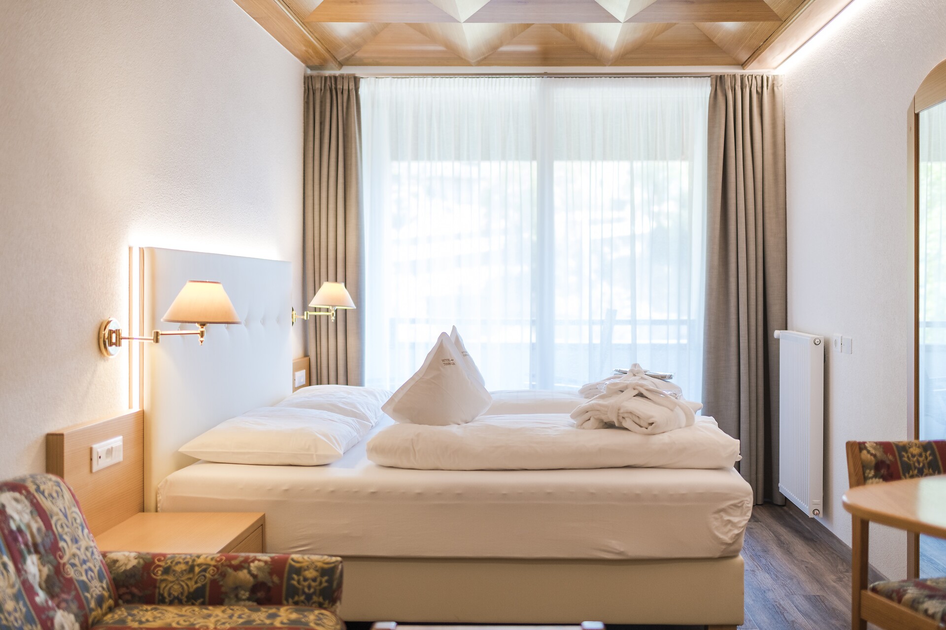 Very spacious and warm rooms with balcony to the south and satellite TV. 4-course menu with Italian and Upper Adige specialties. Healthy and rich breakfast buffet. Lovely walks and excursions! Evenings with slides, organized excursions, visits to the Ötzi museum and guided tours to mountain peaks. Dinners by candlelight, Sunday aperitif, breakfast with "spumante".