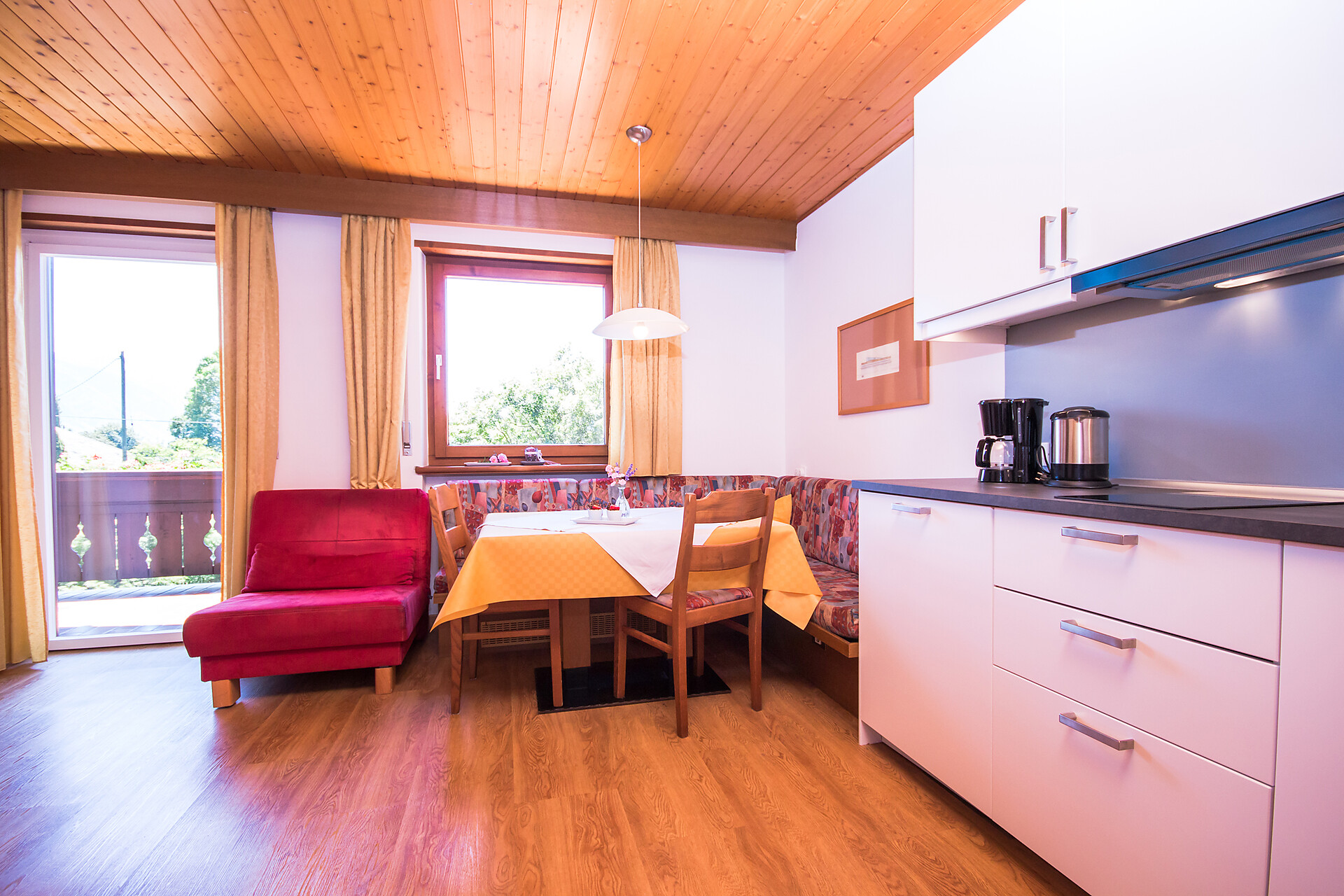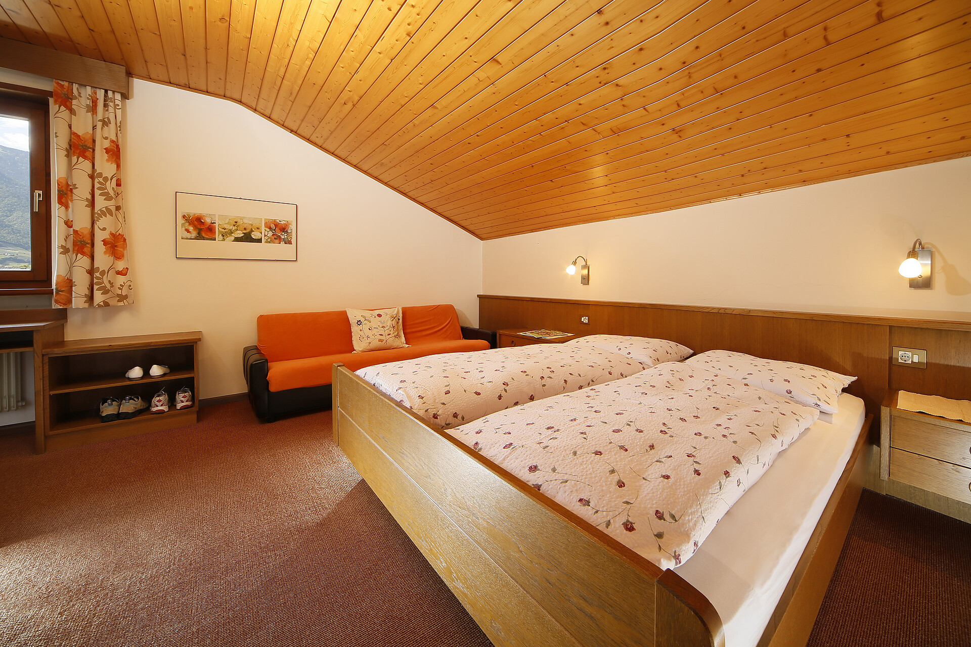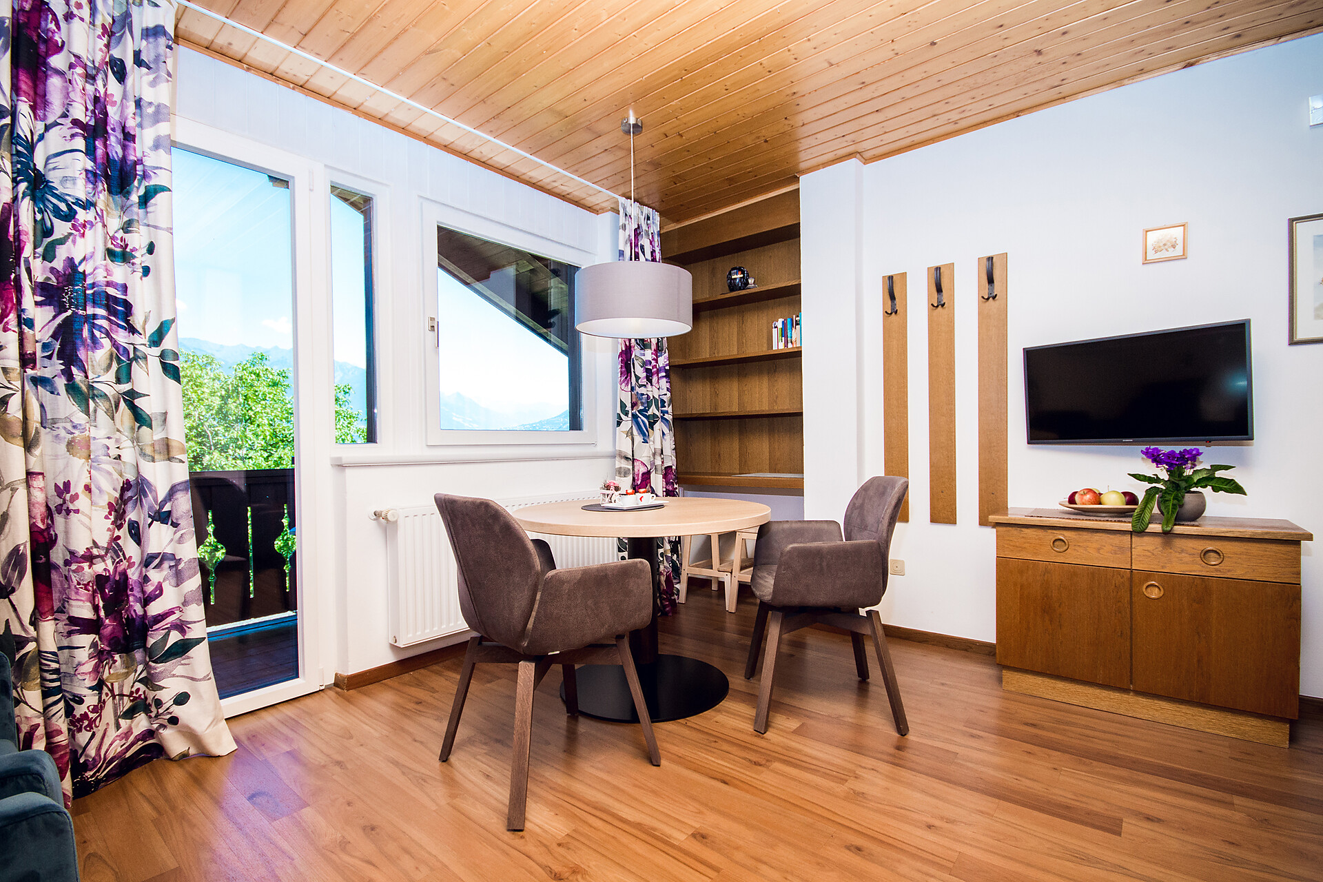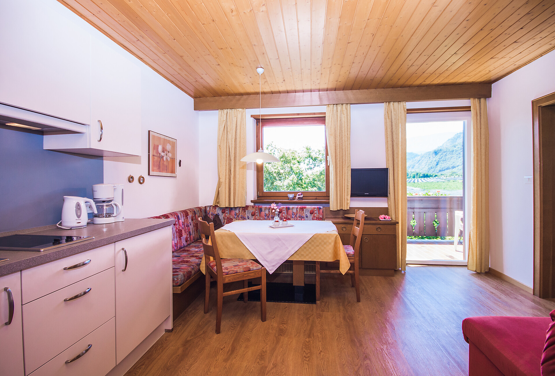 Our most spacious apartment is ideal for families with children. In addition to a cozy living room and bedroom, it also has an adjoining small children's room. From the balcony you can enjoy the view of the blossoming Adige Valley