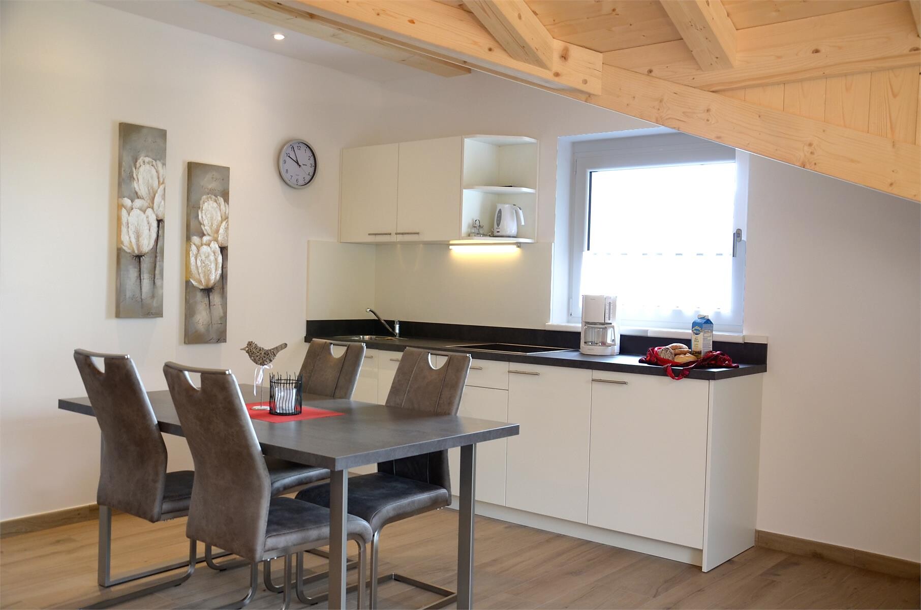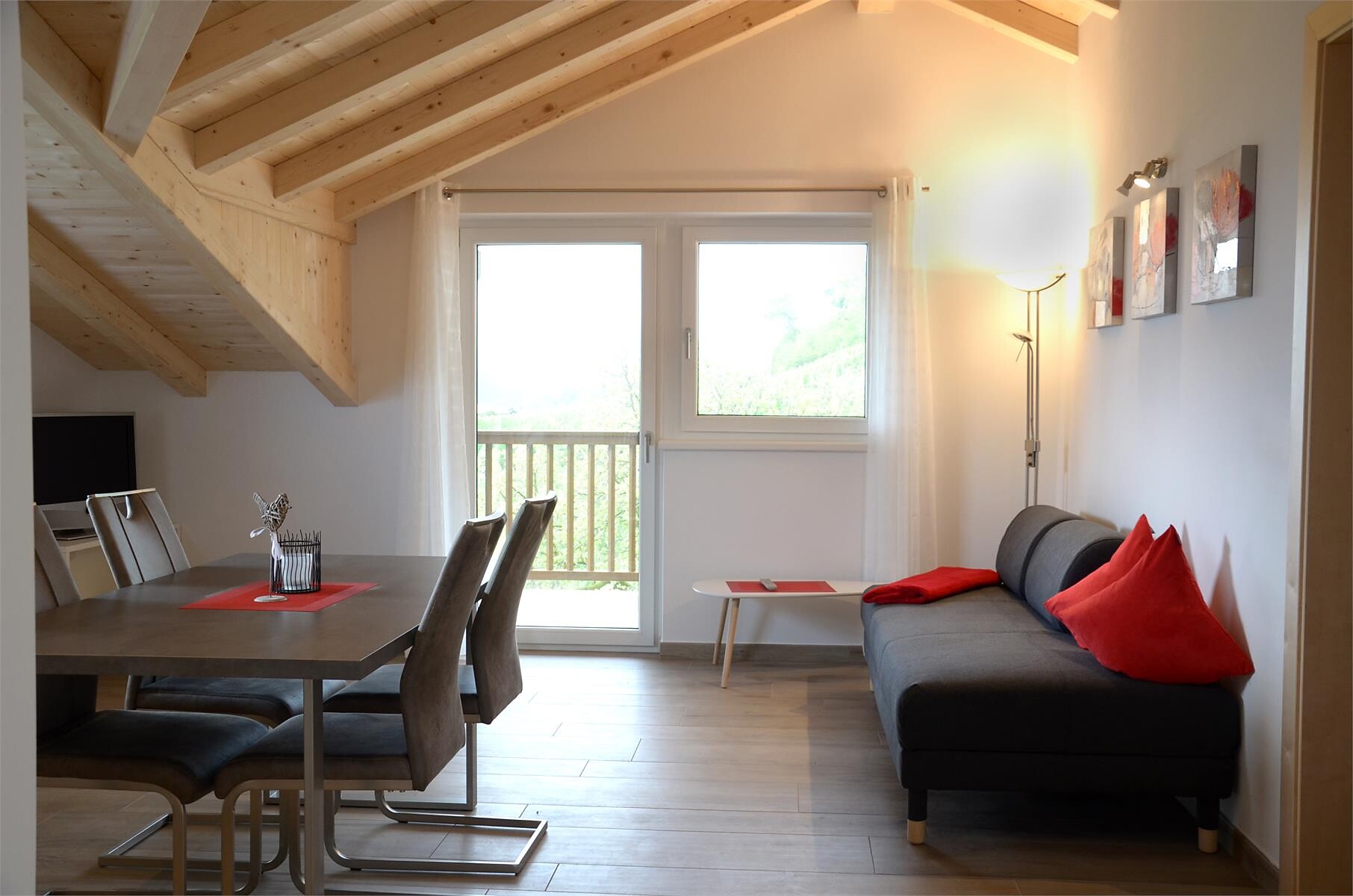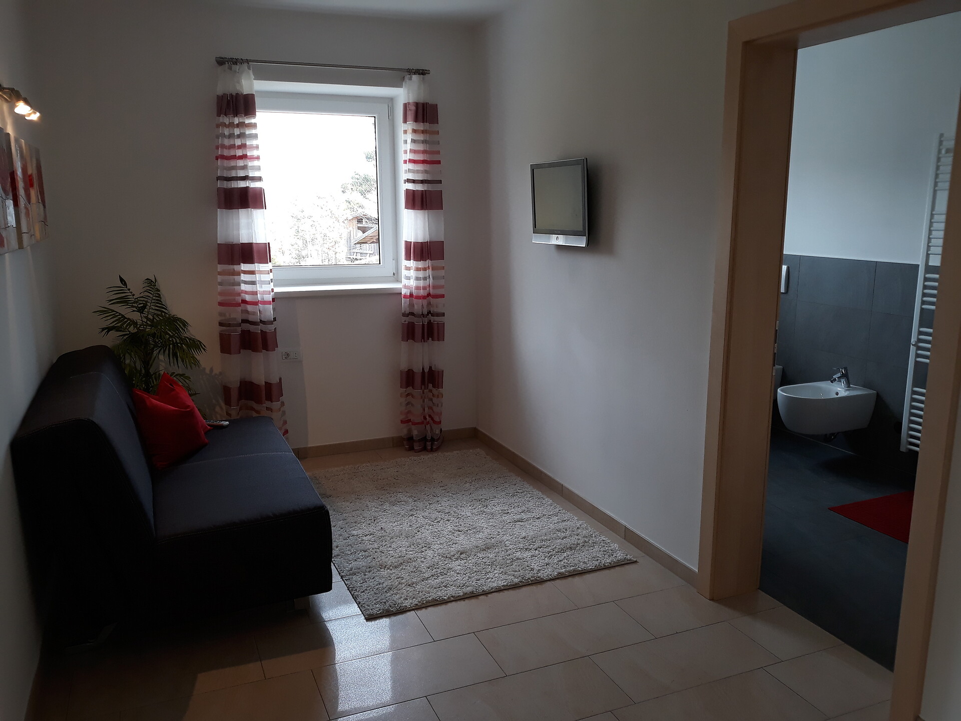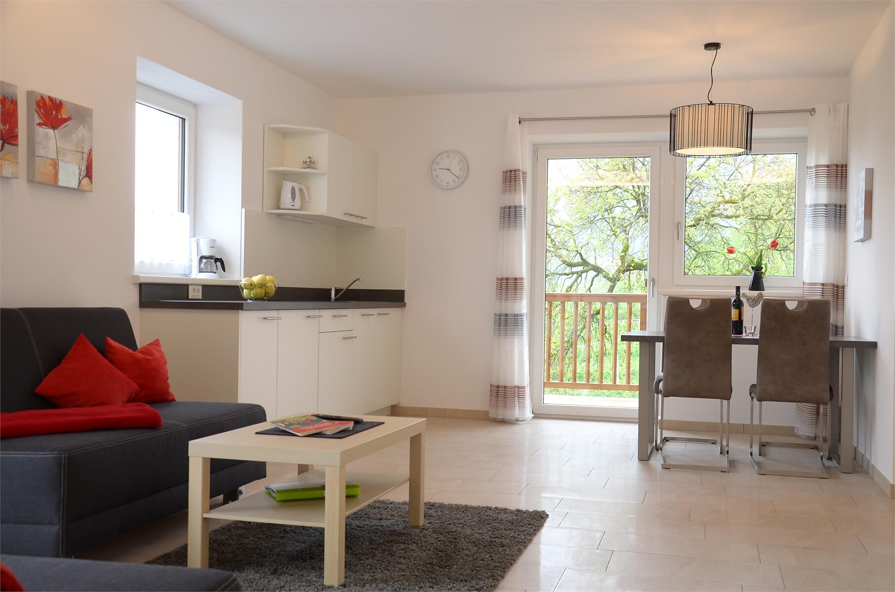 Das Apartment mit etwa 45 m² für 2- 4 Personen (plus Kinderbett) befindet sich im 1. Stock und besteht aus einem Schlafzimmer, großem Bad, geräumiger Wohnküche mit Schlafcouch und einem gemütlichen Balkon.