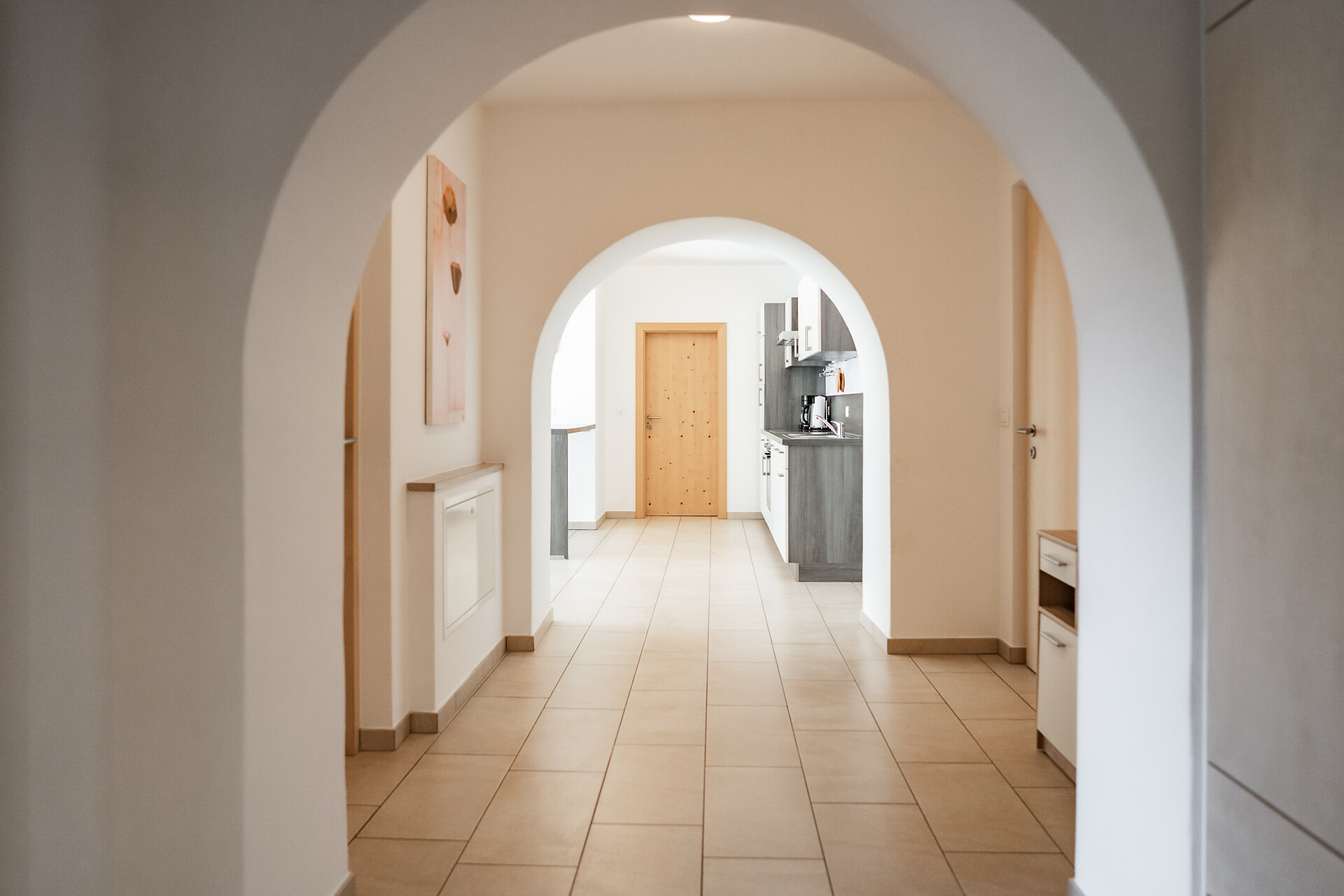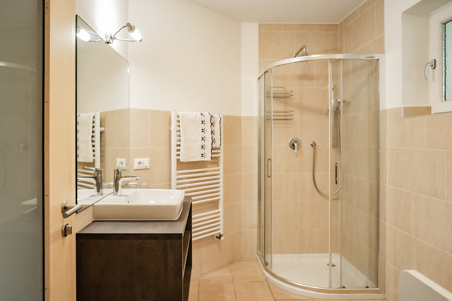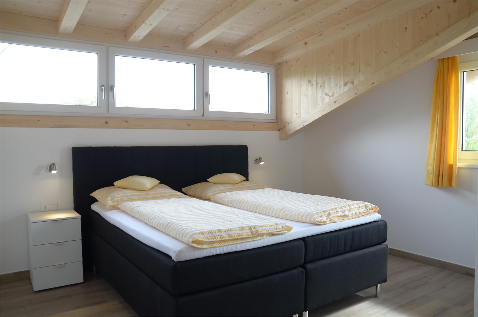 Das Apartment mit etwa 45 m² für 2- 4 Personen (plus Kinderbett) befindet sich im 1. Stock und besteht aus einem Schlafzimmer, großem Bad, geräumiger Wohnküche mit Schlafcouch und einem gemütlichen Balkon.