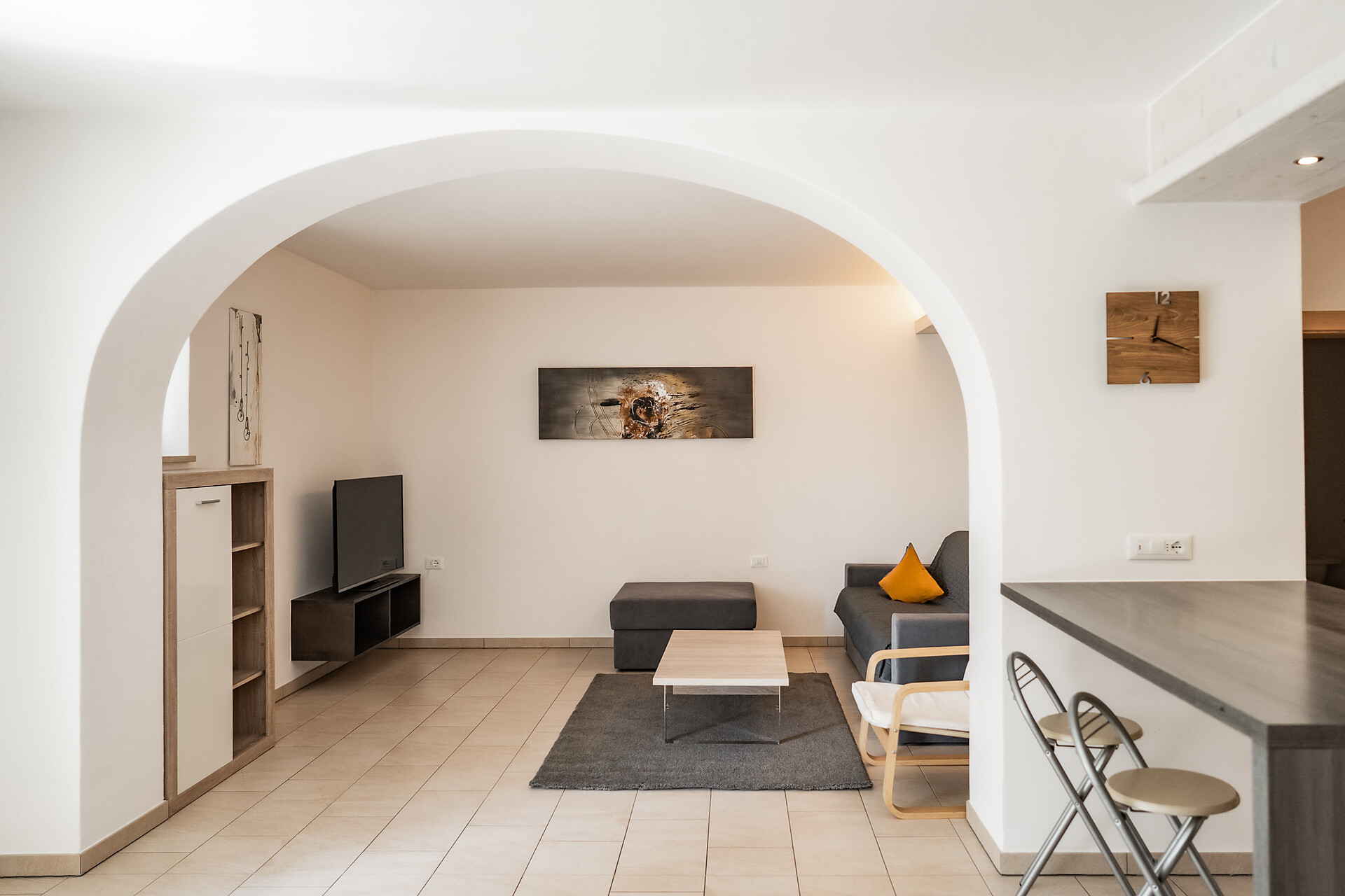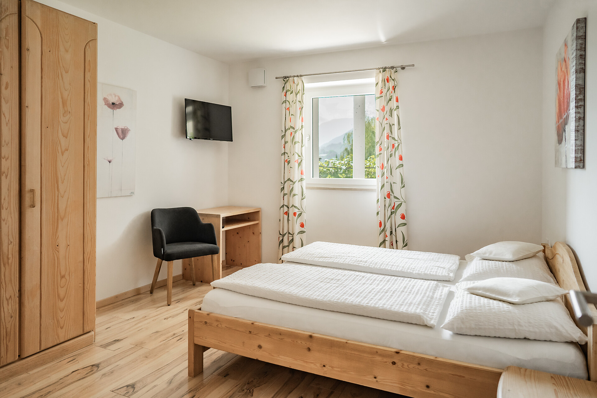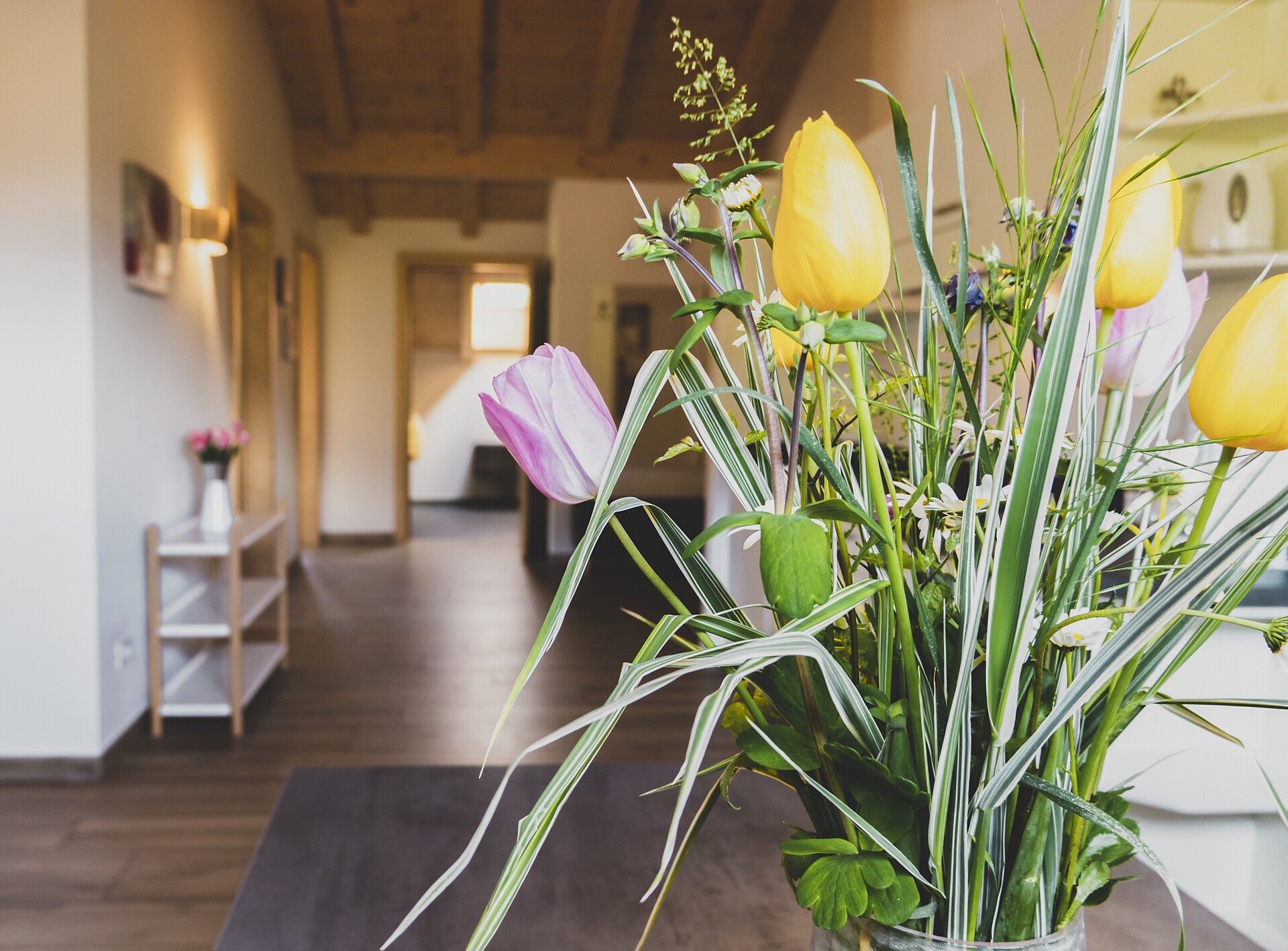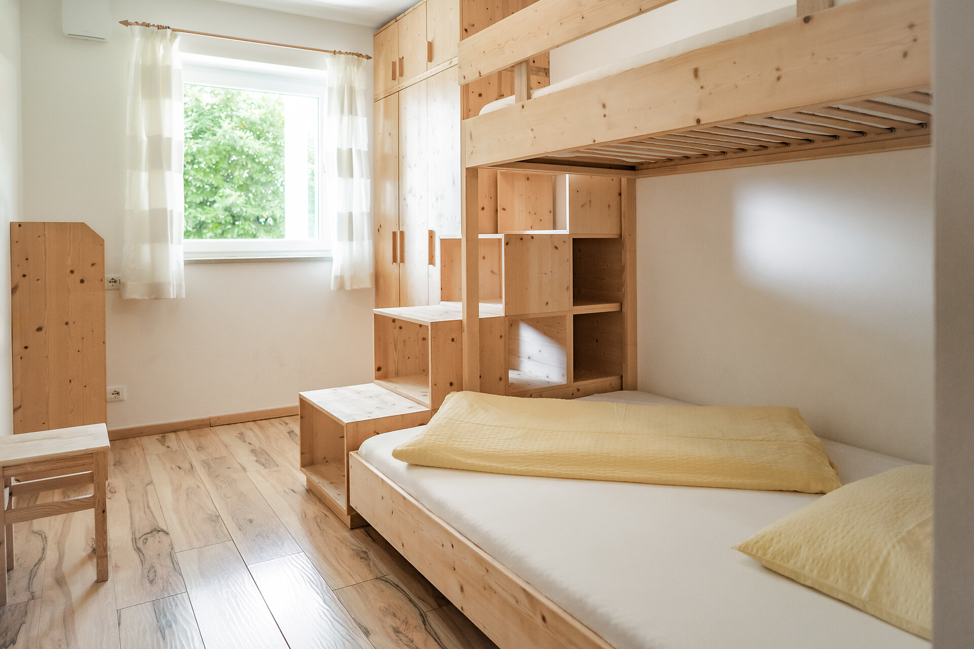 Das Apartment mit etwa 45 m² für 2- 4 Personen (plus Kinderbett) befindet sich im 1. Stock und besteht aus einem Schlafzimmer, großem Bad, geräumiger Wohnküche mit Schlafcouch und einem gemütlichen Balkon.