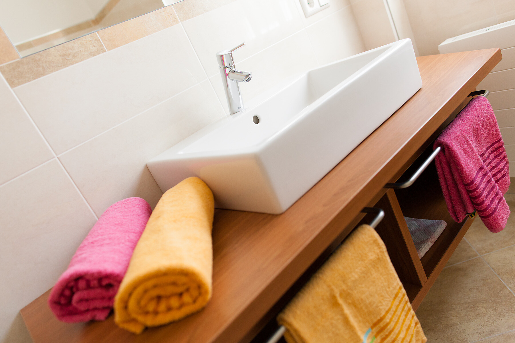 Three-room apartment on the top floor with two separate bedrooms and separate, flush showers, WC, hairdryer, living room with fully equipped kitchen, safe, TV, internet connection, 2 balconies with panoramic views. Suitable for 4 persons.