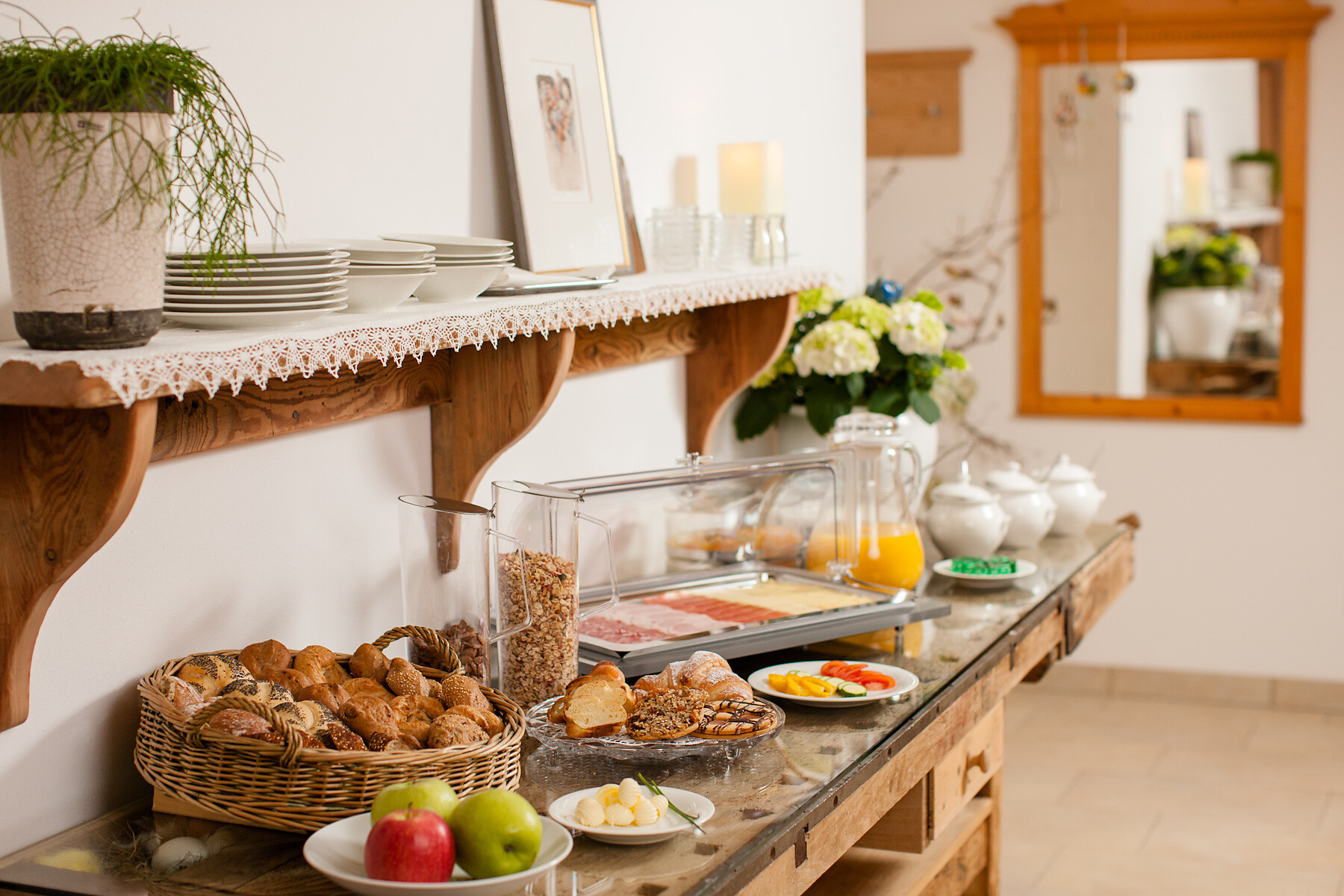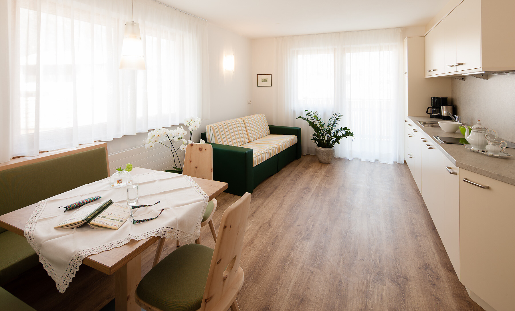 Double bed , Cot, Balcony, Garden , Separate living area, Bed linen provided, Safe, 2 or more bedrooms, Separate kitchen, Eat-in kitchen, Coffee machine, Dishwasher, Electric cooker, Microwave, Cutlery provided, Hob, Water boiler, Shower/Bath tub, 2 or more bathrooms, Hair dryer, Towels, TV, Satellite/Cable, WLAN, Cleaning upon request, Main building, Panoramic view
