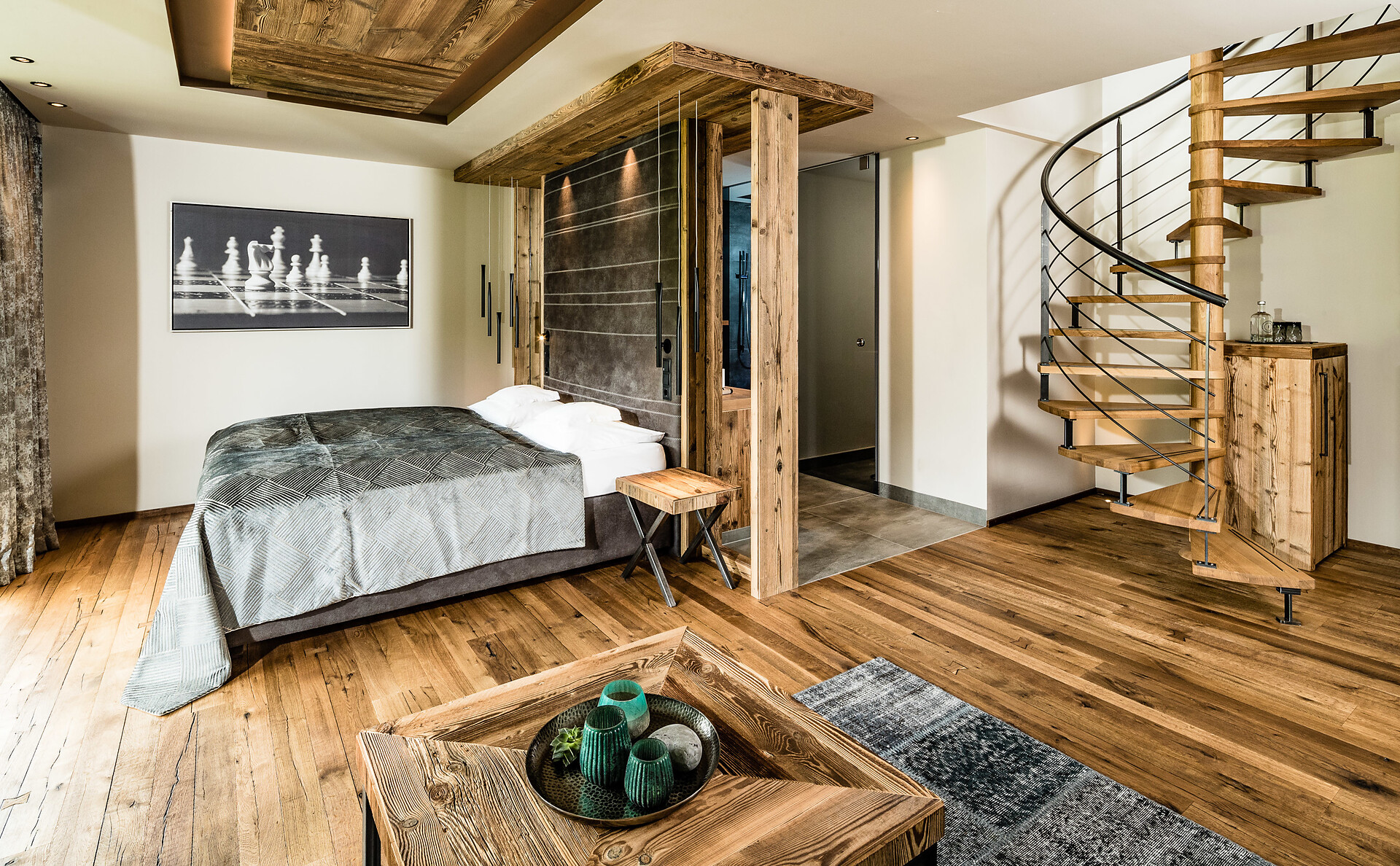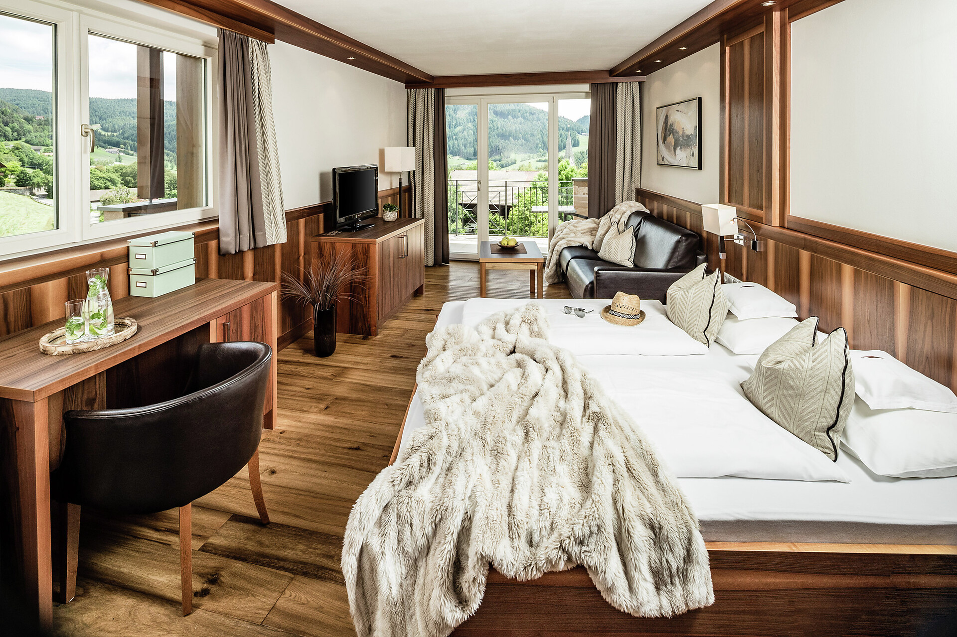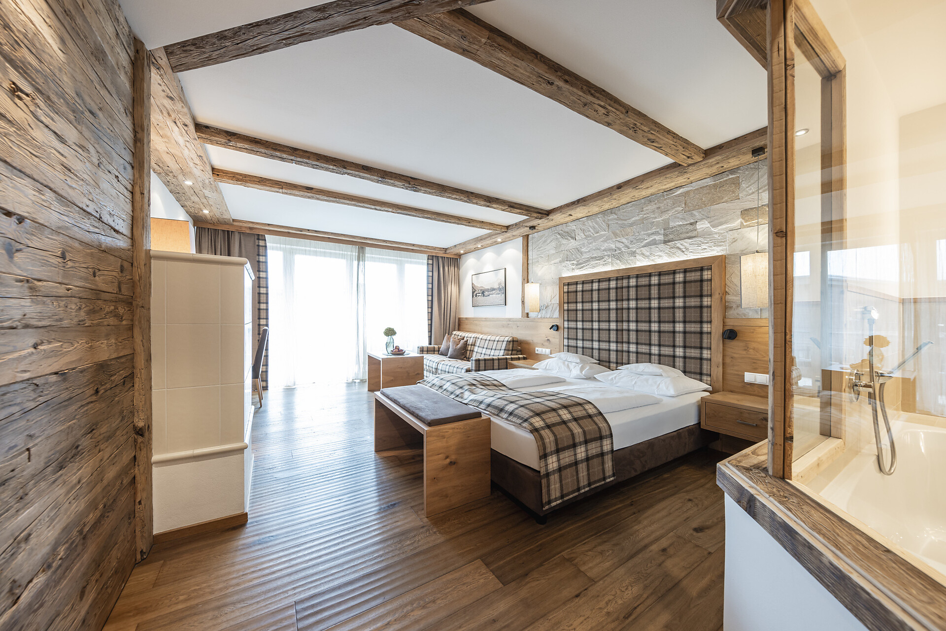Comfort Room (approx. 35 m²) with local pinewood for a good night’s sleep.