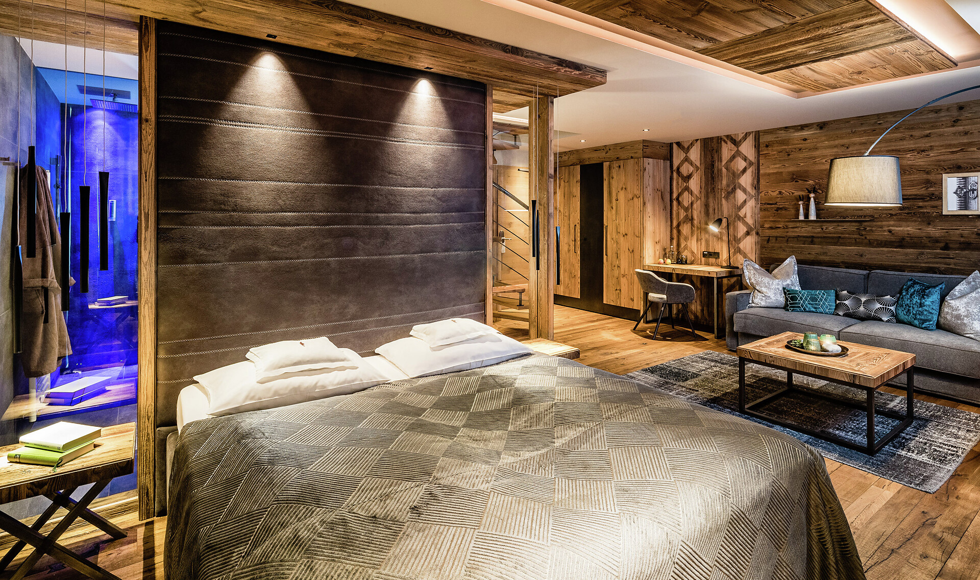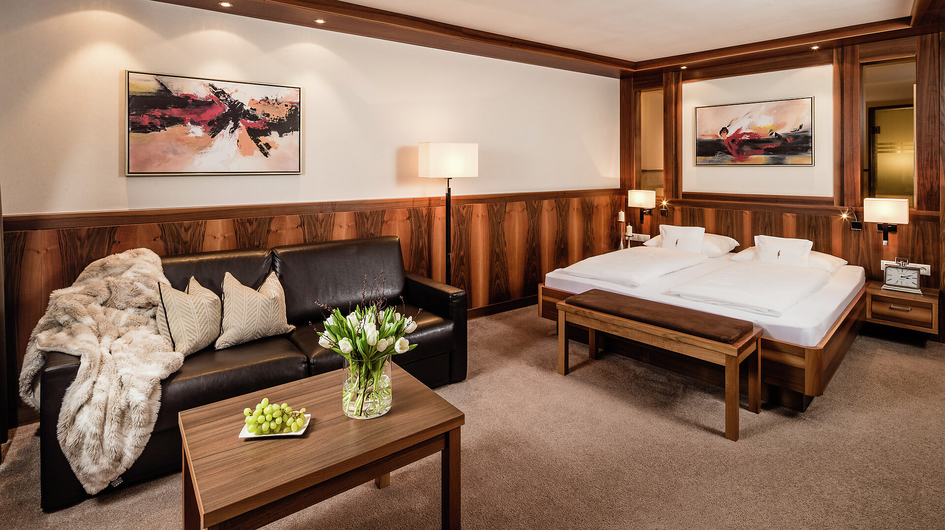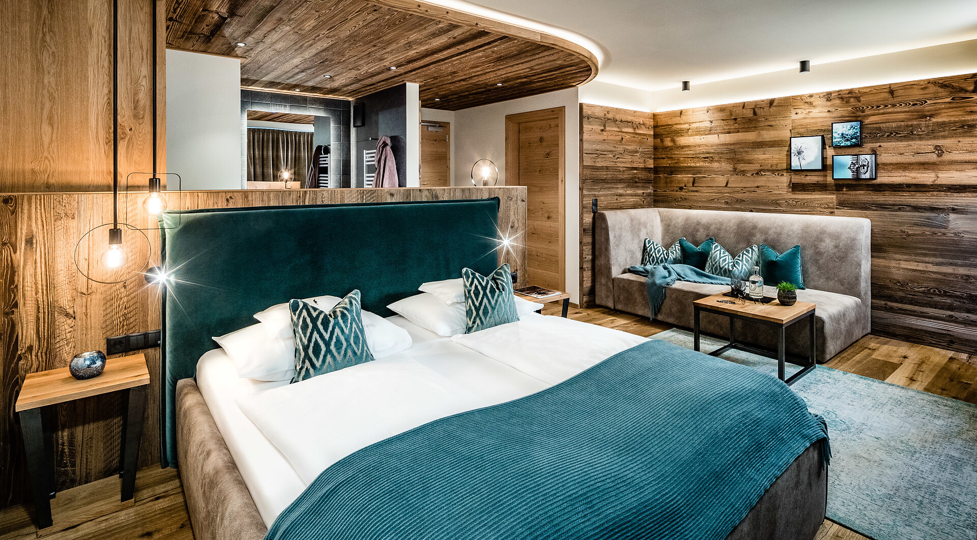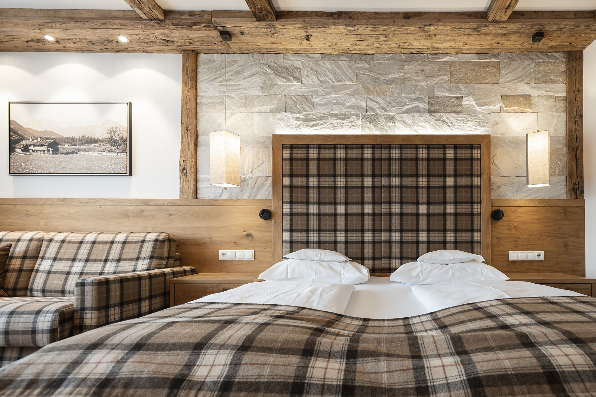 Comfort Room (approx. 35 m²) with local pinewood for a good night’s sleep.