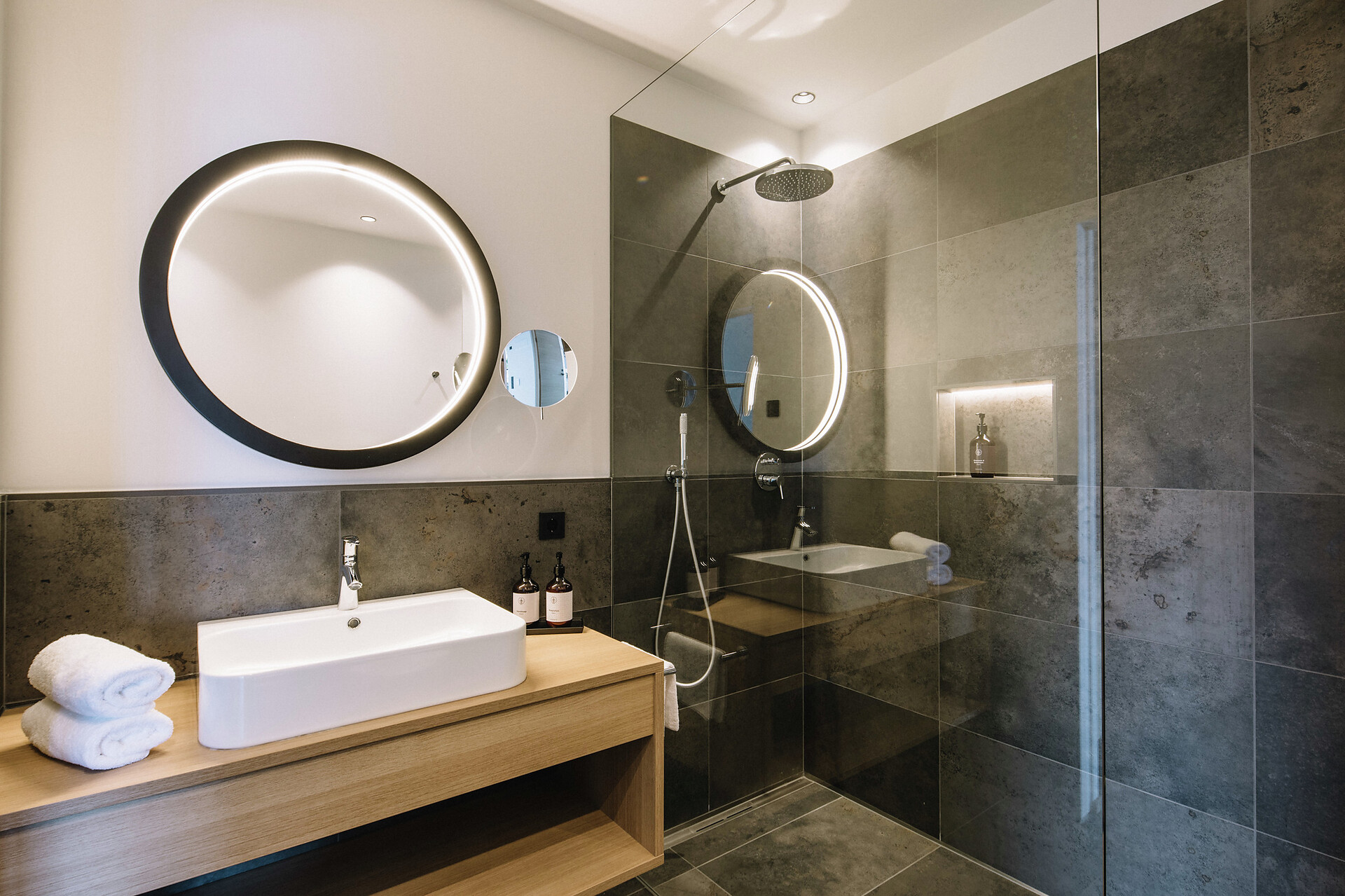 Bedroom with double bed and wooden floor | Living room with pull-out sofa and kichenette with ceramic hob, fridge with freezer, dishwasher, coffee machine and dining and cooking utensils | Bathroom with shower, toilet, hairdryer, high-quality care products and wellness basket with a cozy bathrobe and slippers | sunny balcony with dining area and deck chairs | safe | TV | free WIFI