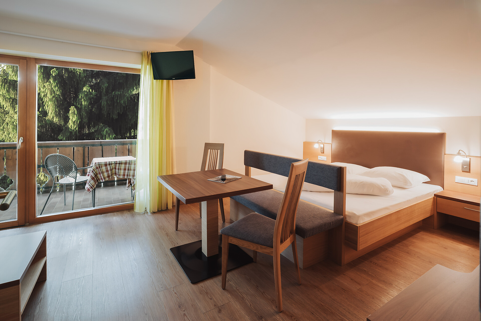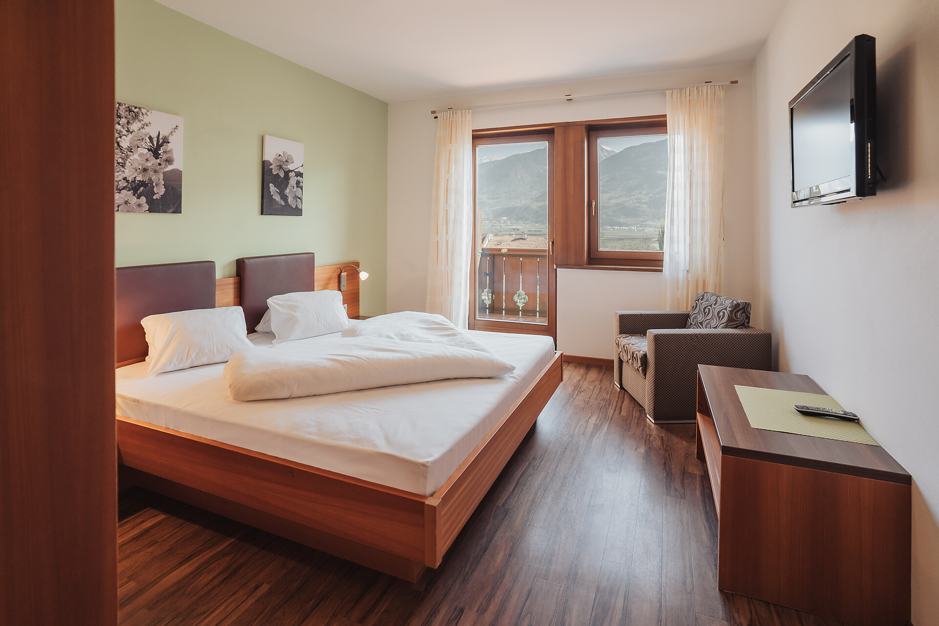 Double room, Double bed , Sofa bed, Balcony, Safe, Shower / Bath tub, Separate WC, TV, Satellite/Cable, WLAN, Main building, Panoramic view, South view