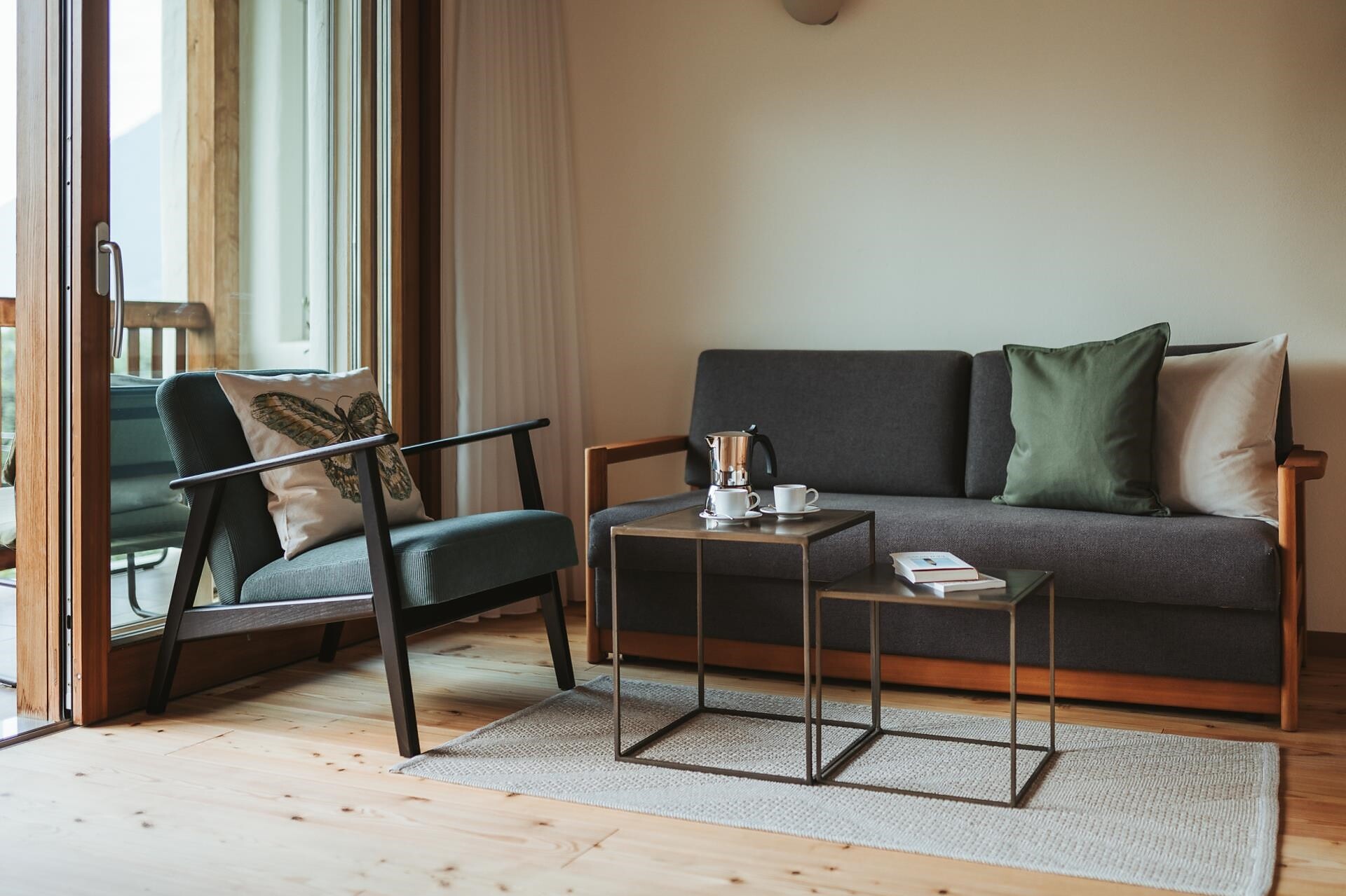 Single bed, Double bed , Cot, Double sofa bed, Balcony, Terrace, Garden , Separate living area, Bed linen provided, Safe, Non-smoking apartment, 2 or more bedrooms, Eat-in kitchen, Coffee machine, Dishwasher, Electric cooker, Cutlery provided, Water boiler, Shower/Bath tub, Bidet, Hair dryer, Towels, TV, Satellite/Cable, WLAN, Internet access, Final cleaning included, Main building, Panoramic view, South view