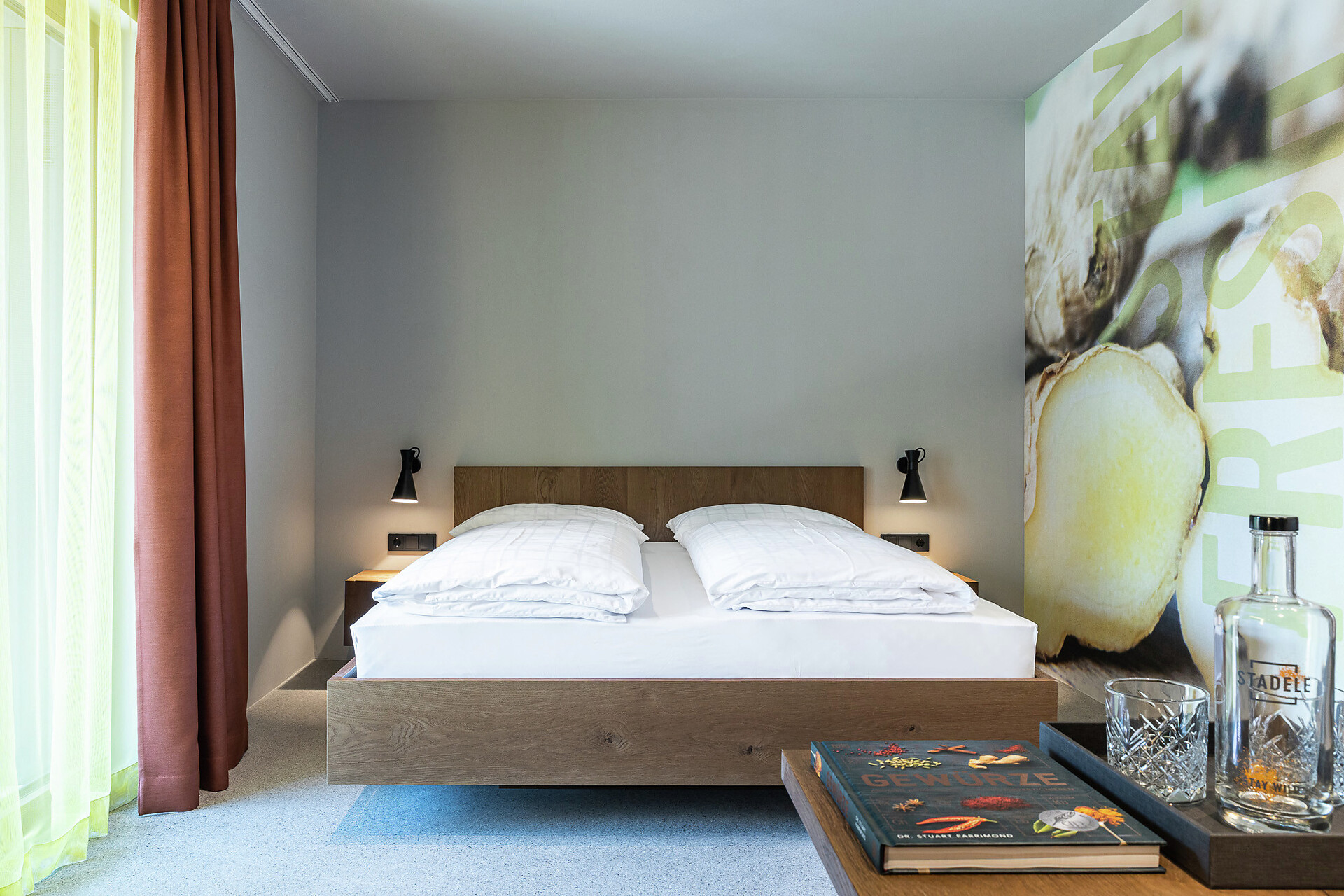 Each of the 8 rooms is dedicated to one of Chef Matthias' favourite spices. He almost always spices his delicious dishes with it. Therefore we have 8 different rooms at the Stadele, each of which presents the spice theme in a fantastically individual way. There should be something to suit your taste too, right?!