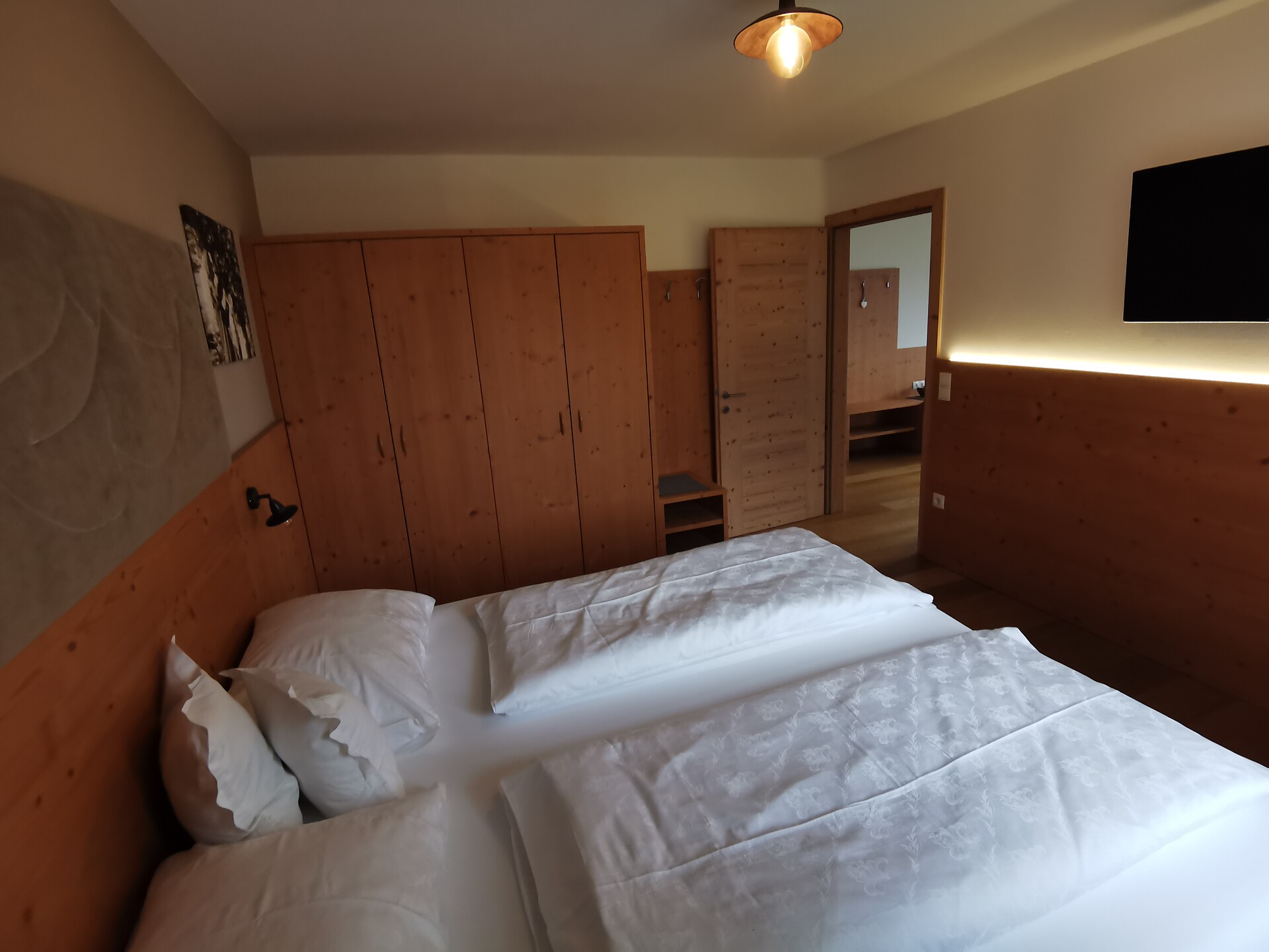 Double bed , Balcony, Bed linen provided, Safe, Non-smoking apartment, Eat-in kitchen, Coffee machine, Dishwasher, Electric cooker, Microwave, Cutlery provided, Water boiler, Shower/Bath tub, Bidet, Hair dryer, TV, Satellite/Cable, WLAN, Cleaning upon request, Final cleaning included, Panoramic view