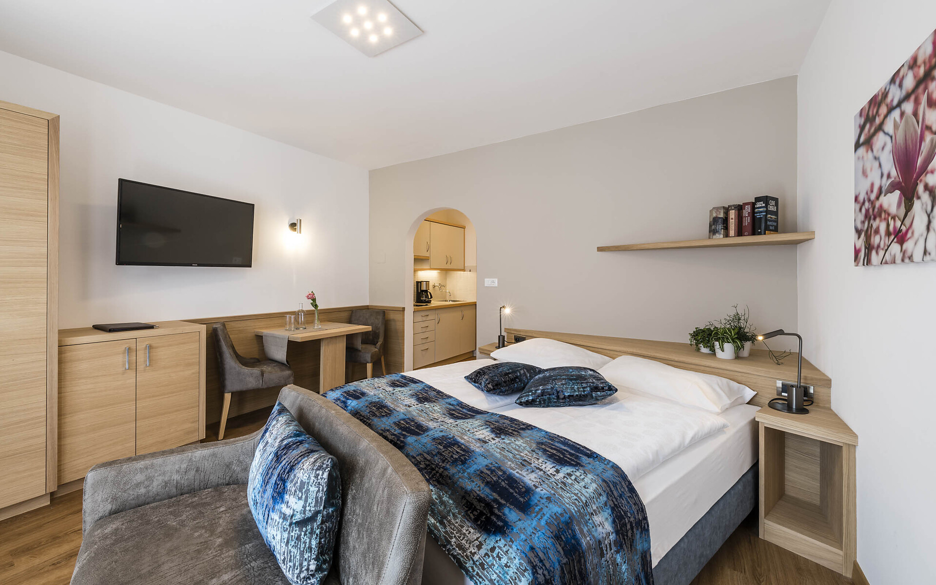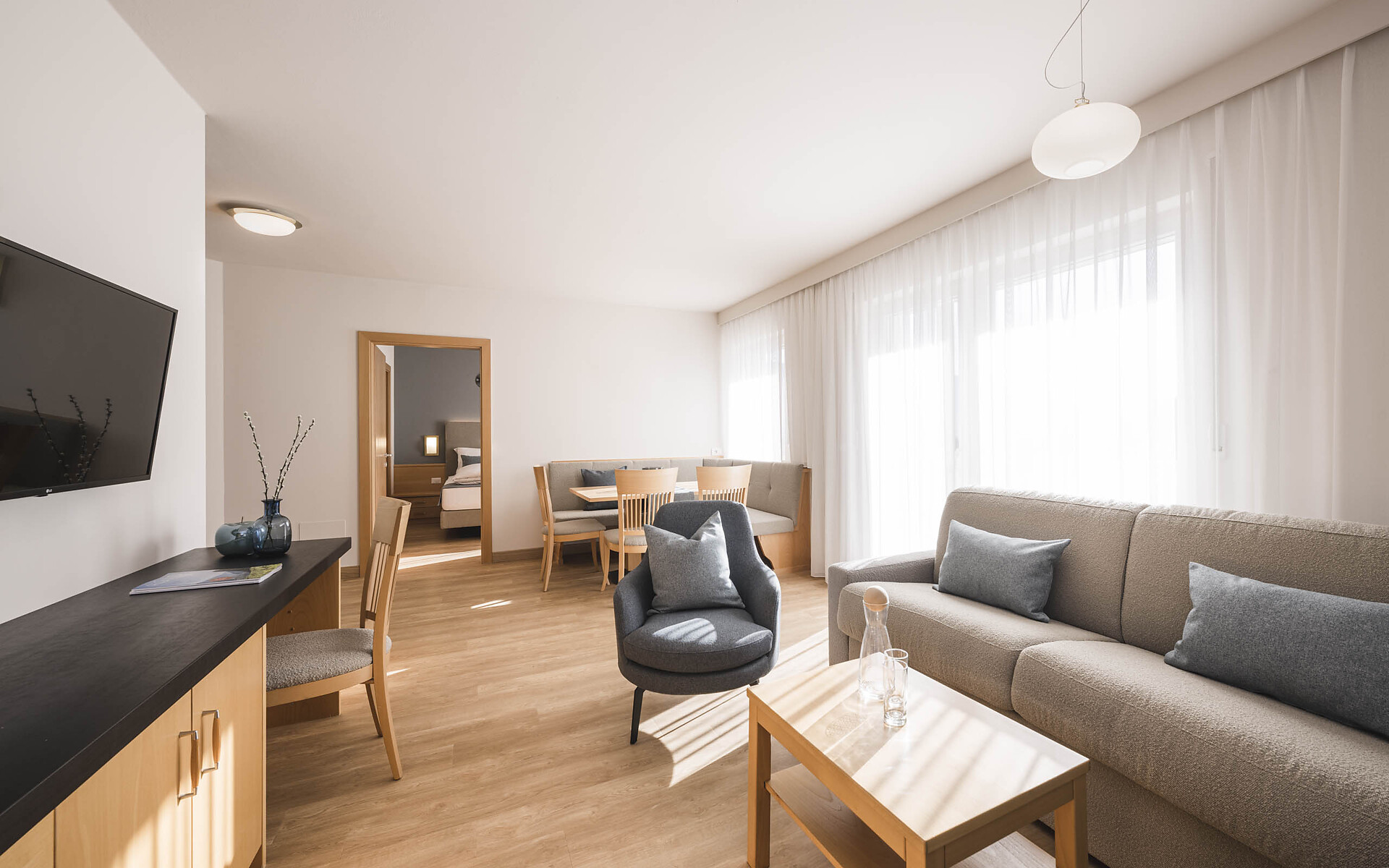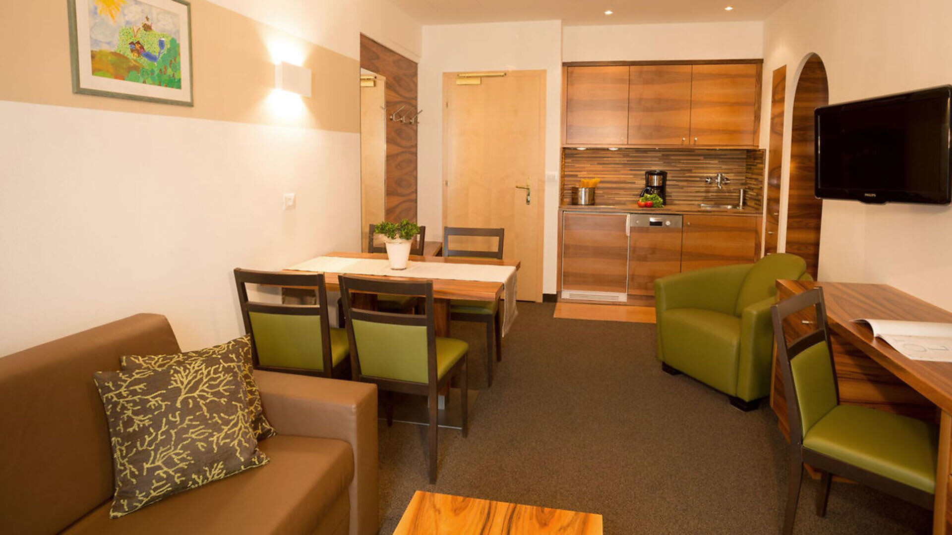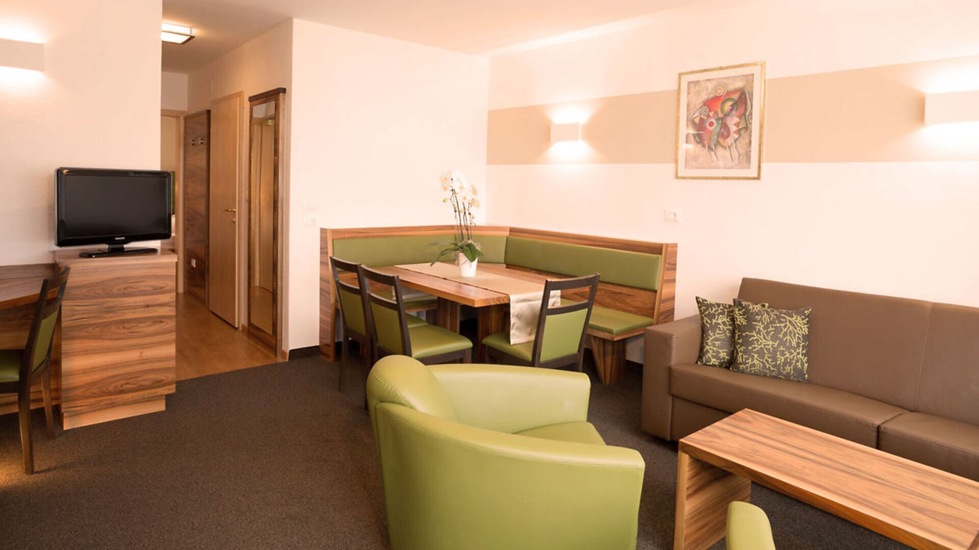 Our family-run hotel is equipped with everything to make your holiday pleasant and enjoyable: spacious, comfortable apartements, indoor and outdoor pool with children's area, sunbathing area, steam bath, solarium, fitness room, a hot whirlpool and much more. We would like to invite you to forget your everyday stress in our cosy and relaxing atmosphere and to find rest and total enjoyment.
