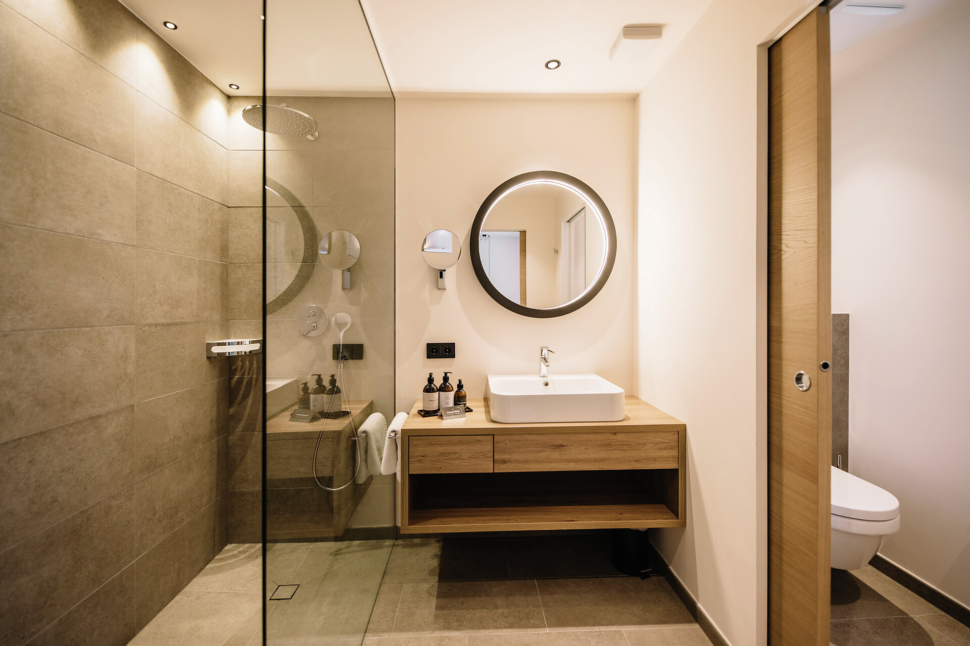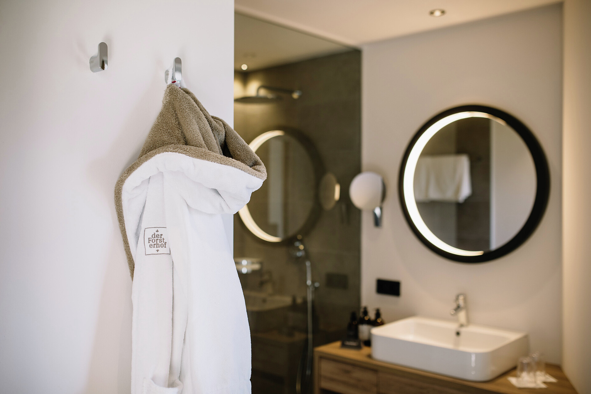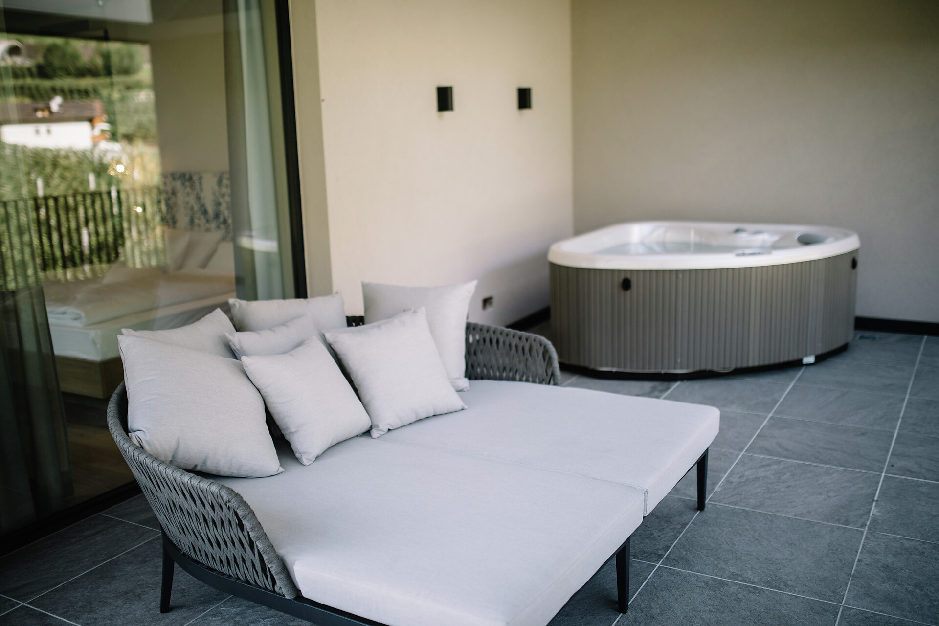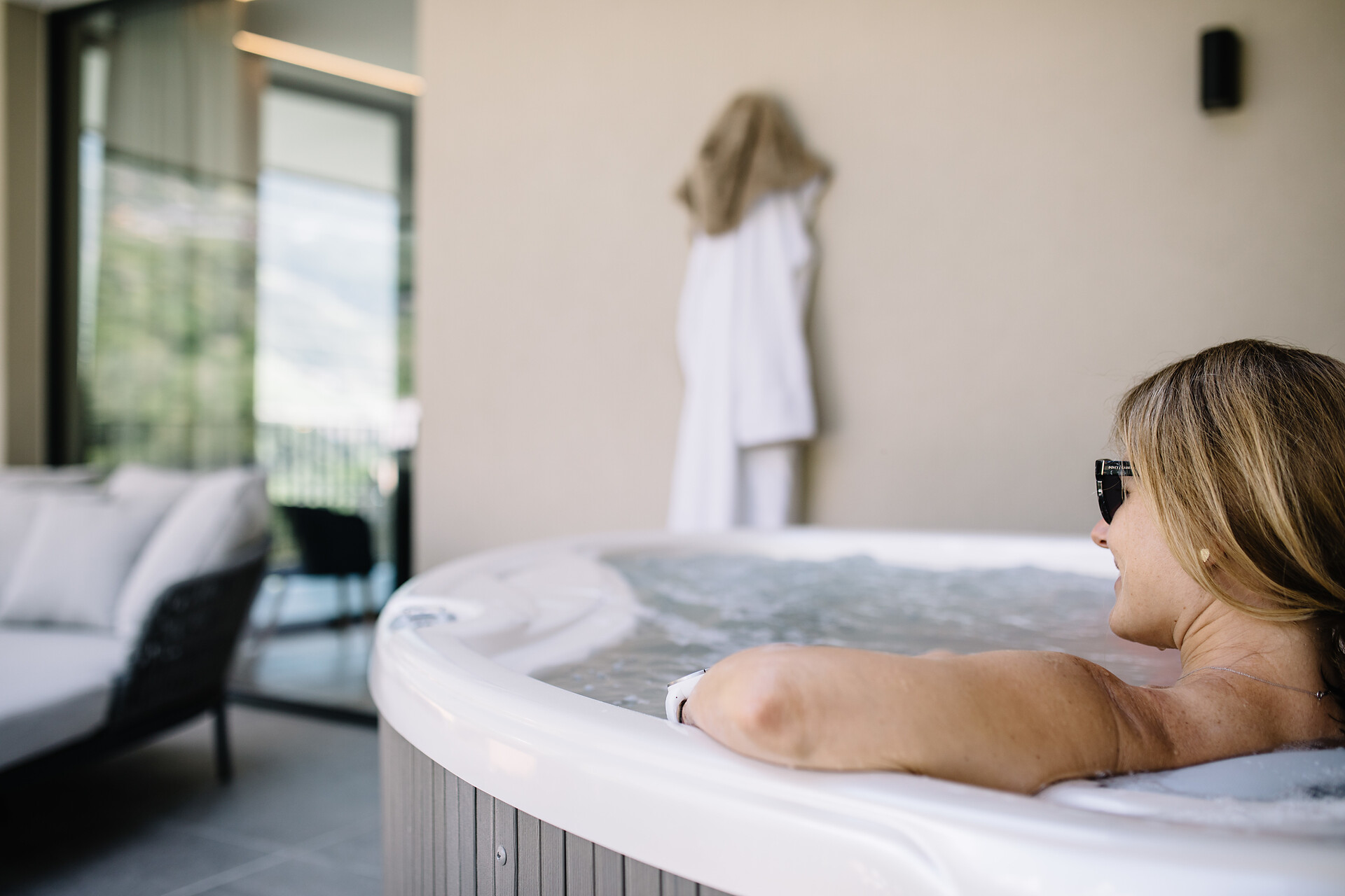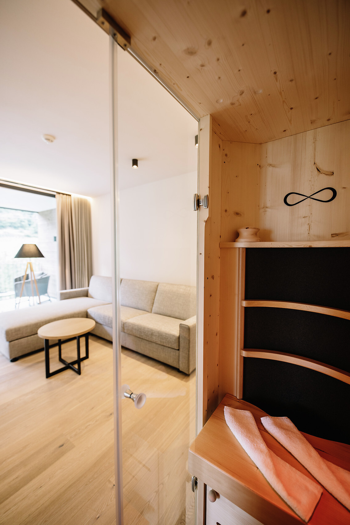 50 m² of stylish suite feeling that extends even further to the terrace of 25 m². In the private Hydrosoft Sauna you can enjoy deep relaxation. A panoramic window offers you an amazing view over the spa town of Merano.