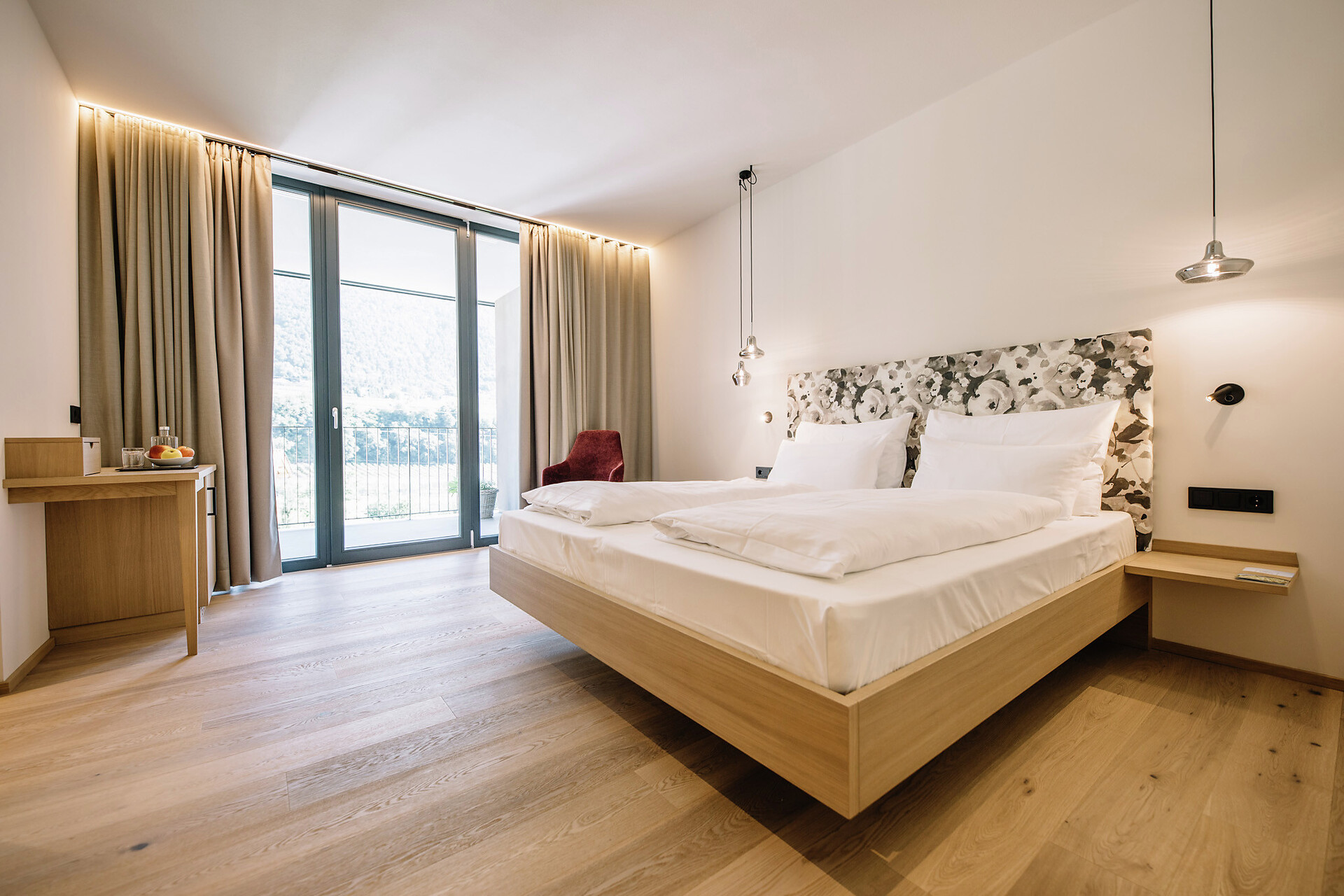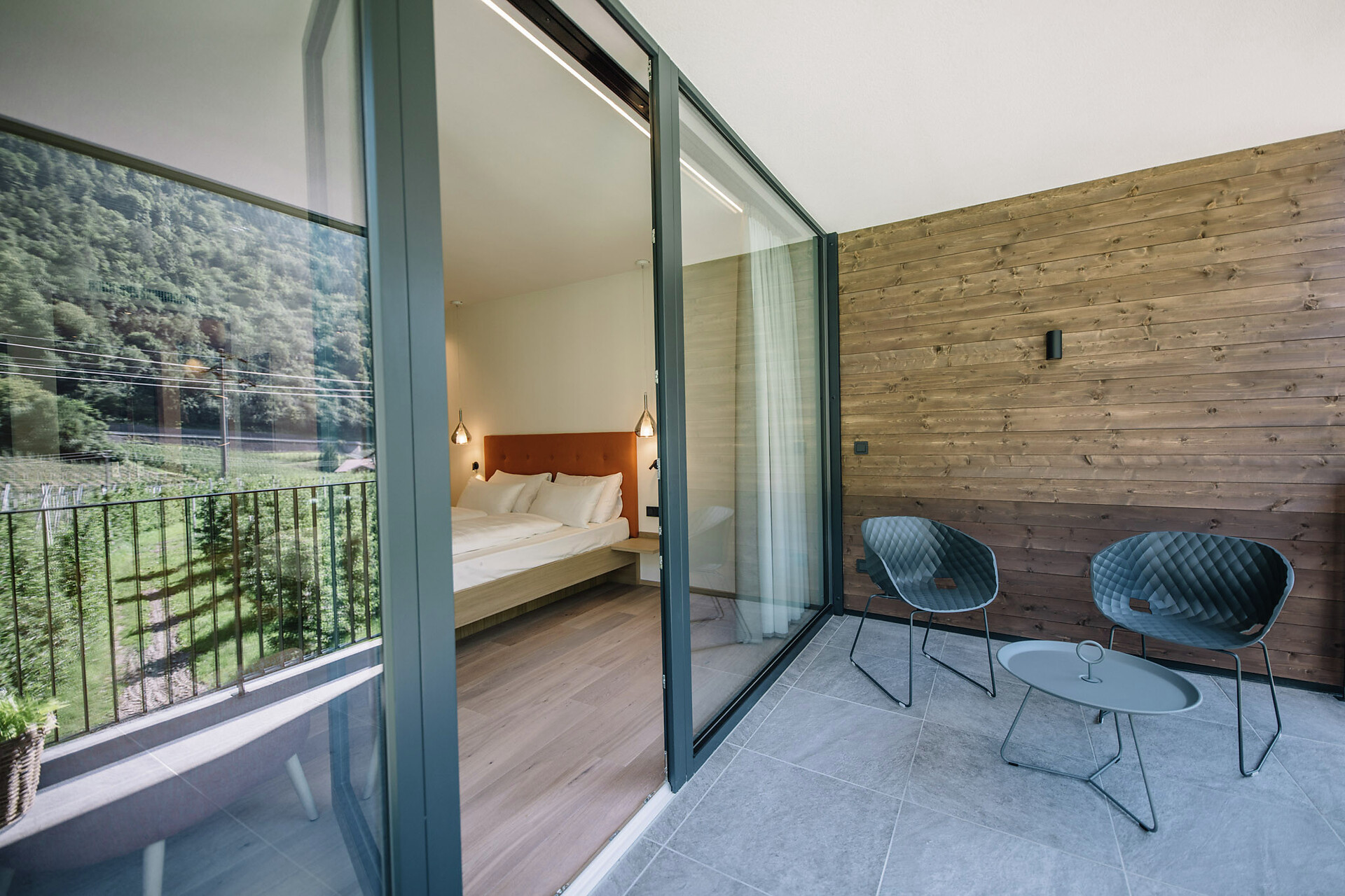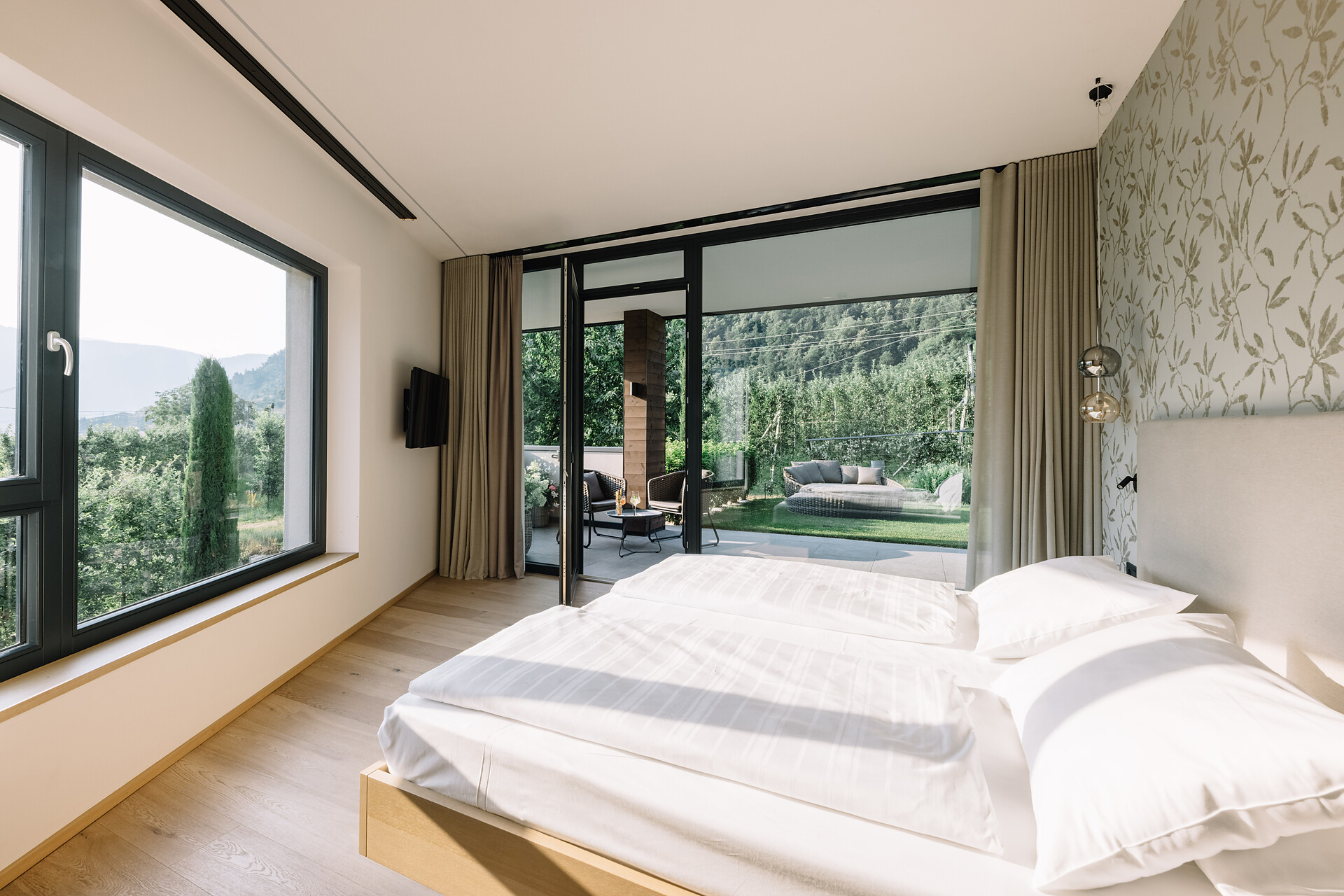Newly opened in 2019, the South Tyrolean accommodation bears the unmistakable signature of mother-daughter duo Christine and Magdalena Erlacher - thanks to the timelessly stylish fusion of tradition and zeitgeist reflected in the architecture and interior, and the picturesque city/countryside location, the stay becomes a simultaneously tranquil and invigorating experience. The boundary between outside and inside is fluid, the terraces and the garden with pool seem to be a natural complement to the spaces within the hotel. During construction, the hotel worked together with businesses from the region in order to do justice to the idea of sustainability. Environmental consciousness also plays an important role in the culinary arts: regional, seasonal and in-house delicacies are served during long breakfasts - those who want to take a piece of holiday happiness home with them can buy jams, apple juice and other specialities from the hotel's own farm on site.