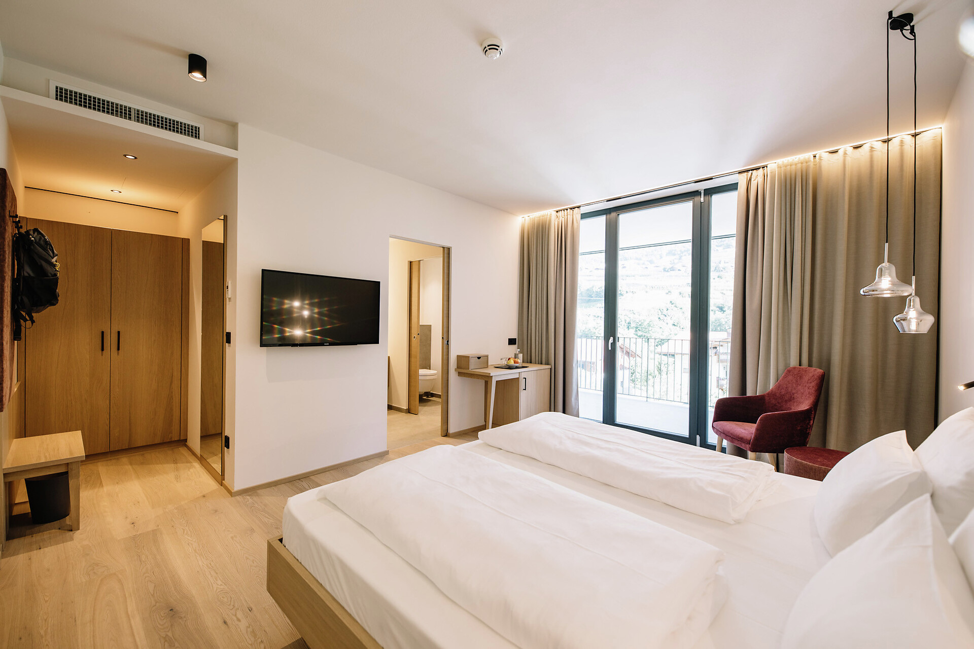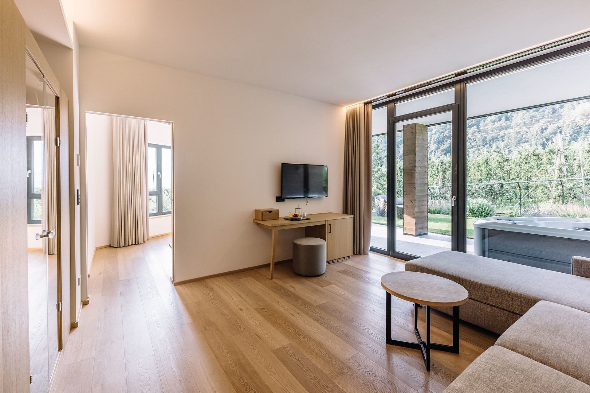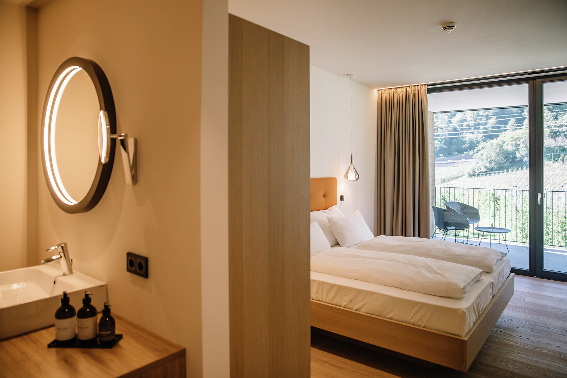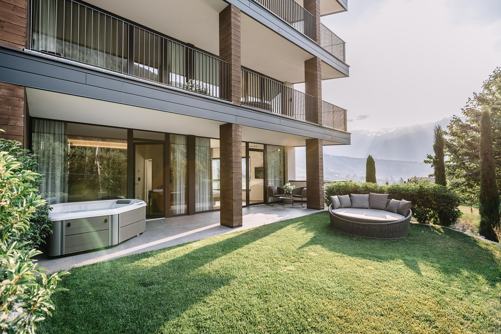 Newly opened in 2019, the South Tyrolean accommodation bears the unmistakable signature of mother-daughter duo Christine and Magdalena Erlacher - thanks to the timelessly stylish fusion of tradition and zeitgeist reflected in the architecture and interior, and the picturesque city/countryside location, the stay becomes a simultaneously tranquil and invigorating experience. The boundary between outside and inside is fluid, the terraces and the garden with pool seem to be a natural complement to the spaces within the hotel. During construction, the hotel worked together with businesses from the region in order to do justice to the idea of sustainability. Environmental consciousness also plays an important role in the culinary arts: regional, seasonal and in-house delicacies are served during long breakfasts - those who want to take a piece of holiday happiness home with them can buy jams, apple juice and other specialities from the hotel's own farm on site.