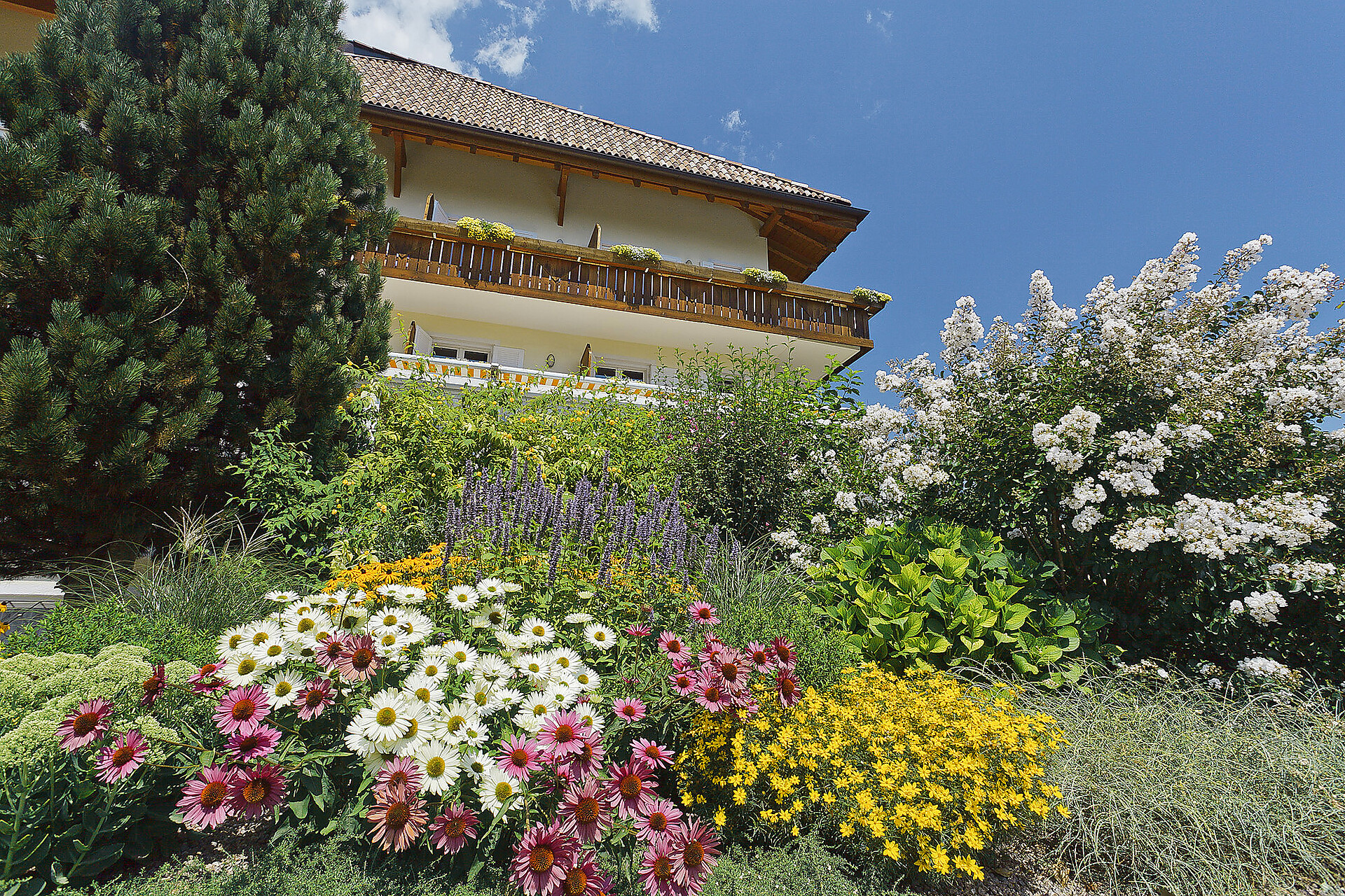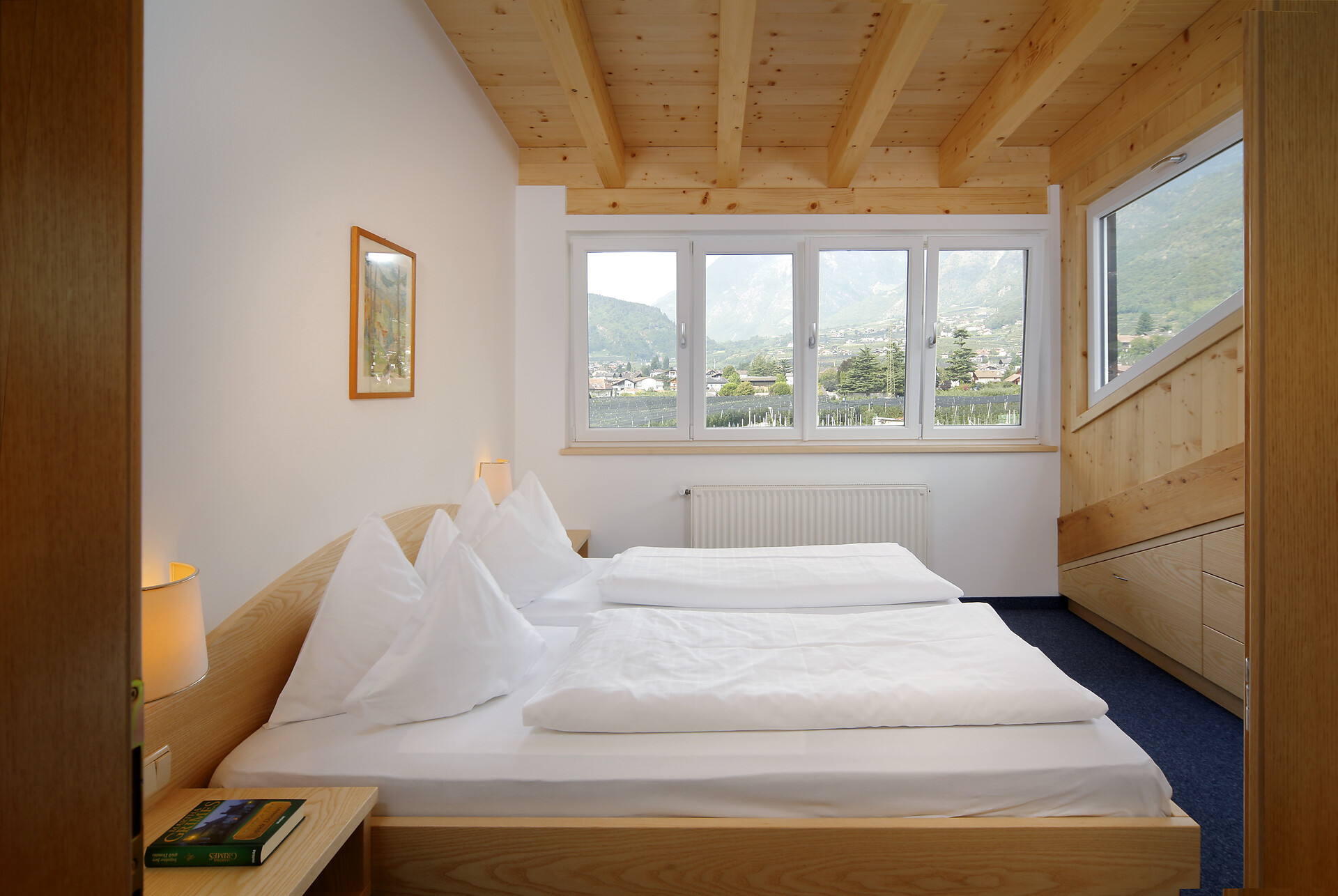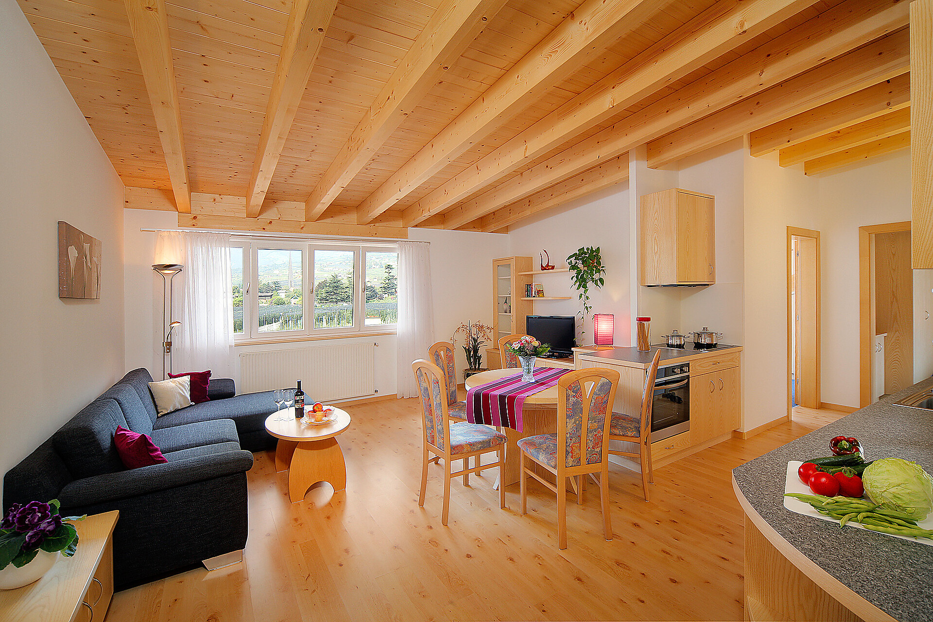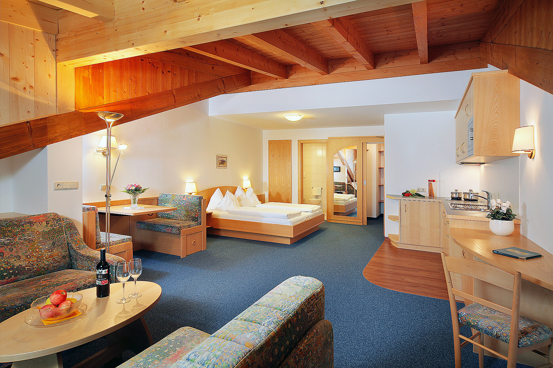 Wonderful luxury suite "Flieder", approx. 65 m², with two bedrooms, a spacious and beautifully furnished living area with fully equipped kitchen (dishwasher, microwave, oven), bathroom, and balcony with magnificent views. Perfect for four people.