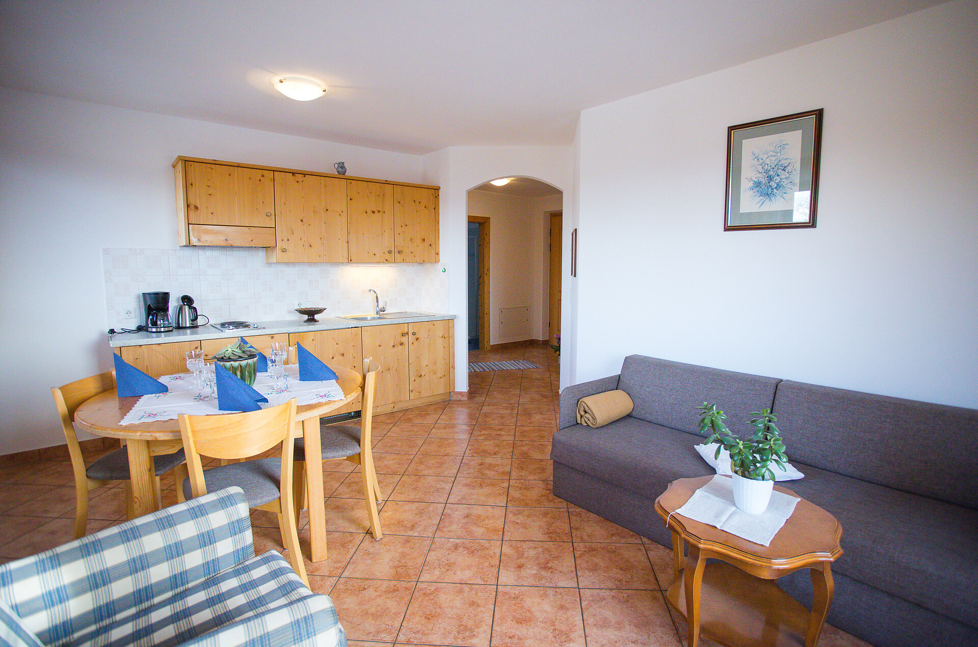 Double bed , Double sofa bed, Balcony, Air conditioning, Anti-allergic room, Bed linen provided, Non-smoking apartment, 2 or more bedrooms, Eat-in kitchen, Coffee machine, Electric cooker, Cutlery provided, Hob, Water boiler, Shower/Bath tub, 2 or more bathrooms, Towels, TV, Satellite/Cable, WLAN, Final cleaning included, Main building, Panoramic view, South view