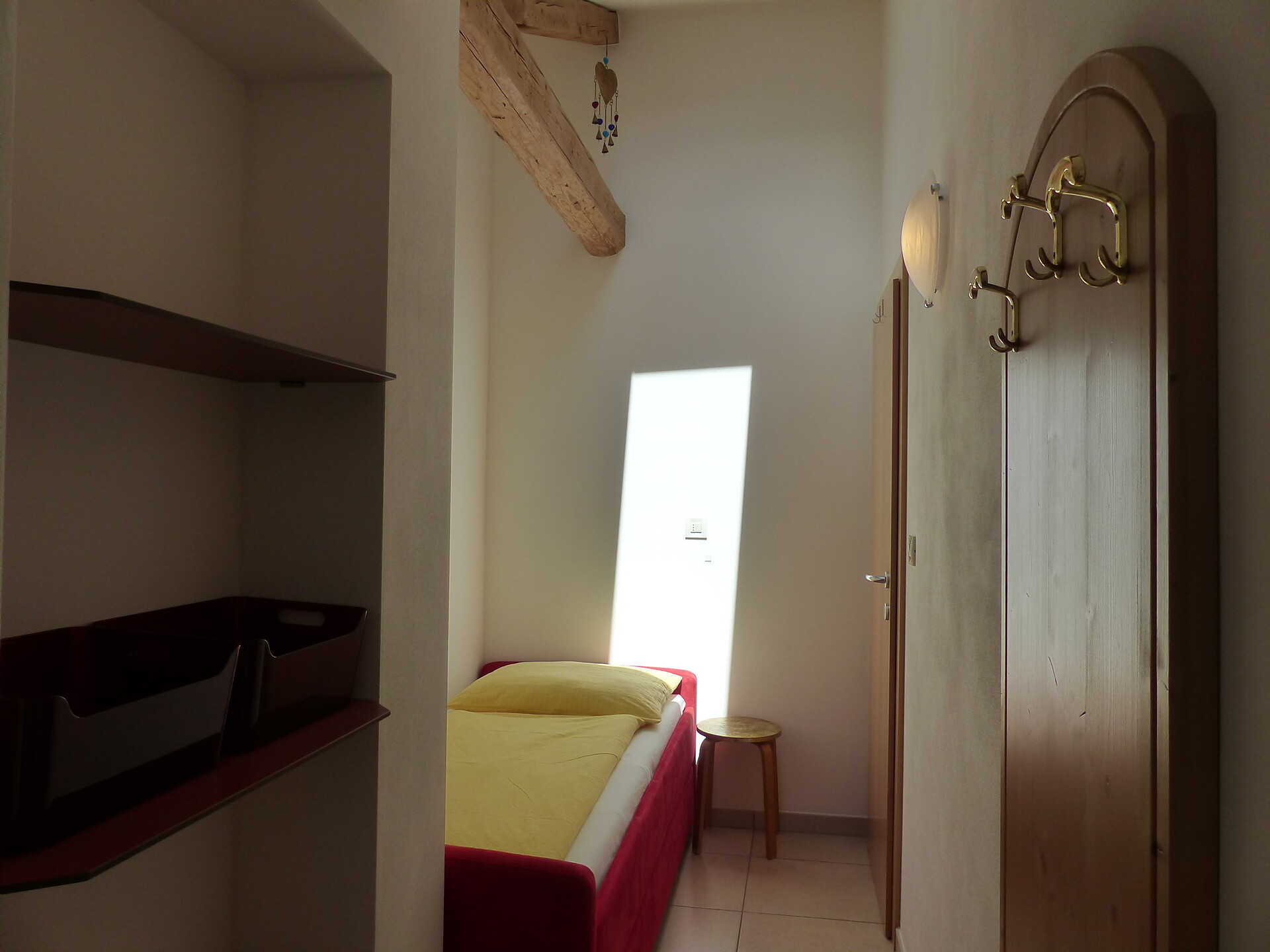 In the annex, bright and friendly furnished, with an eat-in kitchen with a sleeping galerie for two persons , double-bed room, shower/WC with window, TV, safe and south balcony. It is possible to combine this holiday home with our miniapartment to a large apartment with 2 bed rooms, 2 bathrooms and 2 balconies.