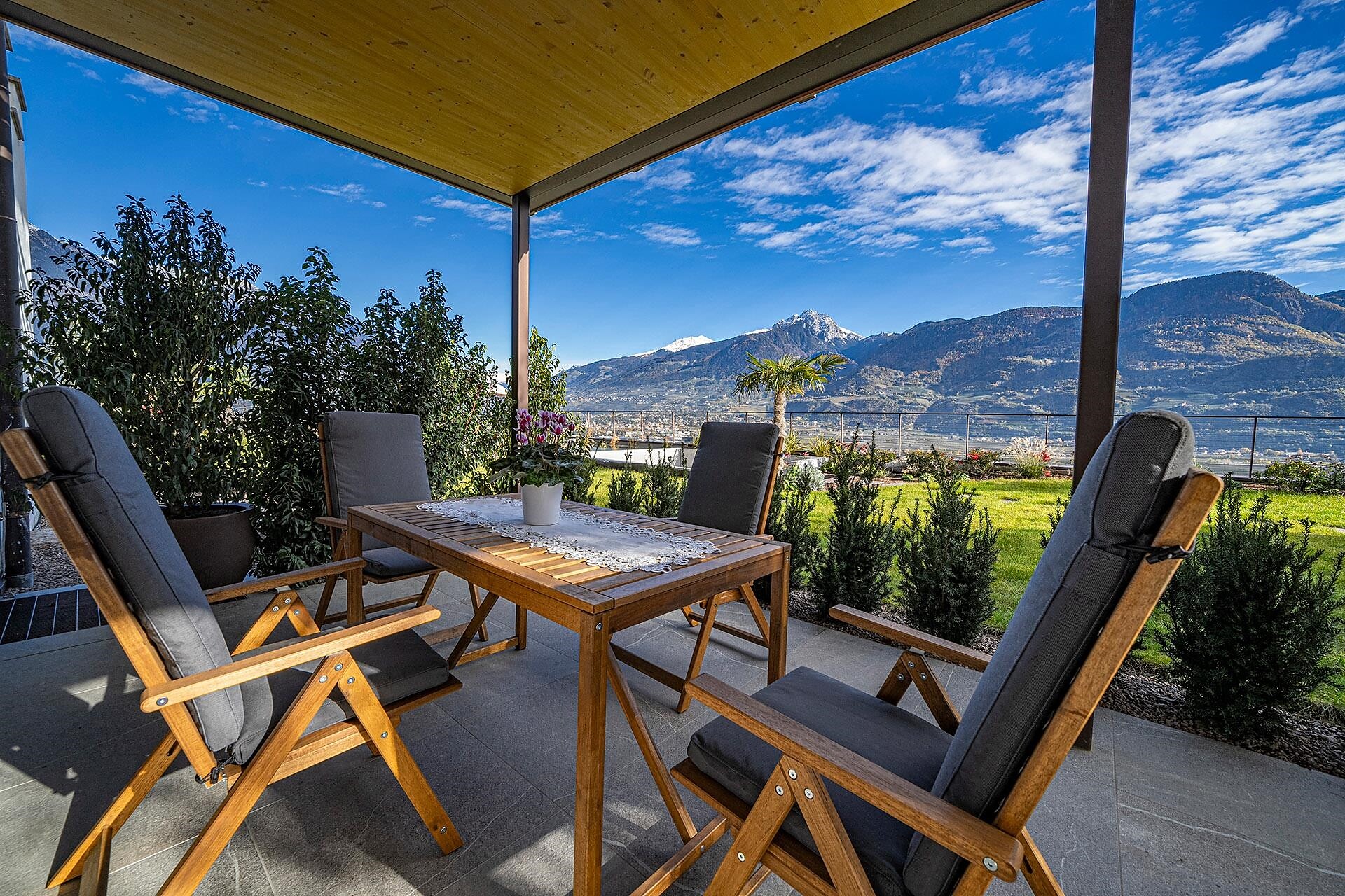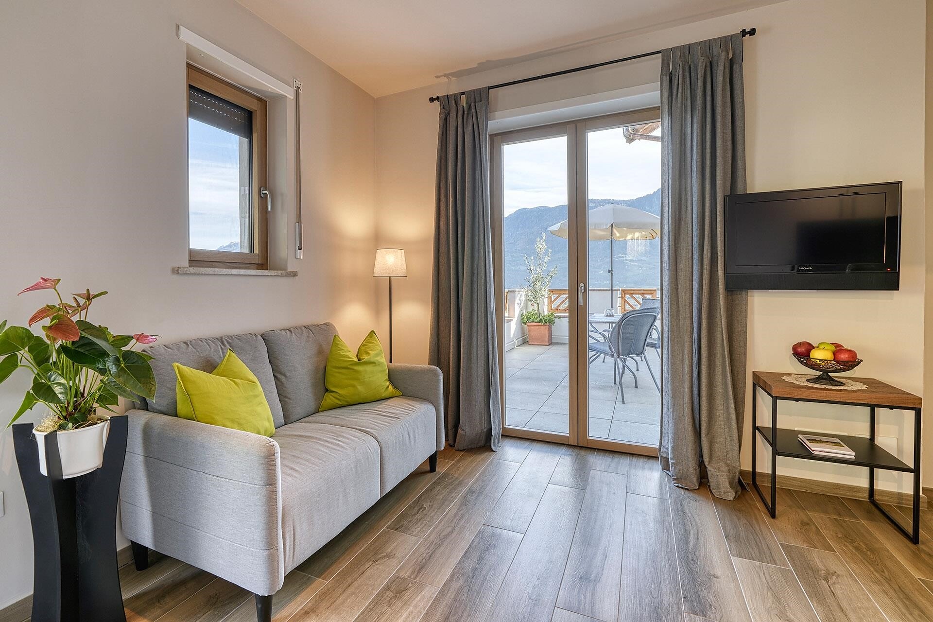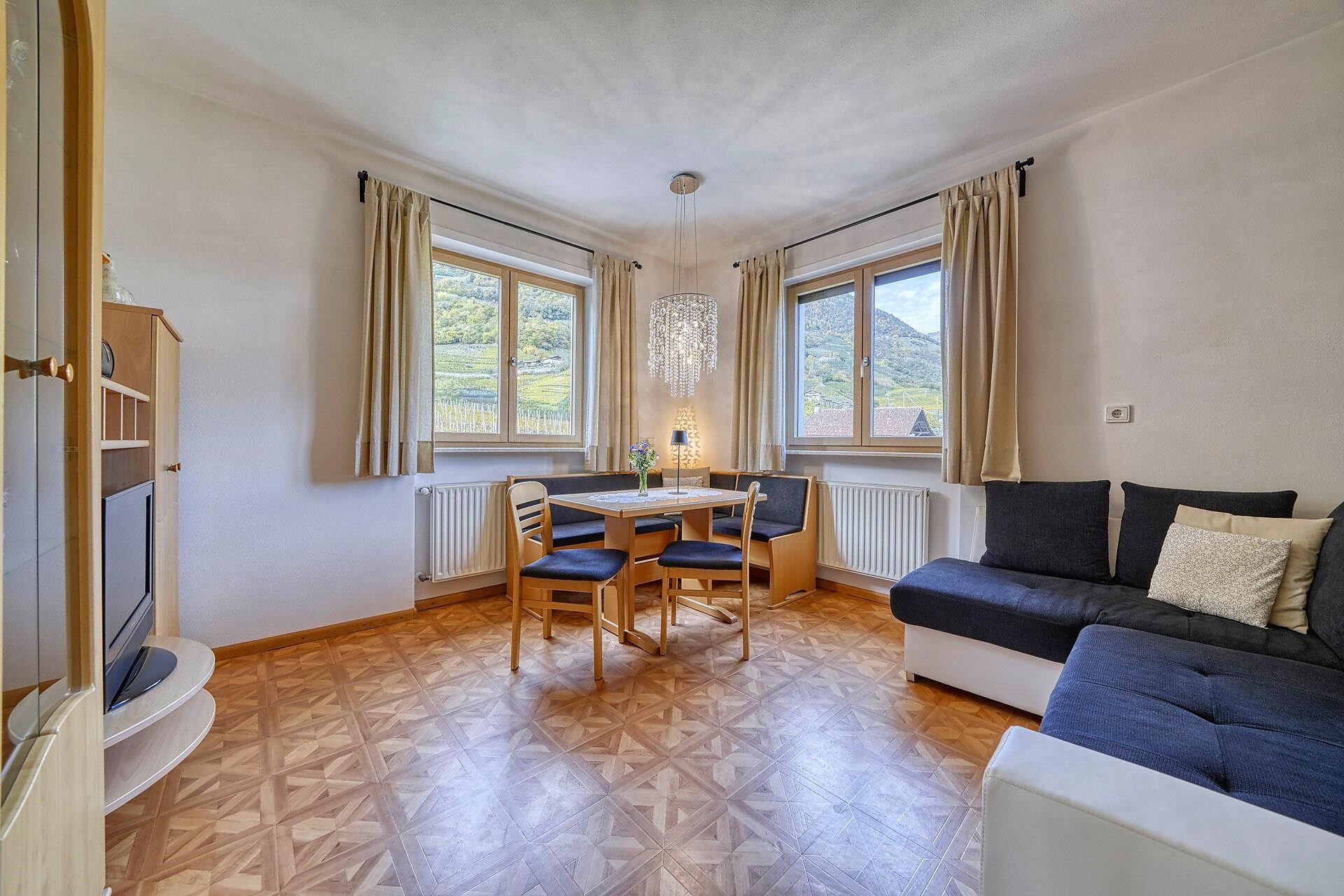 Double bed , Terrace, Bed linen provided, Safe, Eat-in kitchen, Coffee machine, Dishwasher, Electric cooker, Cutlery provided, Water boiler, Shower/Bath tub, Hair dryer, Towels, HiFi, TV, Satellite/Cable, WLAN, Internet access, Main building, Panoramic view