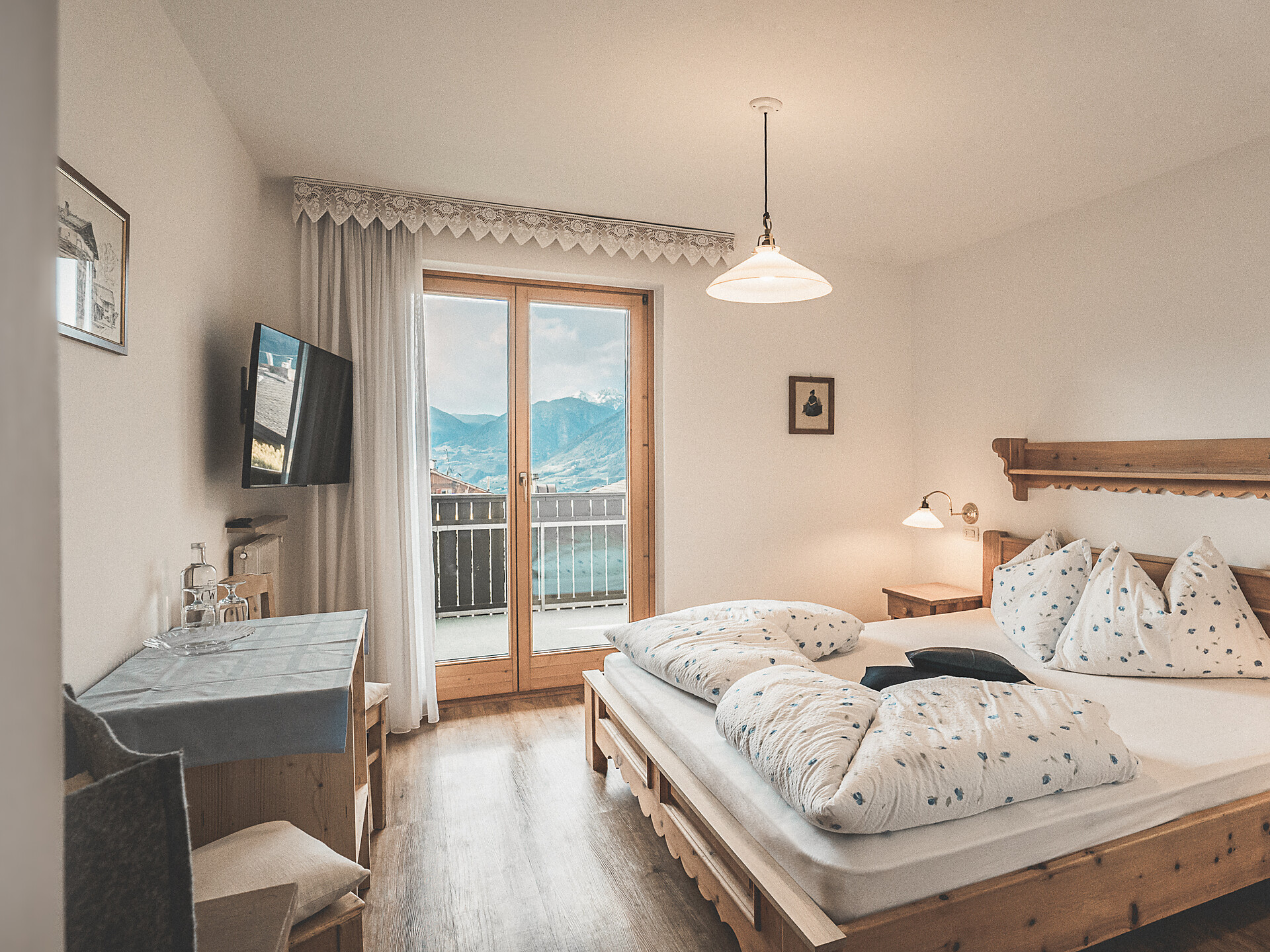 Our small hotel with just 13 rooms is tucked away on a quiet side street in the center of Dorf Tirol – the perfect starting point to explore the surroundings without needing a car. The cozy atmosphere isn’t just because of the limited number of guests, a maximum of 25, but also thanks to the warm hospitality: from the moment you arrive to the moment you leave, everyone knows each other, shares hiking tips, or chats about life.