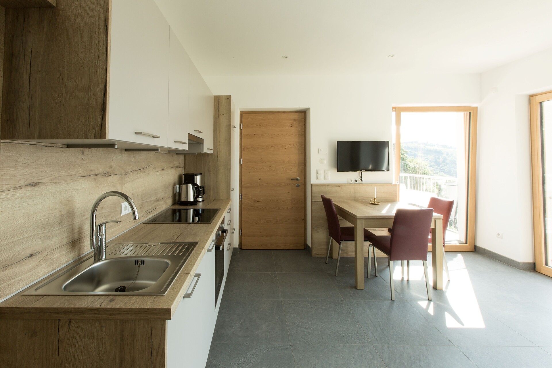 Double bed , Extra bed, Double sofa bed, Balcony, Bed linen provided, Safe, Non-smoking apartment, Eat-in kitchen, Coffee machine, Dishwasher, Electric cooker, Cutlery provided, Water boiler, Shower/Bath tub, Hair dryer, TV, Satellite/Cable, WLAN, Main building, Panoramic view, South view