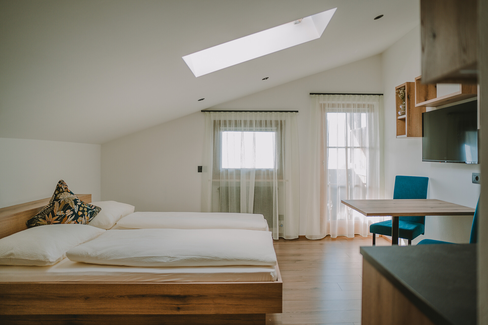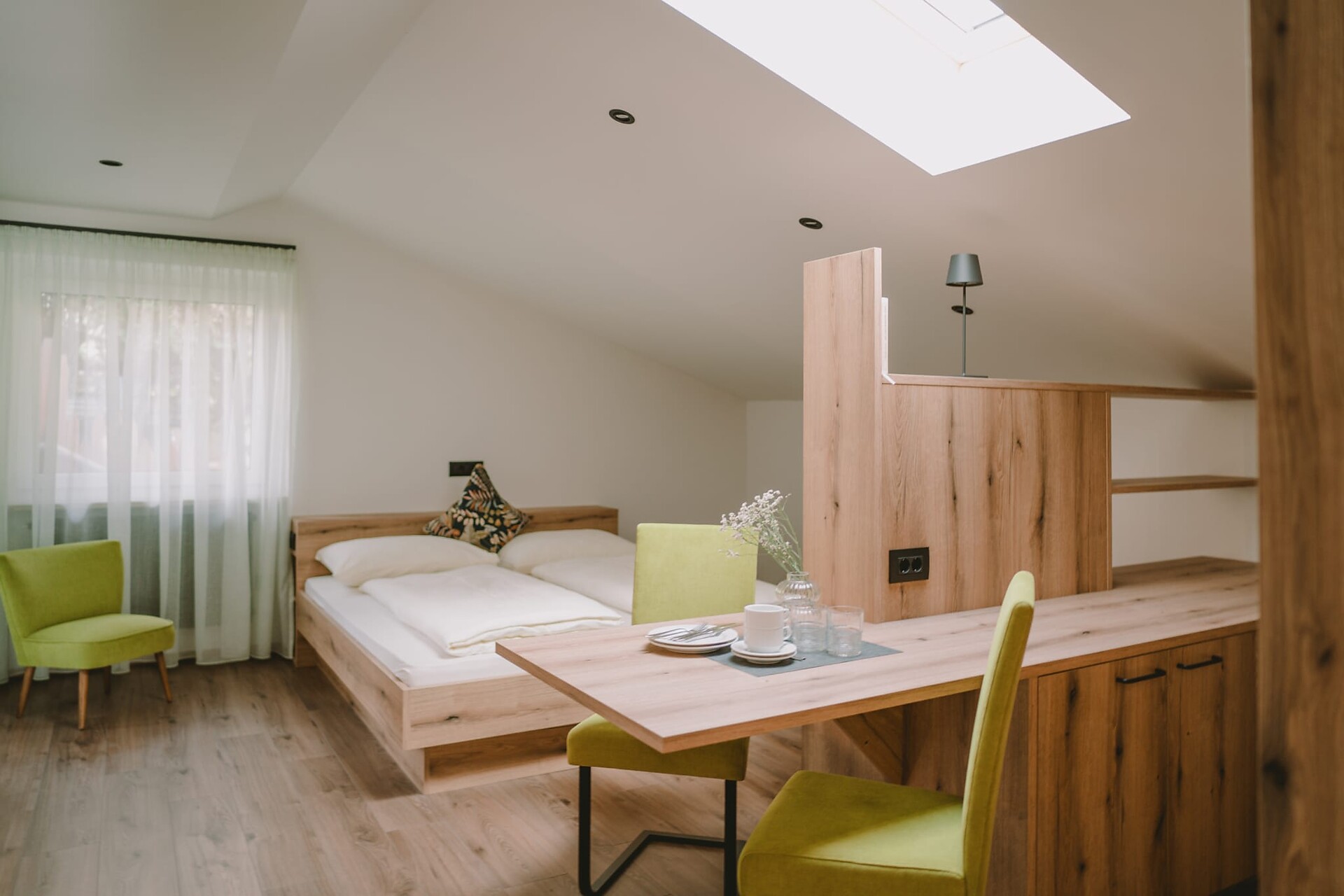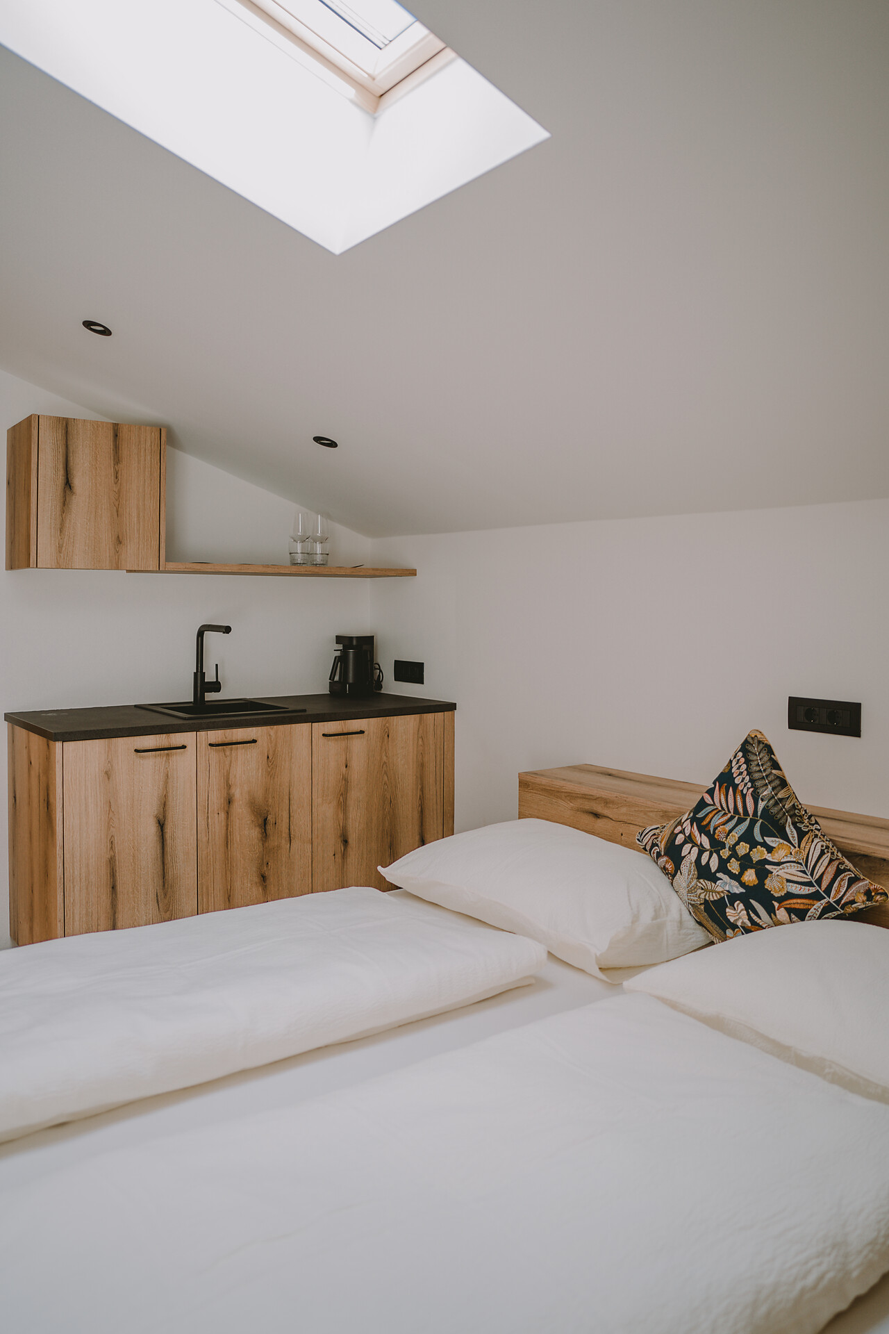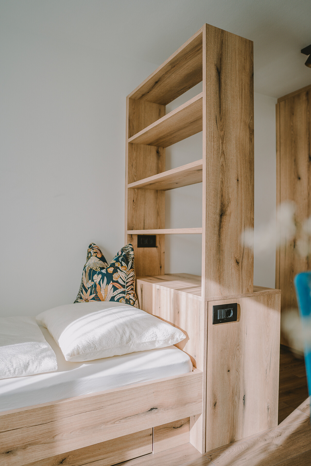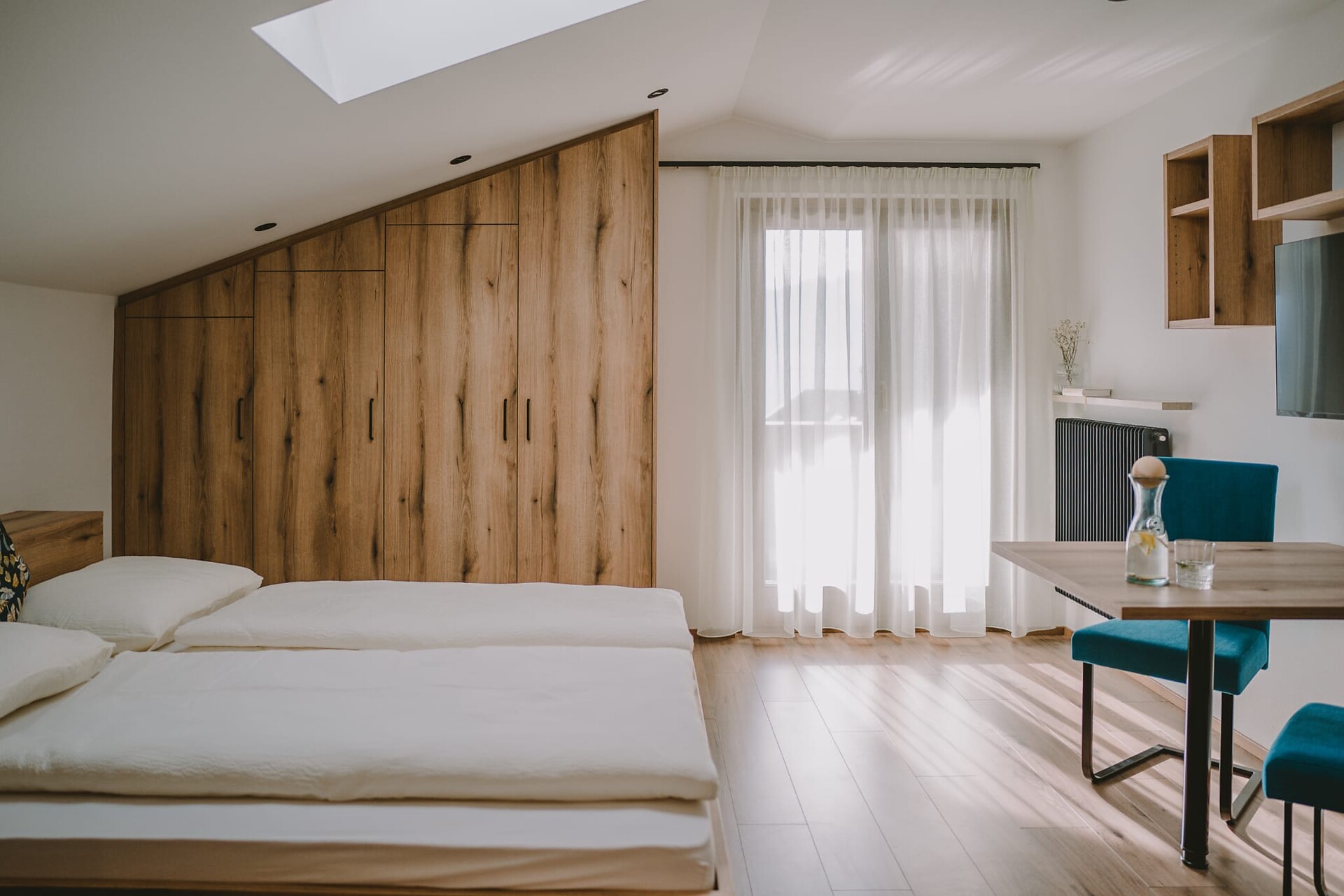 Le nostre camere confortevoli sono una combinazione armoniosa di luce naturale, calde tonalità del legno e un design moderno e minimalista. Qui troverete la pace e il riposo perfetti dopo una giornata ricca di esperienze.