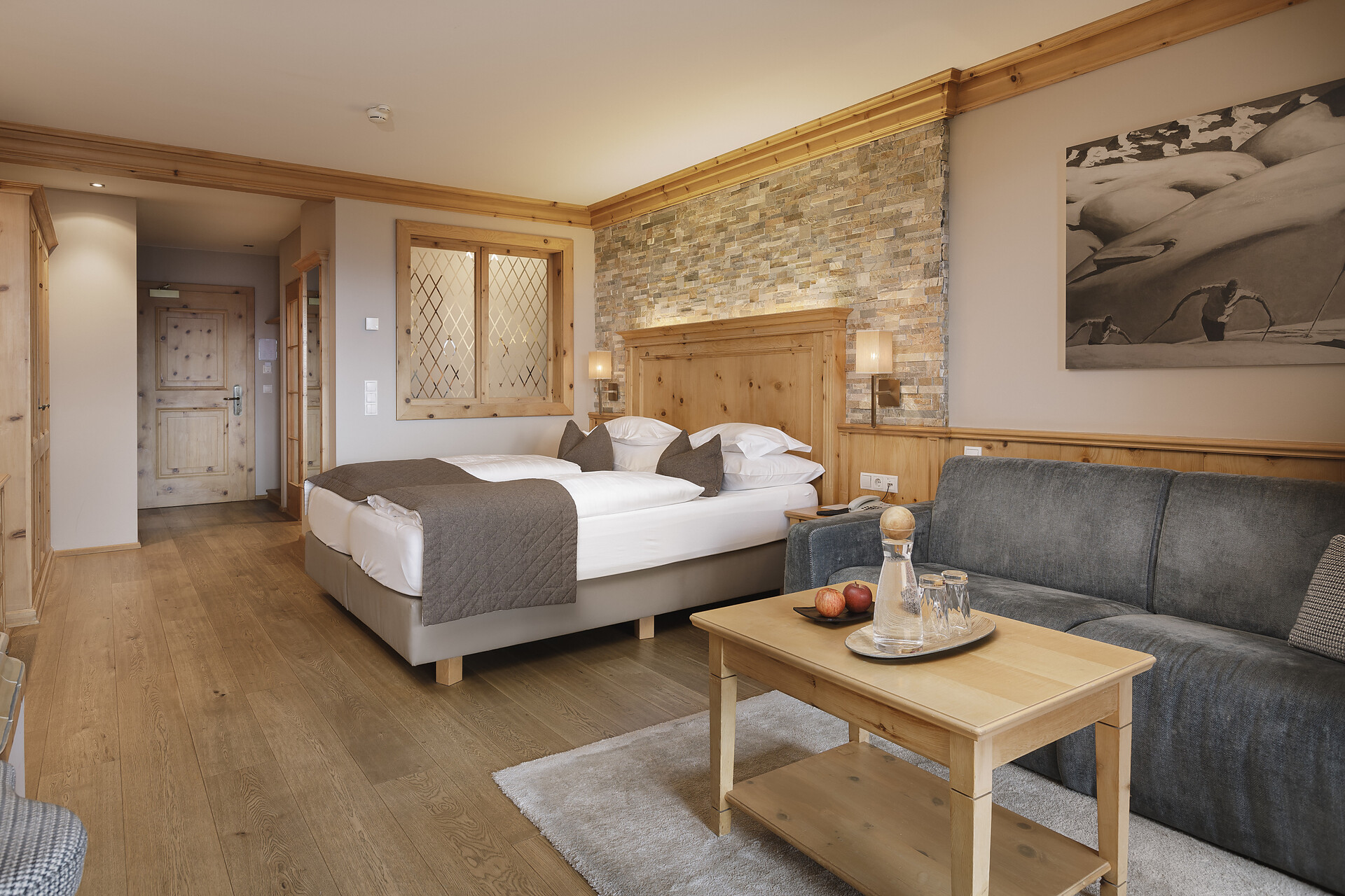 Il design spazioso dell'hotel di lusso fa centro anche nell'area benessere: gli ospiti possono nuotare nel laghetto naturale più lungo dell'Alto Adige, utilizzare la spa di 6.000 metri quadrati e godersi la natura nel giardino di 10.000 metri quadrati. Nella spa, la separazione della spa per famiglie da quella per soli adulti garantisce un relax senza limitazioni per i vacanzieri con bambini e per le coppie. Anche gli ospiti esterni sono i benvenuti e possono concedersi una pausa rilassante con una day spa o una late day spa. Il catering culinario con deliziosi piatti per il pranzo è incluso nel prezzo.