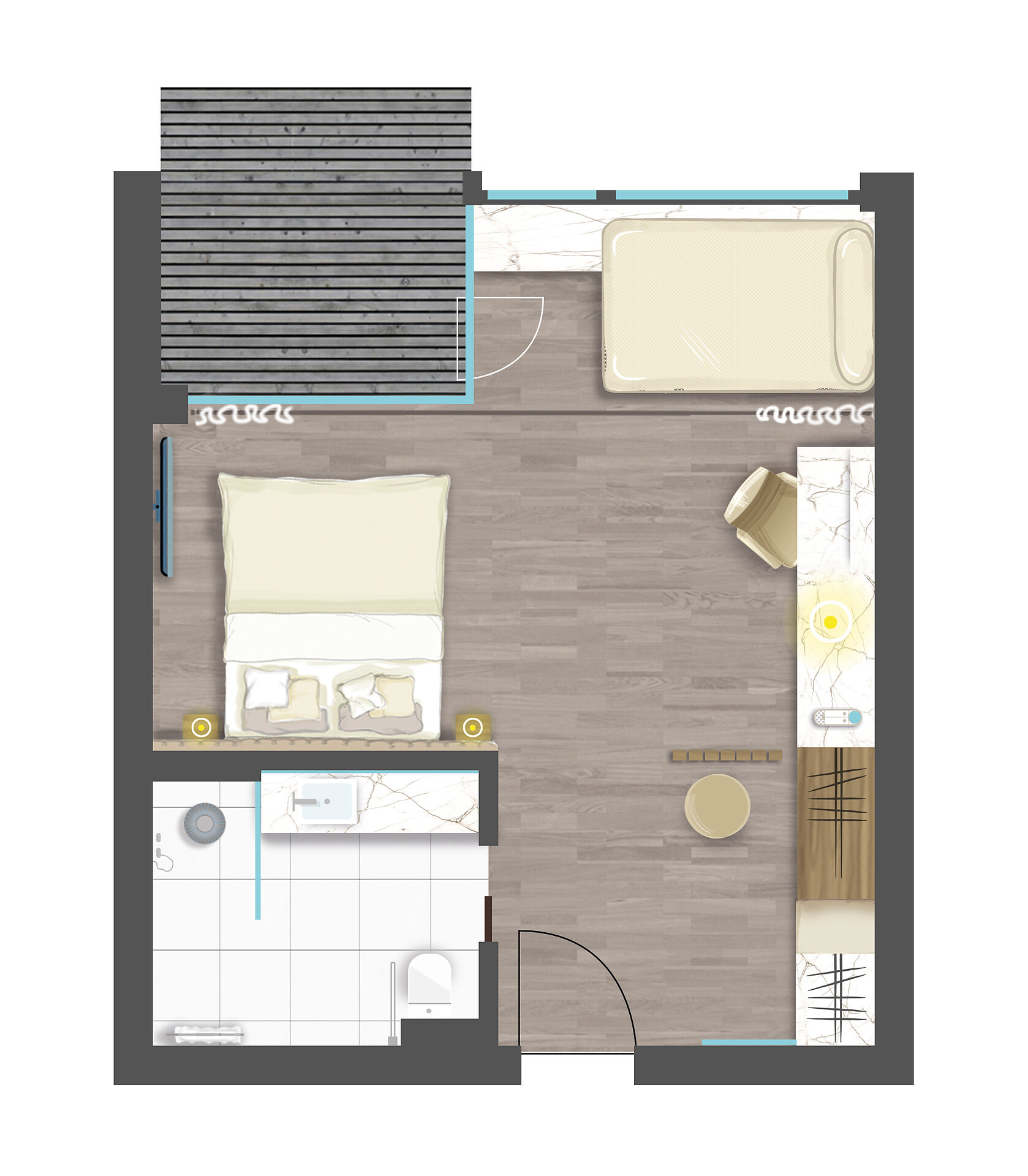 Struttura ben fruibile praticamente in tutti i suoi ambienti, ma non adeguatamente attrezzata nei servizi igienici o con servizi wellness difficilmente raggiungibili