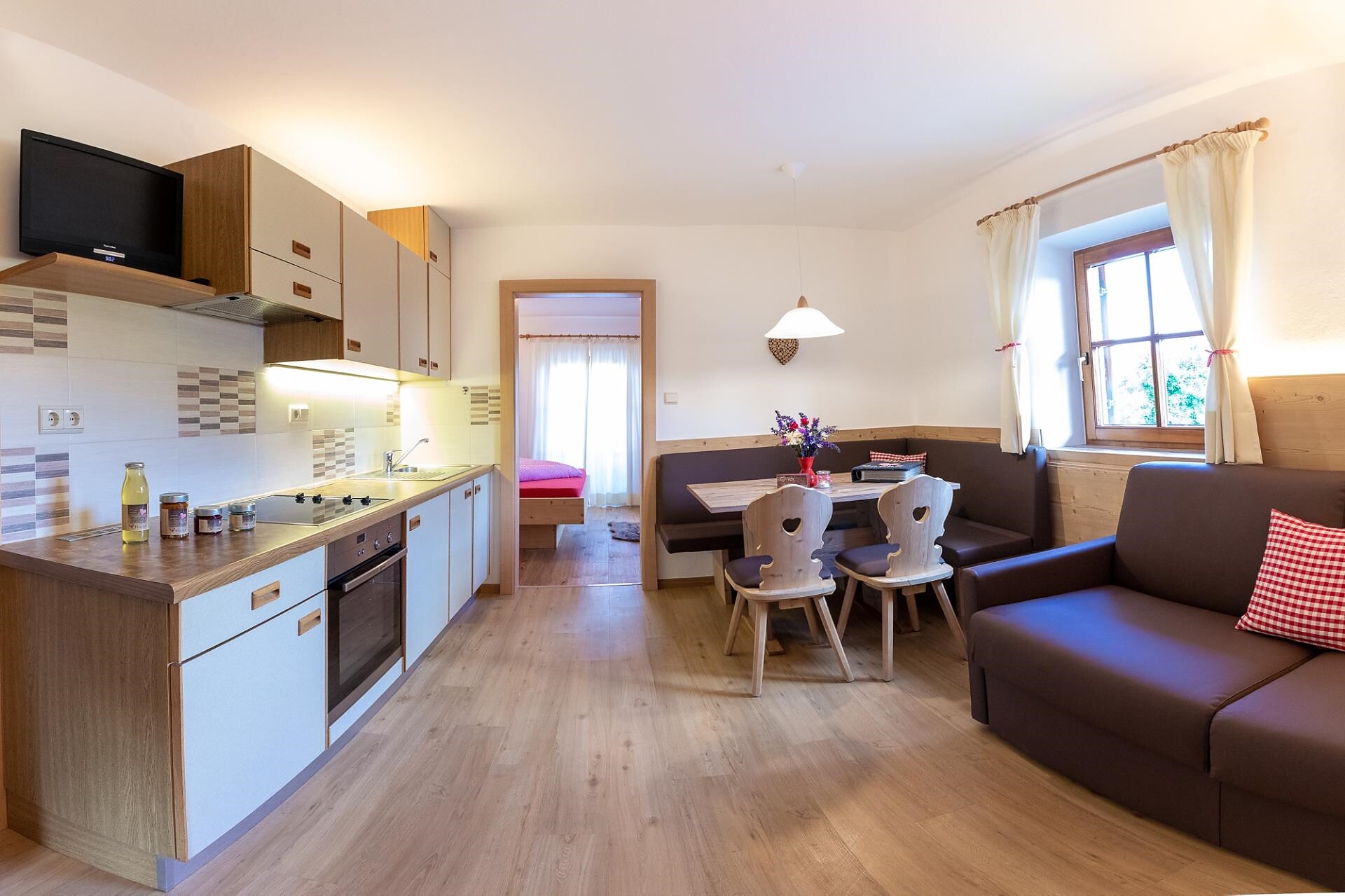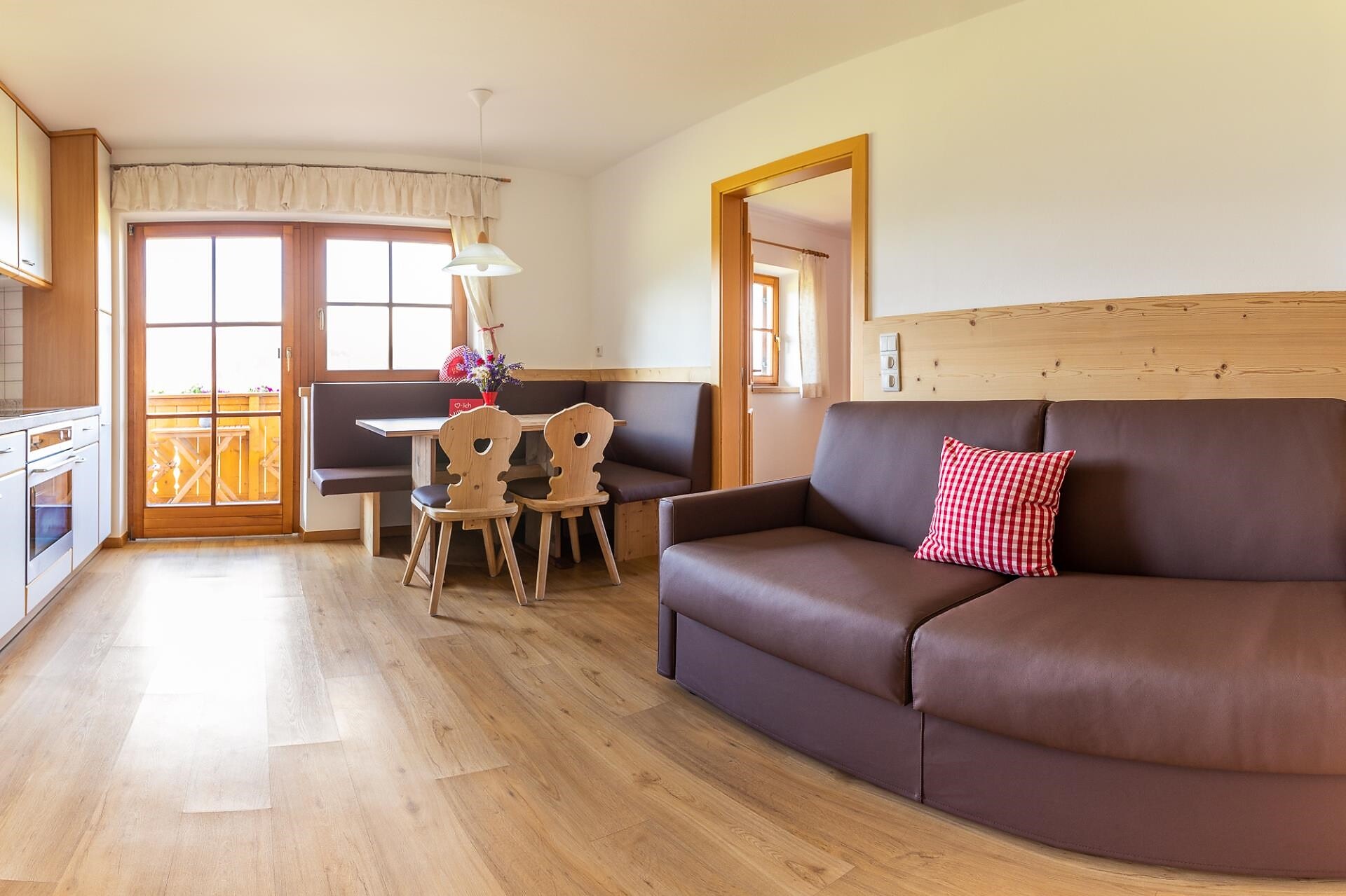 L'appartamento "Ifinger" è molto spazioso e molto luminoso. Adatto a famiglie, coppie, bon vivants e ospiti con cani. Il balcone offre una splendida vista sul maso, sul parco giochi e sulle cime del monte Ivigna. Il secondo balcone, sul lato nord-ovest, permette di ammirare il Gruppo di Tessa e di godere il sole del pomeriggio e della sera.