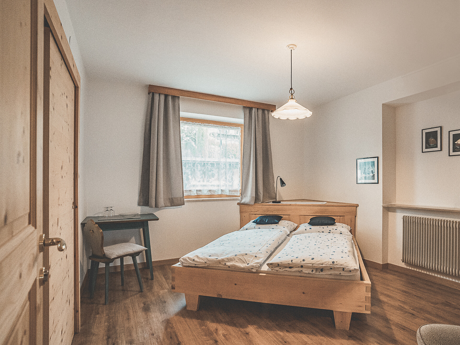 Nuova, in legno di cembro conciliante per il sonno, magnifica vista dal balcone sulle montagne e sul nostro giardino. TV LCD satellitare, radio integrata, telefono e cassaforte. Bagno con doccia e fon.