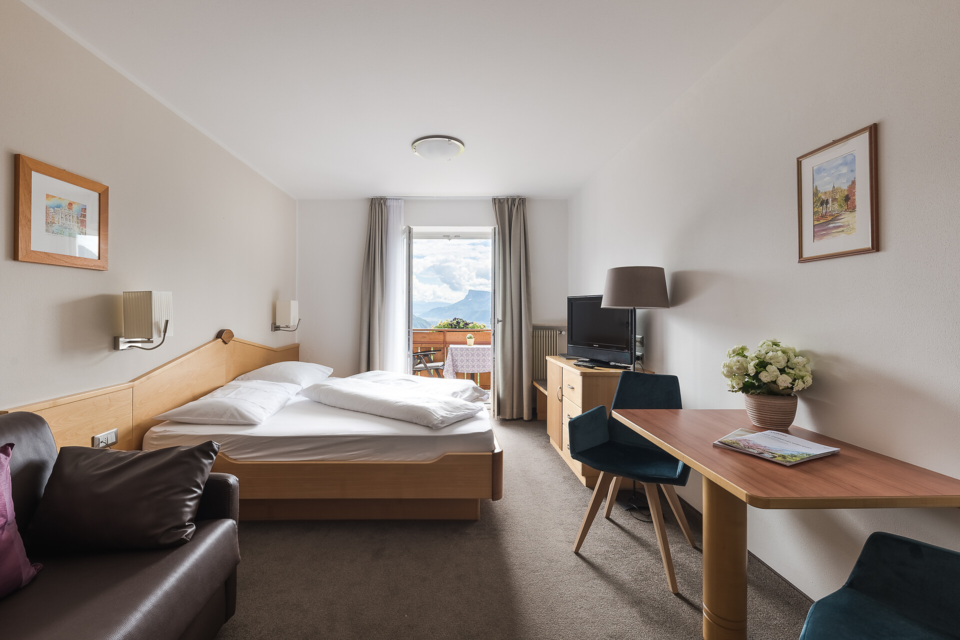 Allestimento: Camera doppia, Letto matrimoniale, Lettino , Divano letto, Balcone, Soggiorno, Cassaforte, Camera non fumatori, Doccia/bagno, Bidet, Fon, TV, TV satellitare/via cavo, WLAN, Edificio principale, Vista panoramica, Lato sud