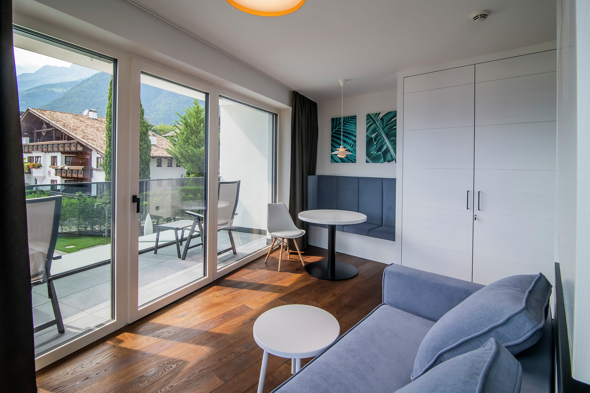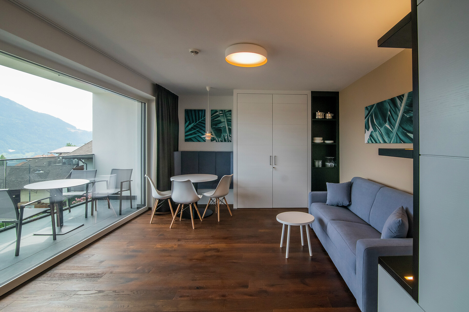 L'appartamento Gantkofel ha 34,73 mq, una zona notte, una zona giorno e pranzo e balconi.