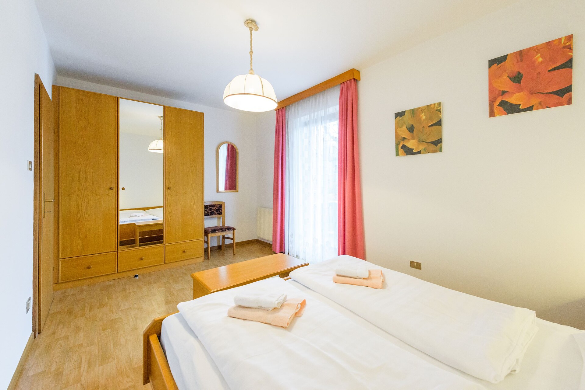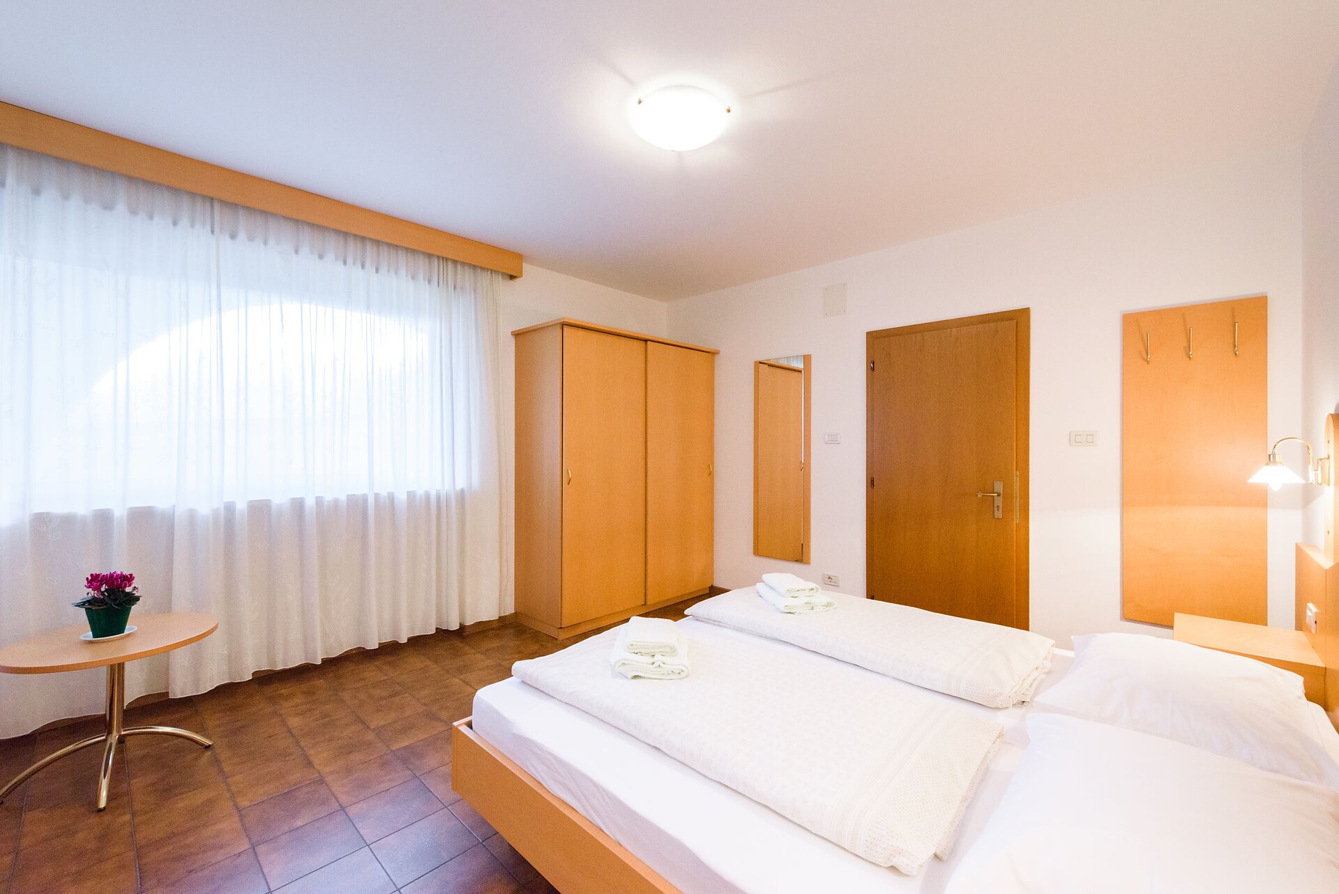 Vi offriamo comodi e spaziosi appartamenti in una posizione soleggiata ne paese di Tirolo . Il vostro appartamento è composto da due camere: una camera da letto matrimoniale e un soggiorno separato con angolo cottura (cucina completamente attrezzata con frigorifero), zona pranzo e divano letto per due persone. Biancheria e asciugamani inclusi. TV a colori, doccia e servizi igienici, balcone e terrazza vista montagna.