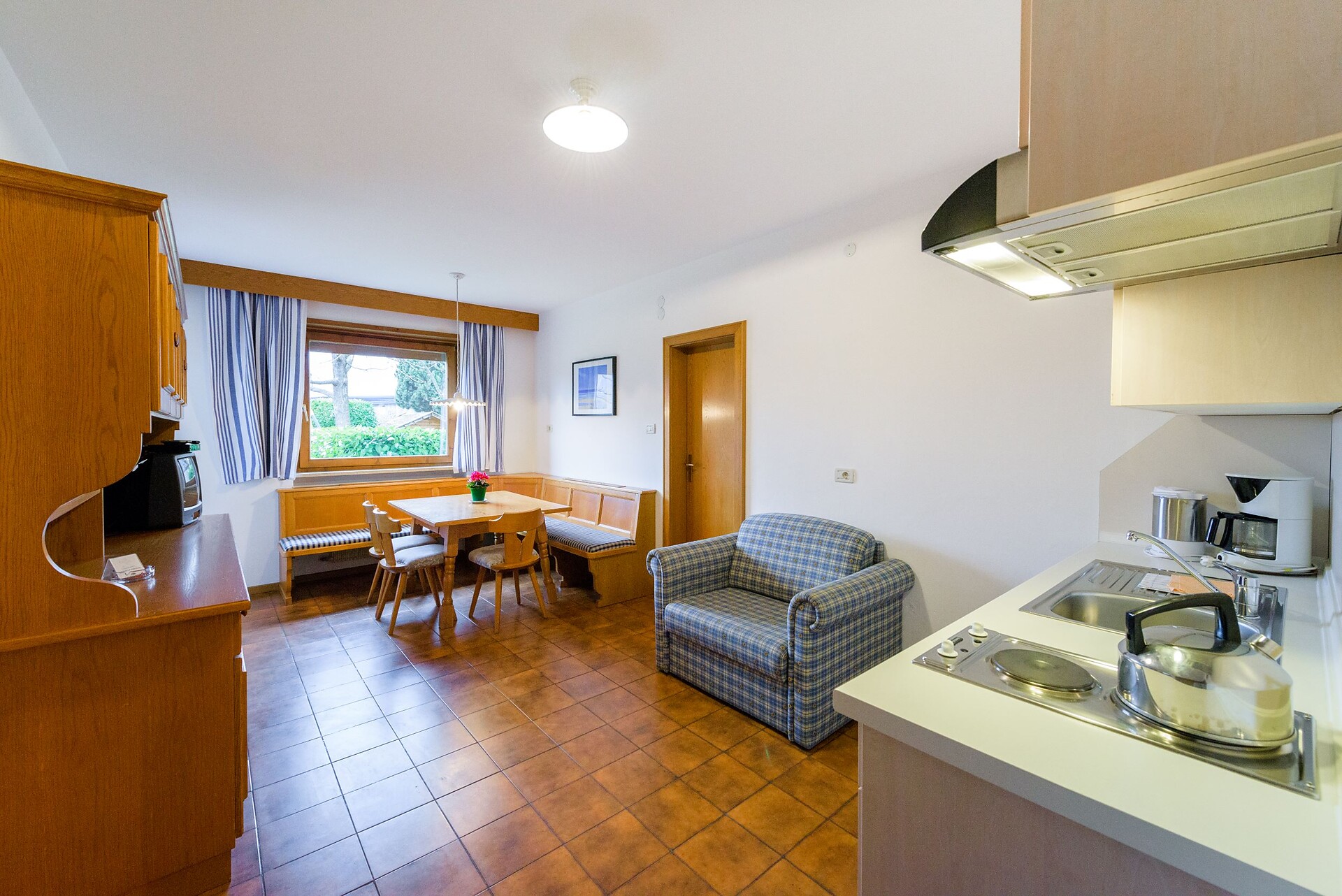 Vi offriamo comodi e spaziosi appartamenti in una posizione soleggiata ne paese di Tirolo . Il vostro appartamento è composto da due camere: una camera da letto matrimoniale e un soggiorno separato con angolo cottura (cucina completamente attrezzata con frigorifero), zona pranzo e divano letto per due persone. Biancheria e asciugamani inclusi. TV a colori, doccia e servizi igienici, terrazza con giardino appartengono al suo appartamento.