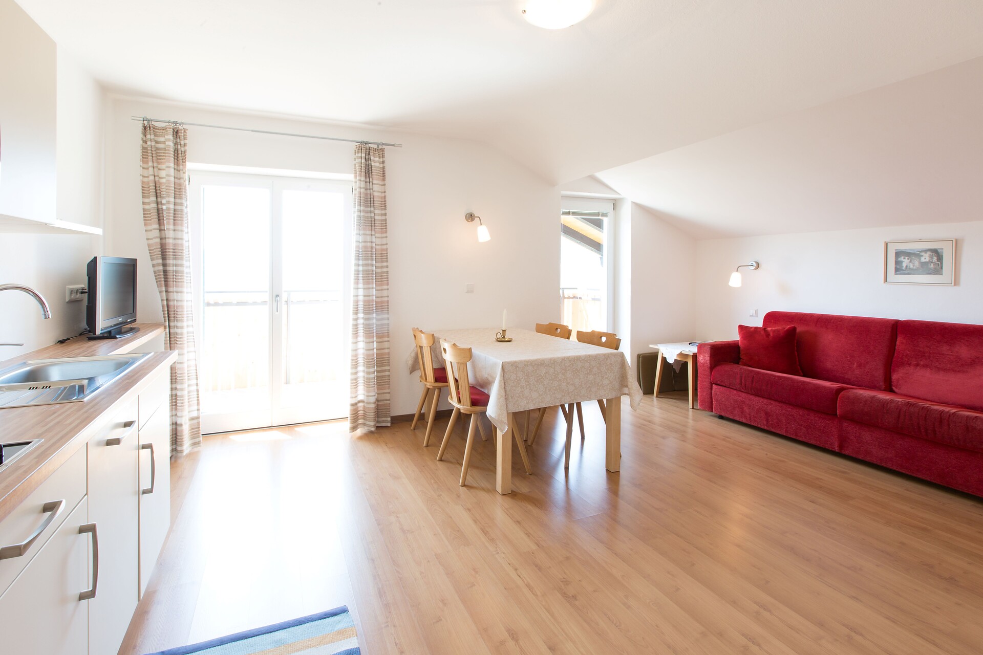 Letto matrimoniale, Divano letto matrimoniale, Balcone, Biancheria da letto disponibile, Cassaforte, Appartamento non fumatori, Cucina abitabile, Macchina da caffè, Lavastoviglie, Piano cottura elettrico, Stoviglie, Scaldaacqua, Forno, Doccia / bagno, Fon, TV, TV satellitare/via cavo, WLAN, Dependance, Vista panoramica, Lato sud