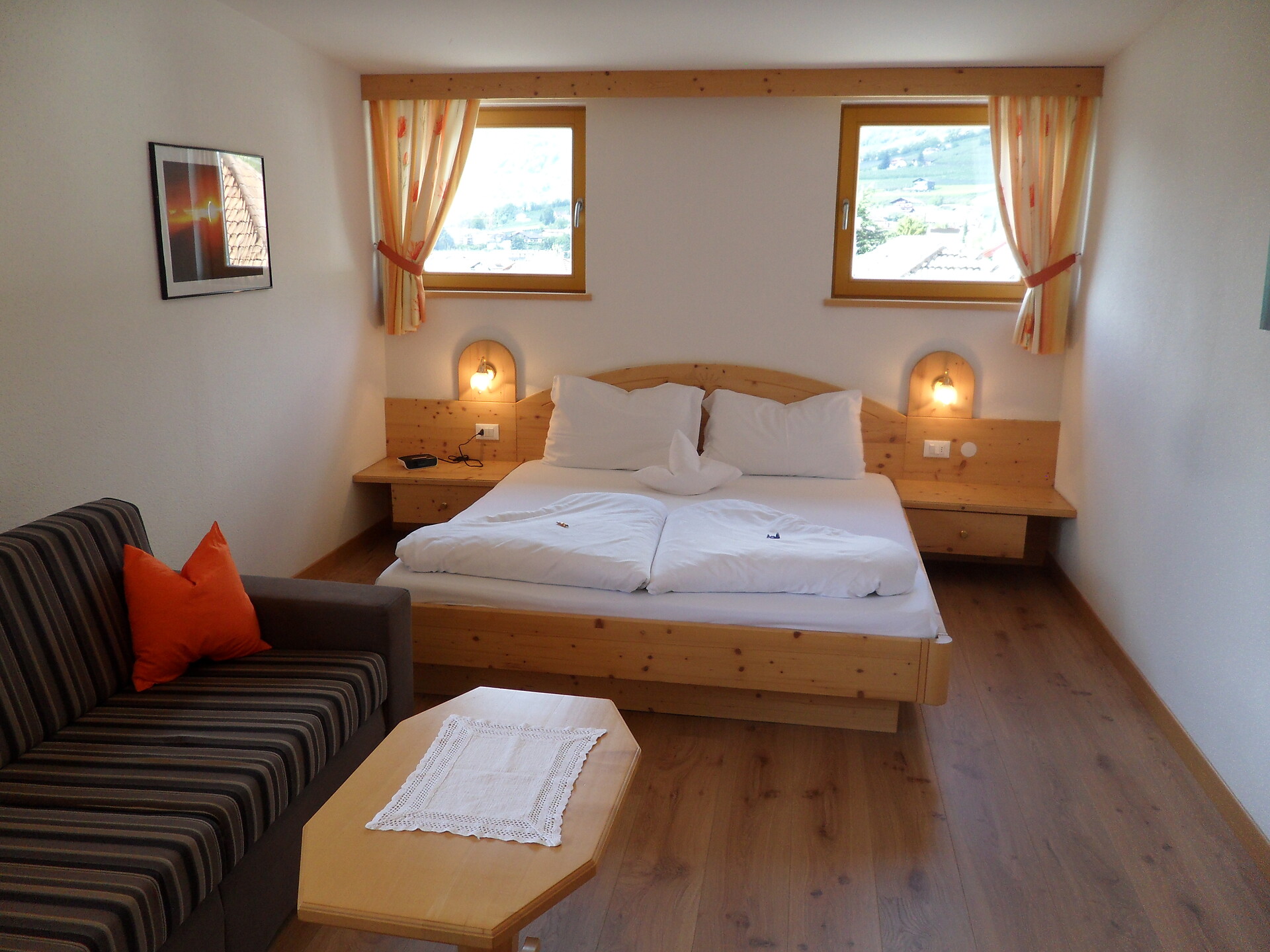 Trascorrere ore tranquille nelle nostre silenziose stanze tutte con balcone e con una meravigliosa vista su meleti e maestose montagne. Tutte le nostre camere sono dotate di doccia, servizi, asciugacapelli, specchio cosmetico, Tv/Lcd, balcone e pavimento in legno.