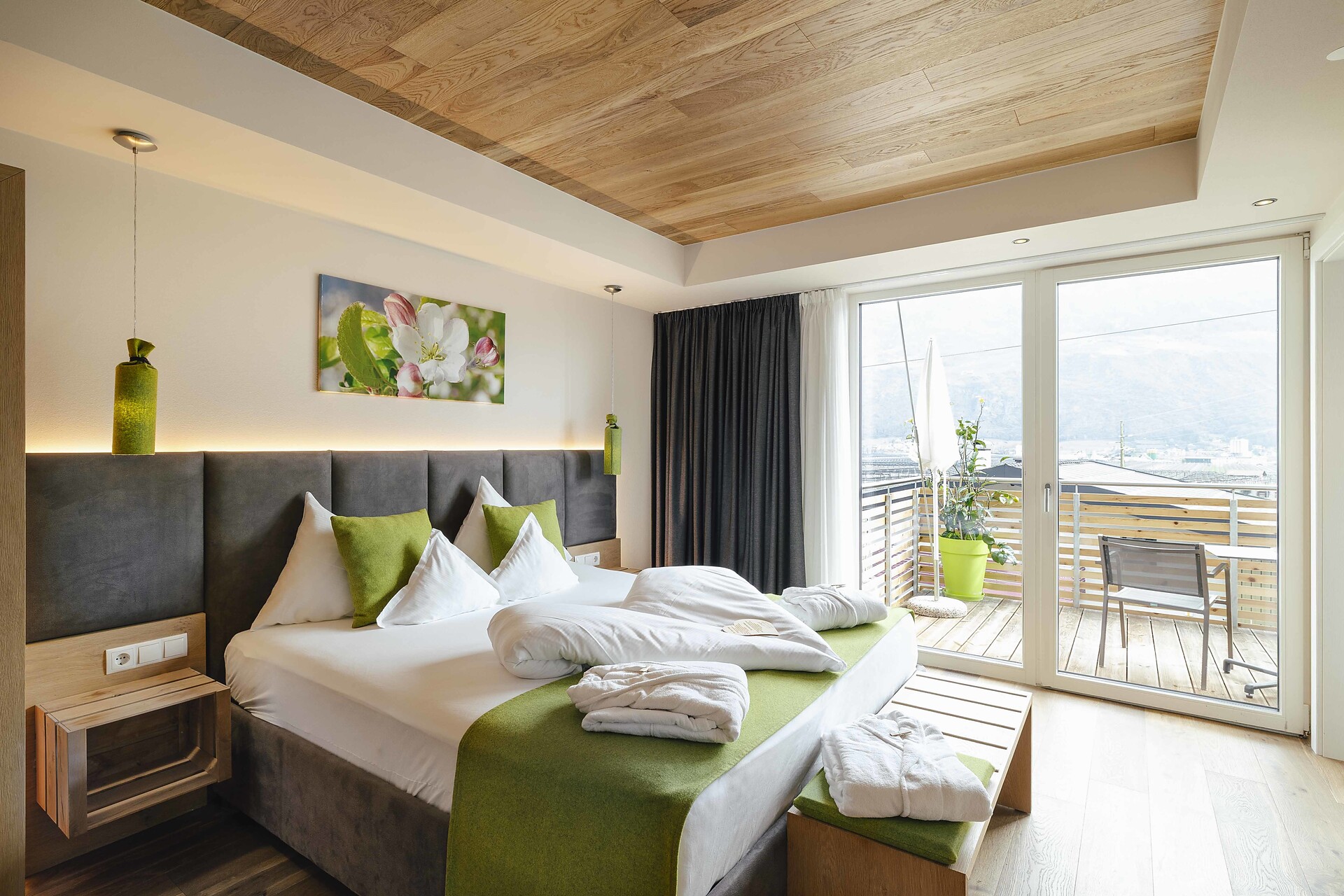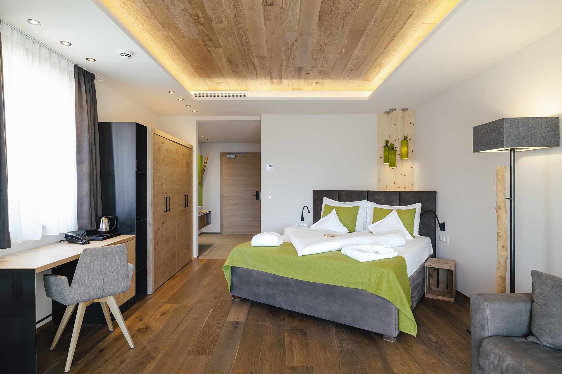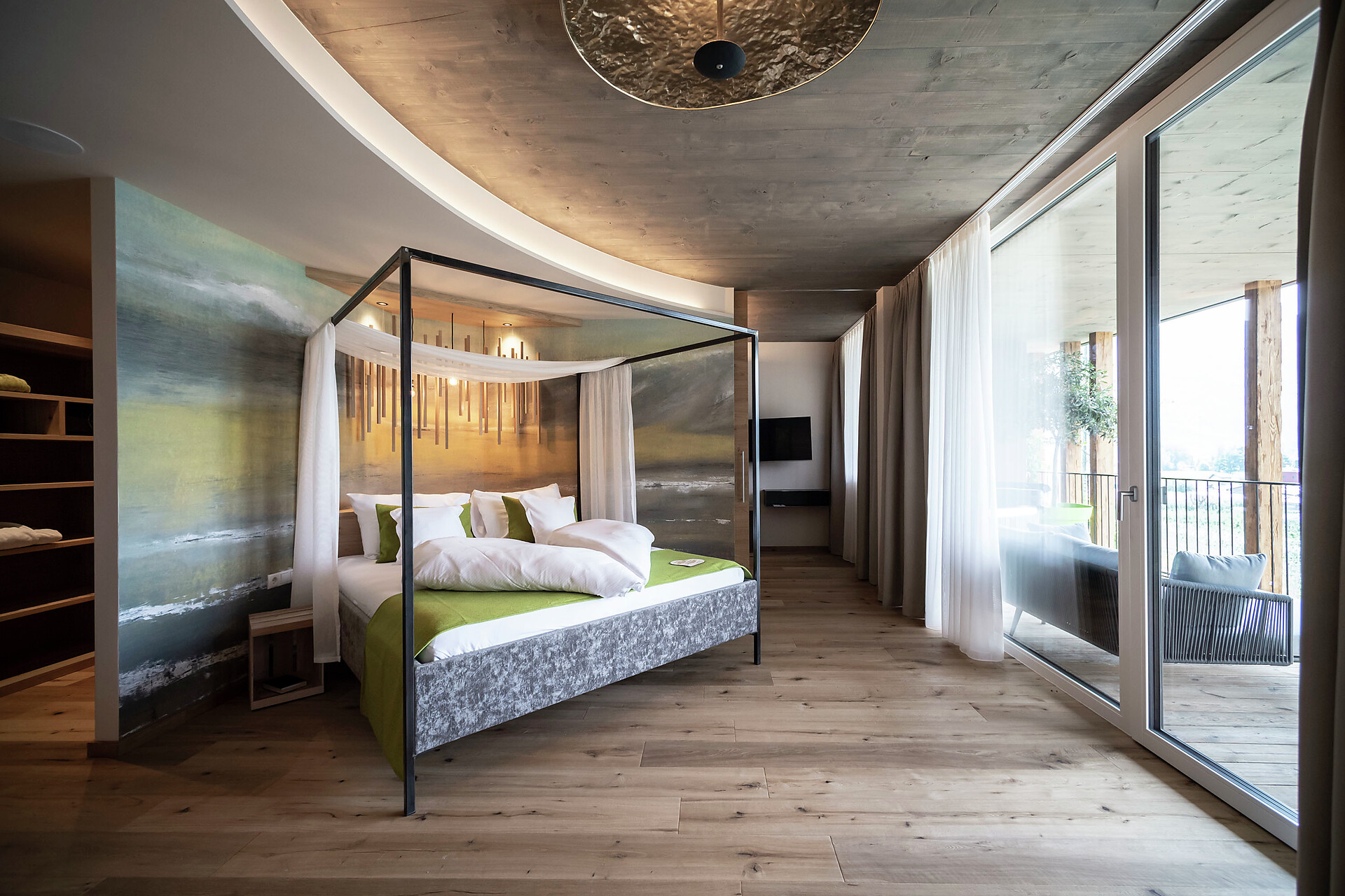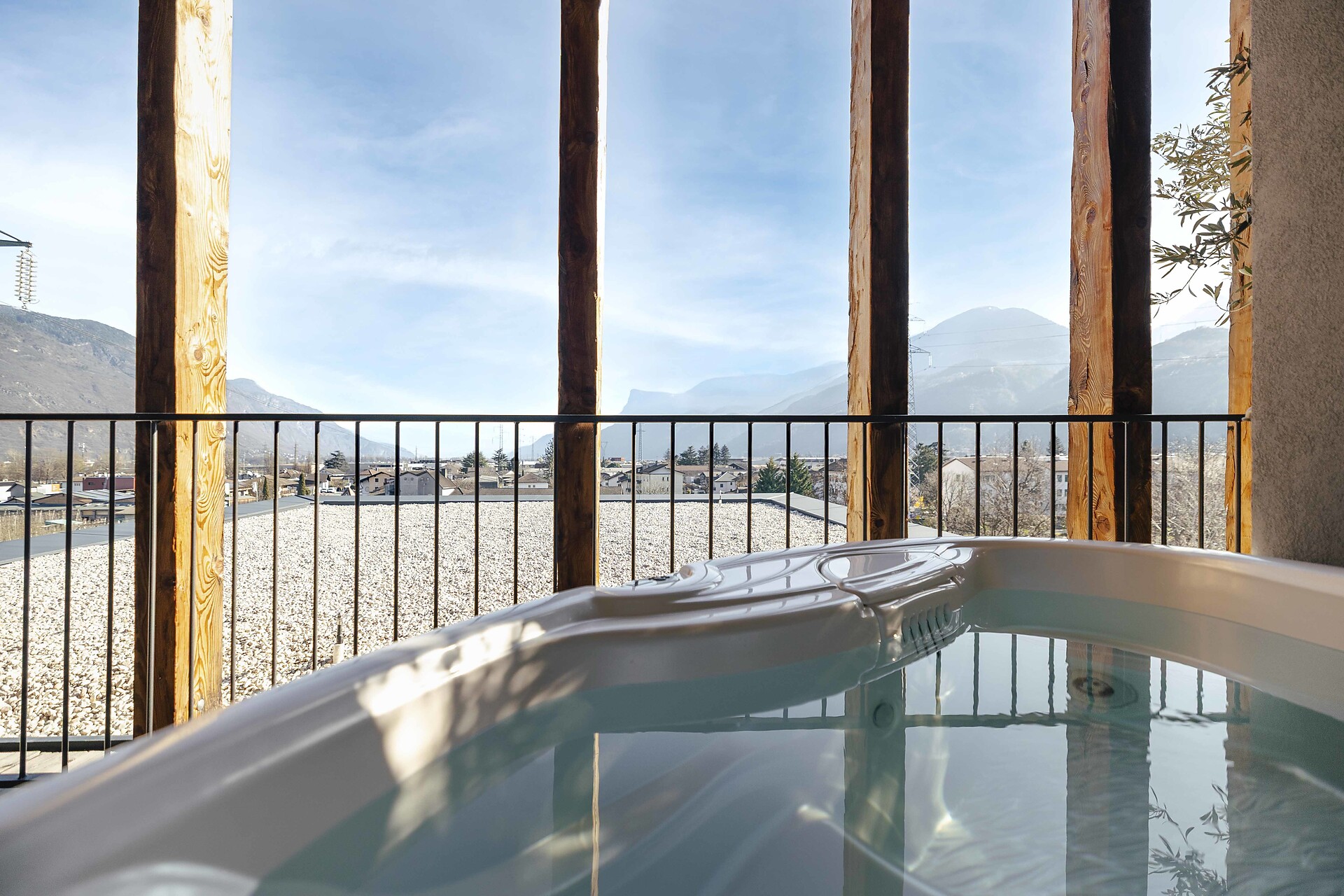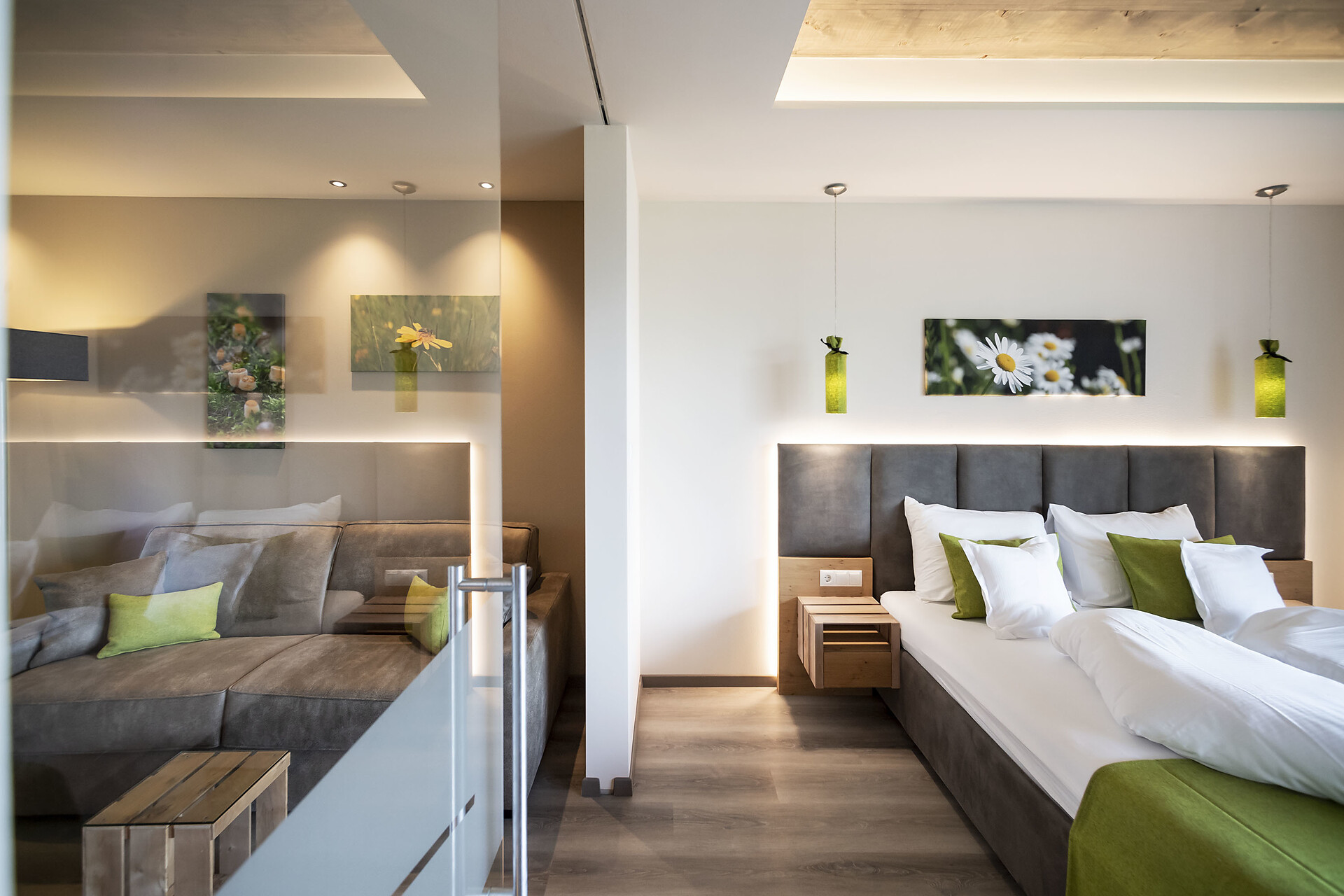 Luminosa Suite con camera da letto e zona giorno separata. Il punto culminante è la vasca idromassaggio Hotspring sul privato balcone panoramico rivolto a sud. Bagno elegante, dotato di doccia a pioggia, asciugacapelli e bidet, frigorifero, macchina per espresso, set da tè, WiFi, 2 TV, cassaforte, aria condizionata.