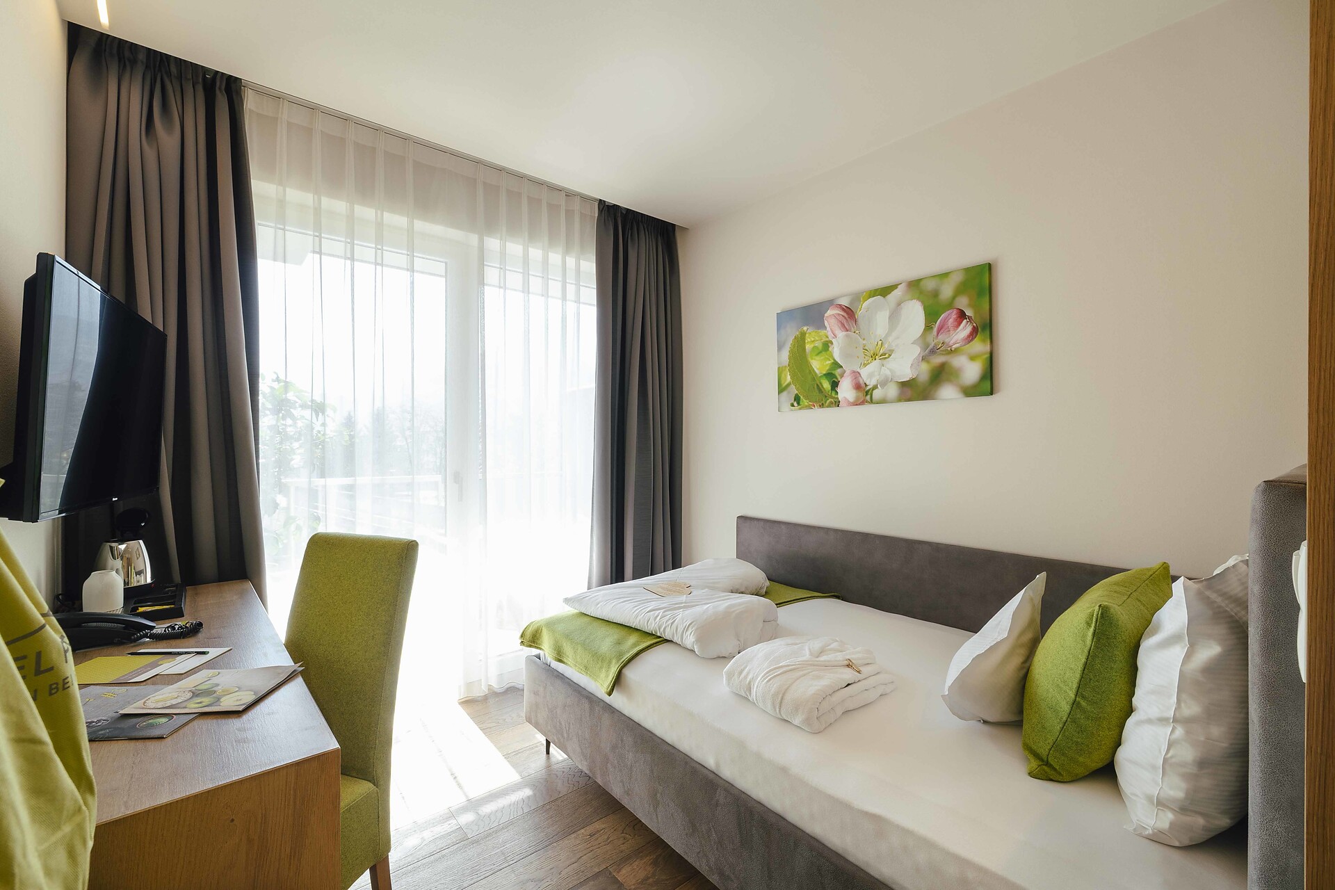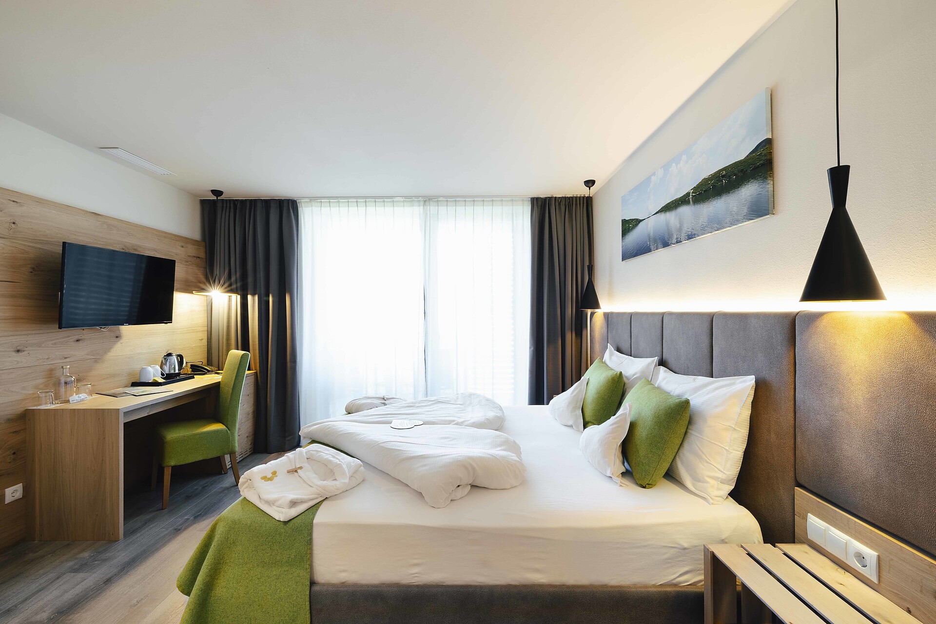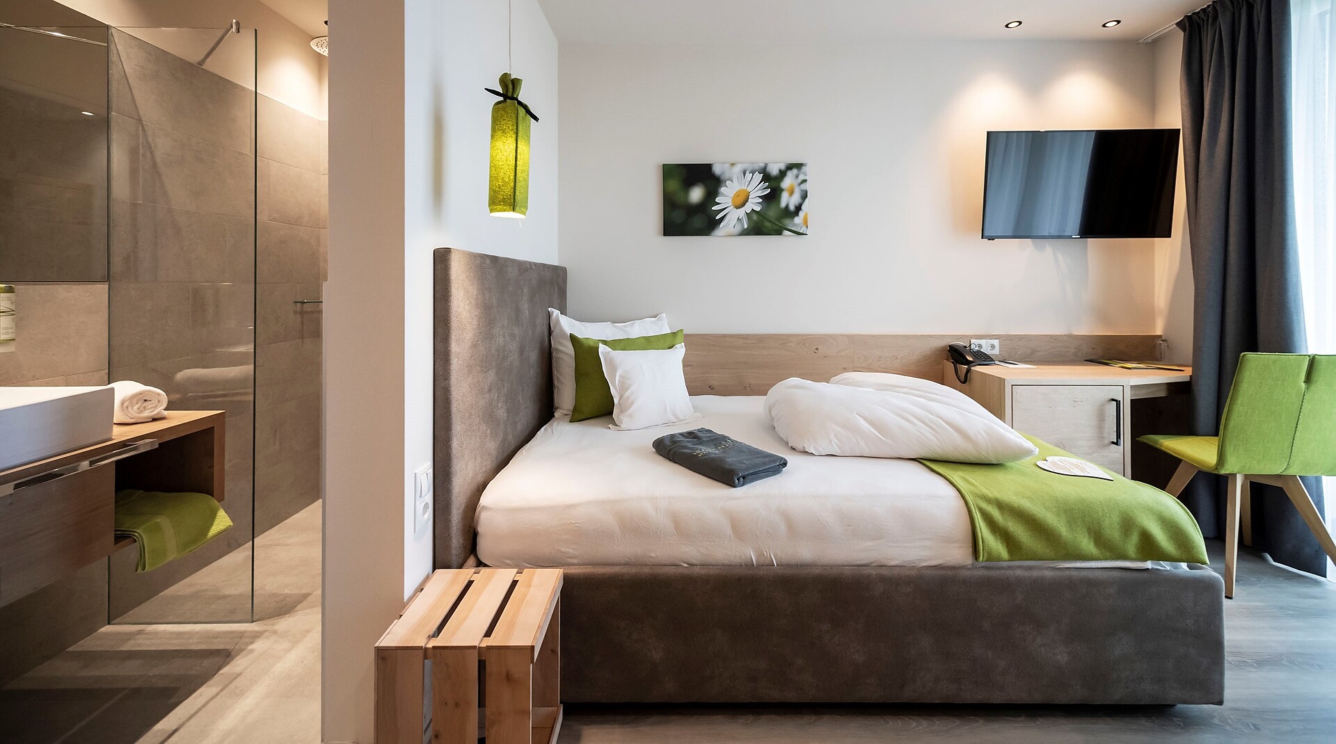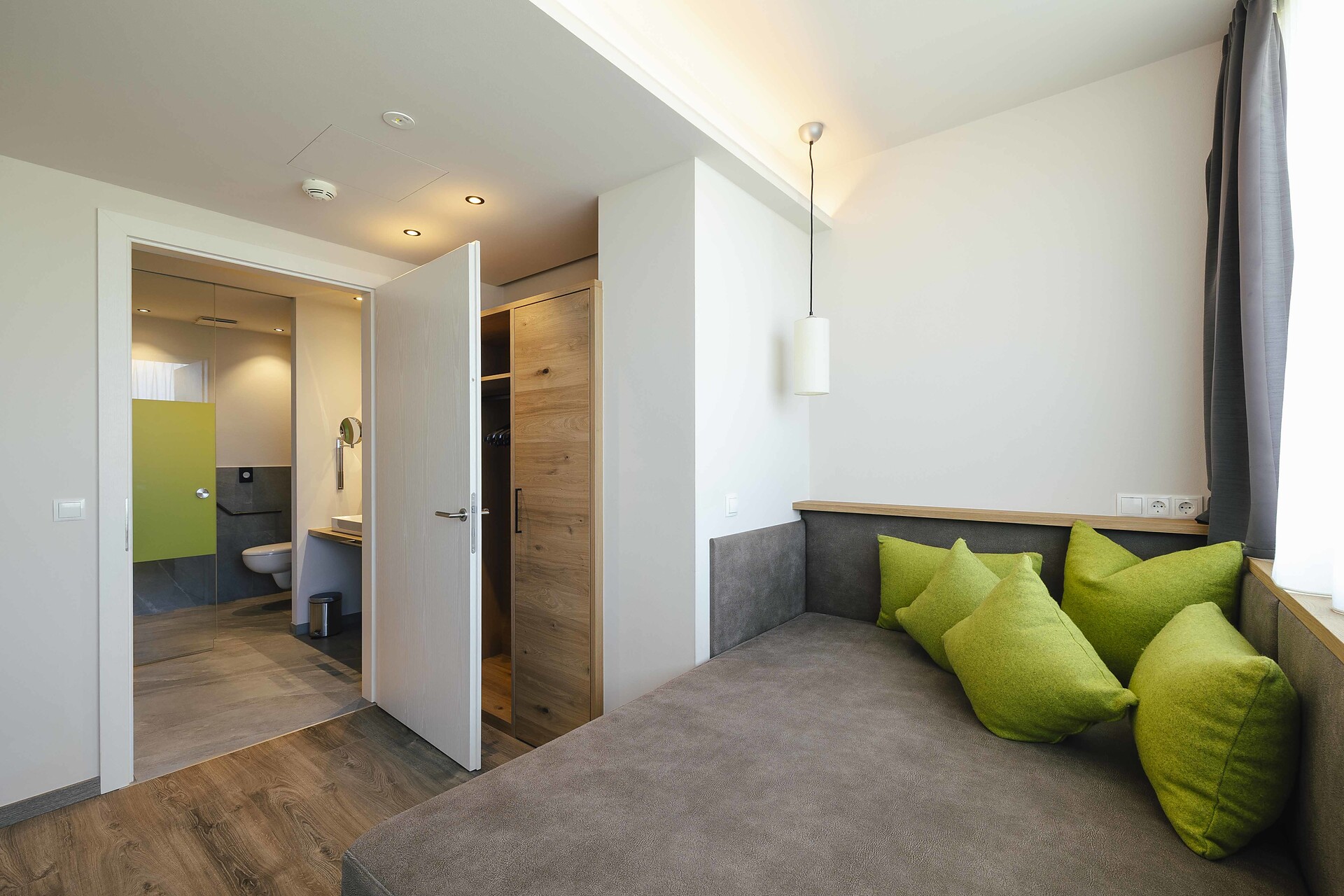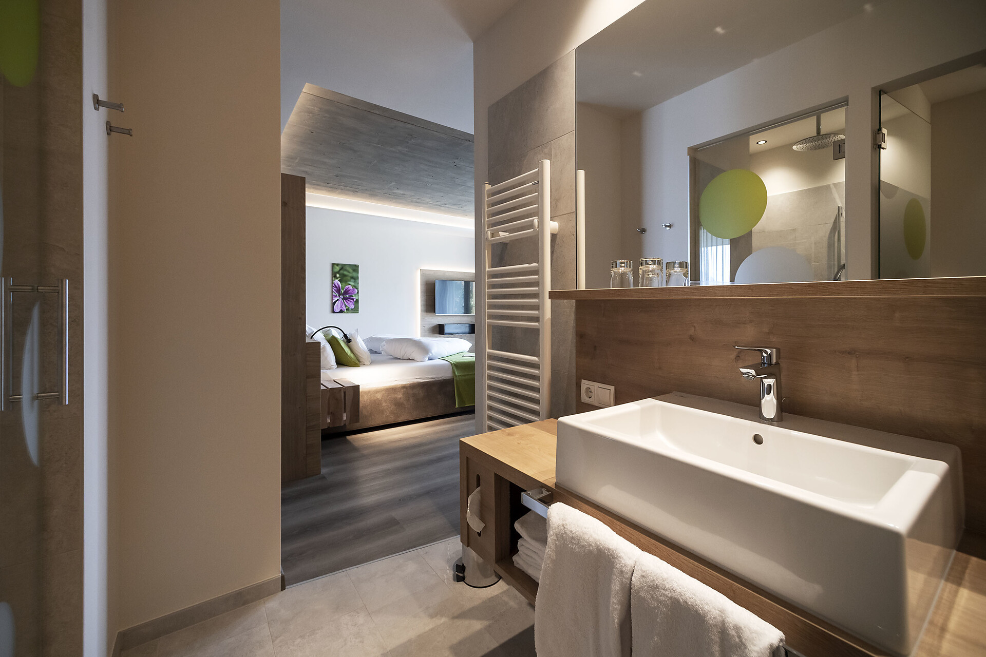 Luminosa Suite con camera da letto e zona giorno separata. Il punto culminante è la vasca idromassaggio Hotspring sul privato balcone panoramico rivolto a sud. Bagno elegante, dotato di doccia a pioggia, asciugacapelli e bidet, frigorifero, macchina per espresso, set da tè, WiFi, 2 TV, cassaforte, aria condizionata.