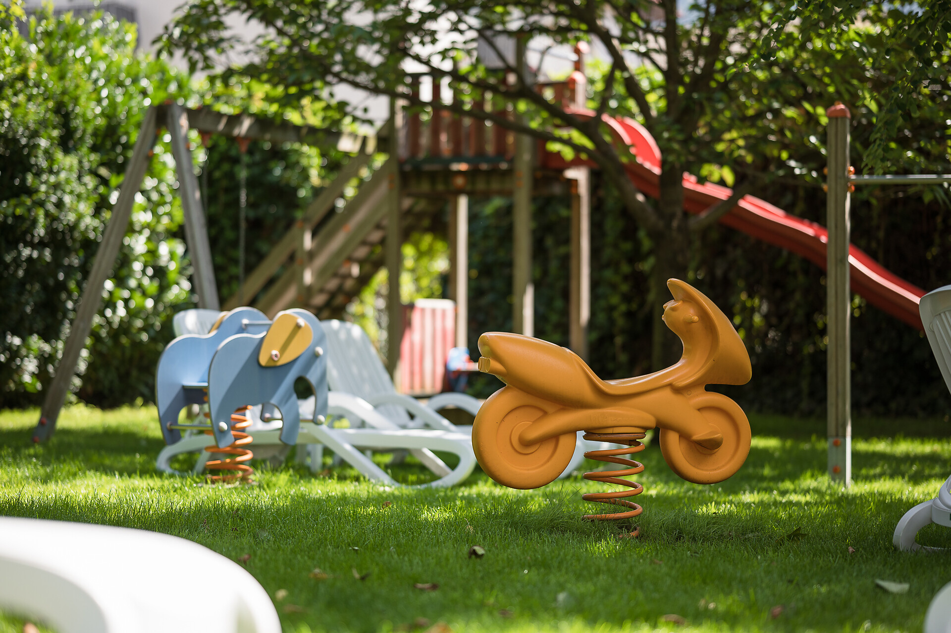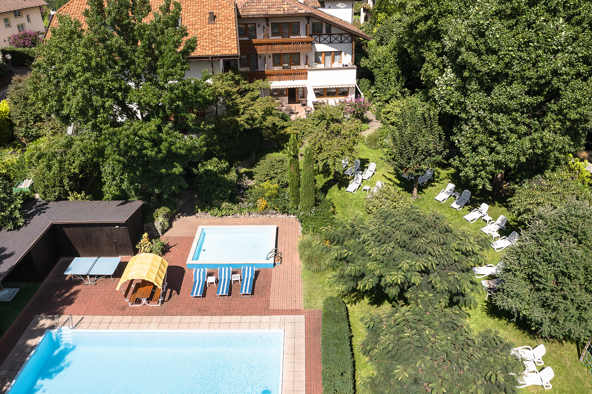 Posti soleggiati ma anche un pò di fresca ombra Vi aspettano nel nostro enorme giardino, un'isola verde a Vostra disposizione. Qui trovate anche la nostra piscina con vasca per bambini separata.