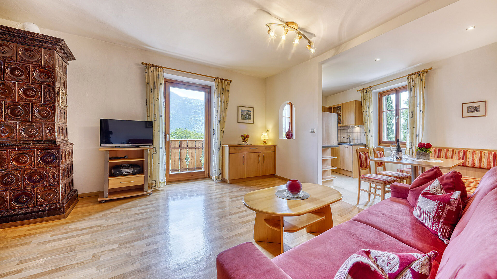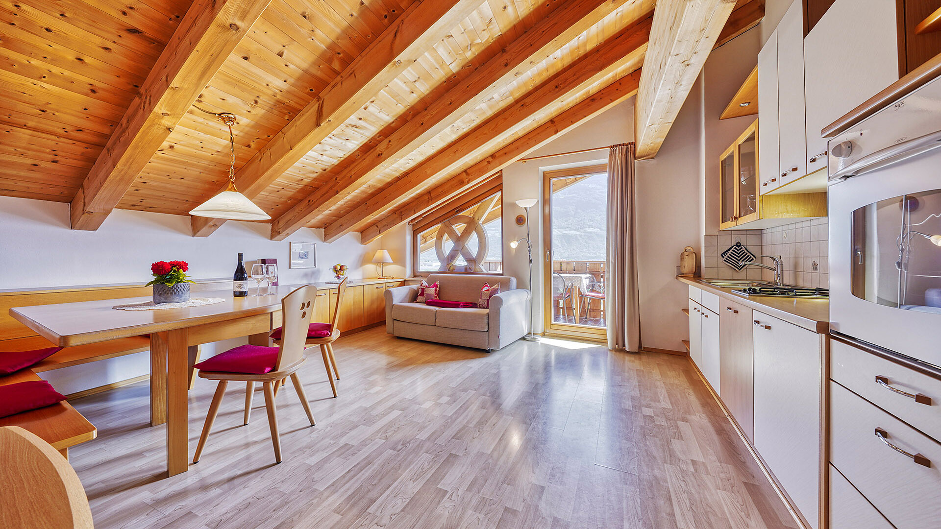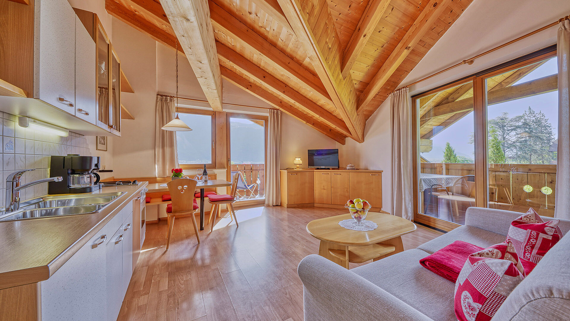 Cucina abitabile con divanoletto, camera doppia con letto supplementare, doccia/wc, balkone