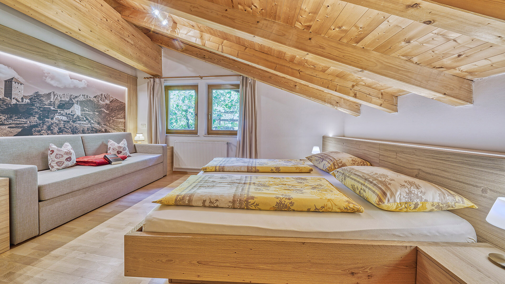 Letto singolo, Letto matrimoniale, Divano letto, Divano letto matrimoniale, Balcone, Camera antiallergica , Soggiorno separato, Biancheria da letto disponibile, Cassaforte, Appartamento non fumatori, Cucina abitabile, Macchina da caffè, Lavastoviglie, Piano cottura a gas, Stoviglie, Scaldaacqua, Forno, Doccia / bagno, Bidet, Fon, Asciugamani, TV, TV satellitare/via cavo, WLAN, Pulizia finale inclusa, Edificio principale, Vista panoramica