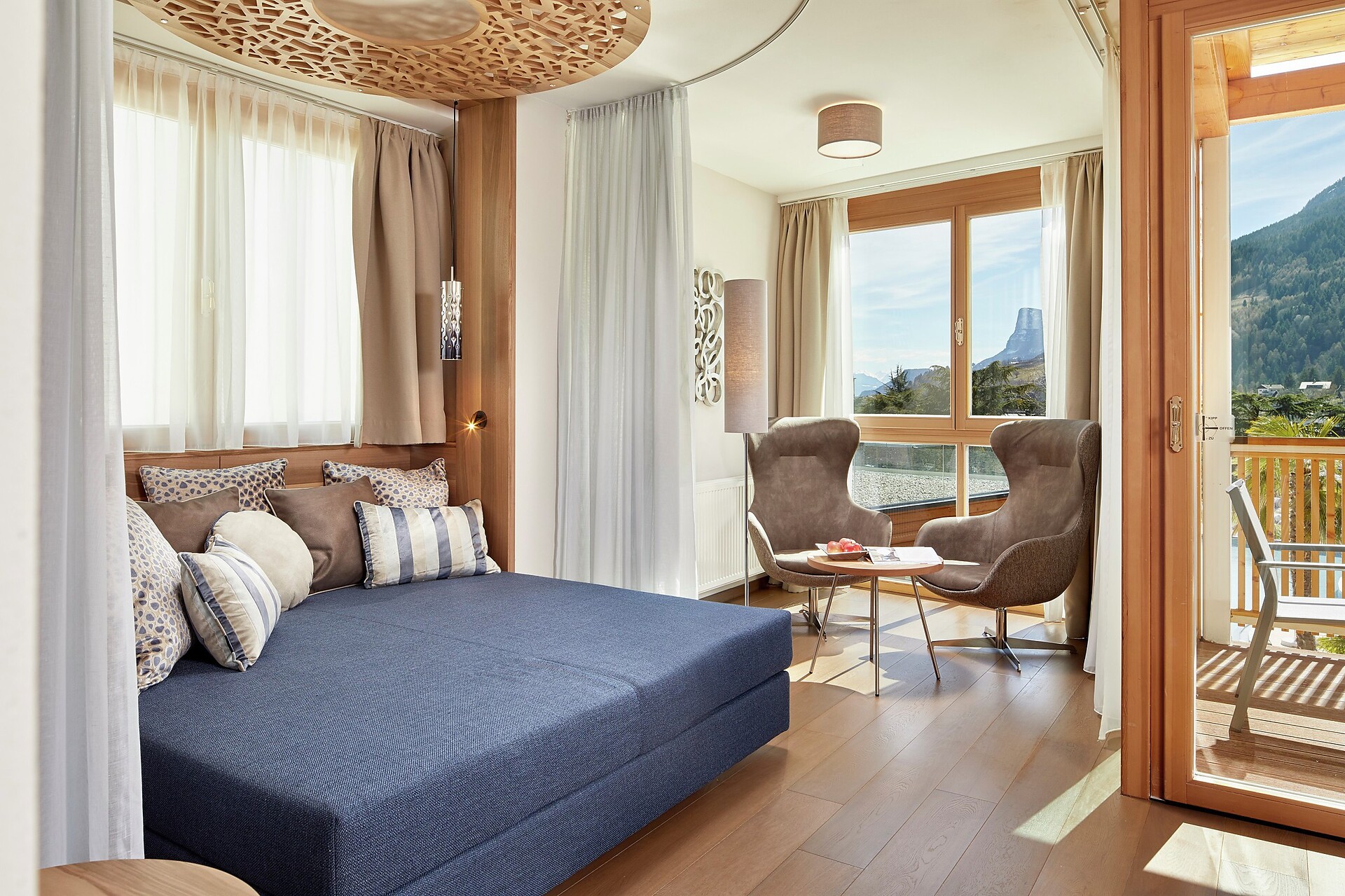 Benvenuti nel nuovo lusso, dove il tempo diventa secondario e la leggerezza caratterizza la vita quotidiana. Immerso nella natura soleggiata di Völlan vicino a Merano, l’ALPIANA unisce la chiarezza alpina con l’armonia mediterranea e colpisce con la sua architettura lineare e minimalista. La nuova facciata verde integra l’hotel ancora più naturalmente nel paesaggio di frutteti e boschi.