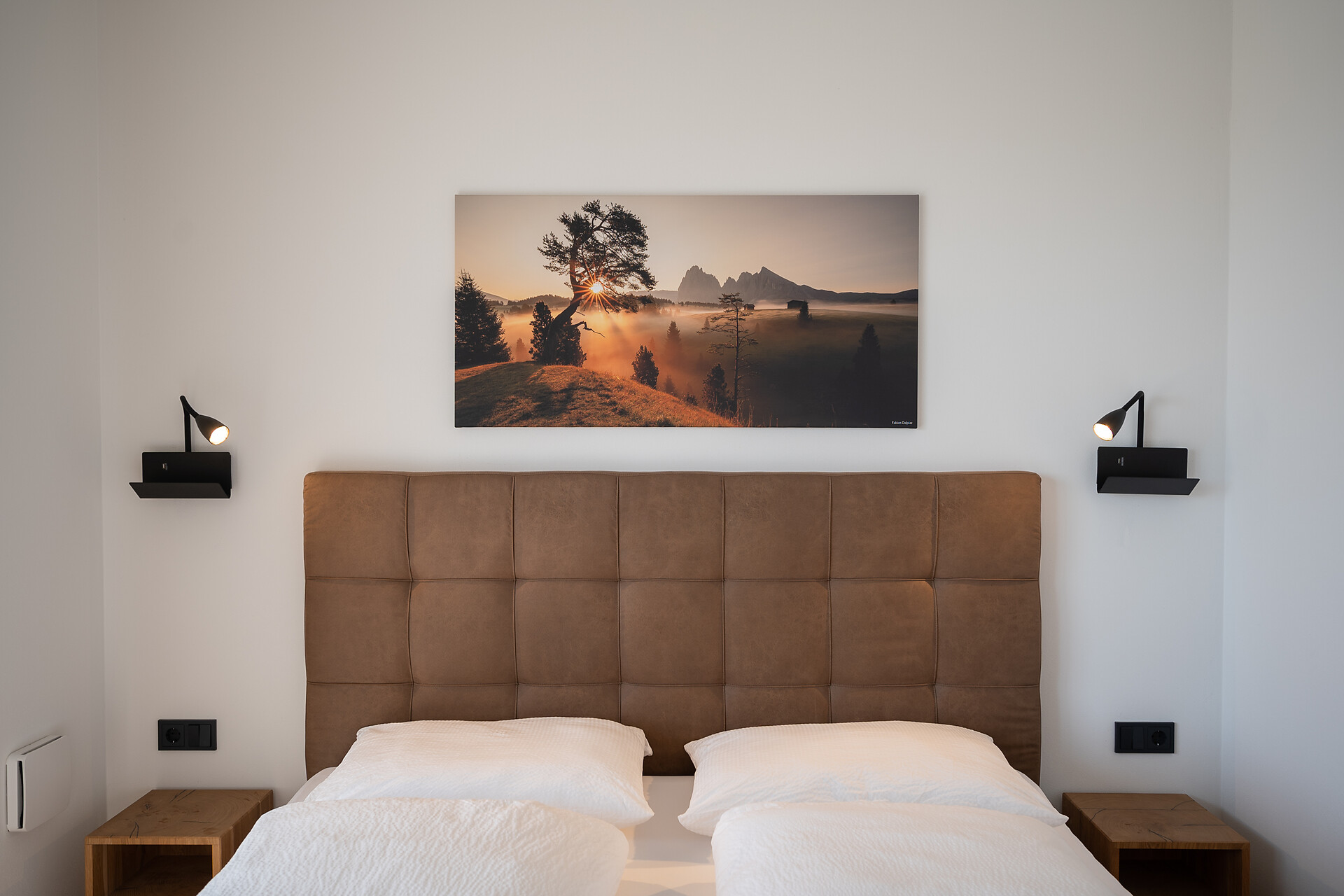 L'appartamento “Südblick”, spazioso, luminoso ed esposto a sud, di 65 m², si trova al primo piano e può ospitare da 2 a 6 persone. Dispone di una camera matrimoniale con materasso premium, una camera con letto a castello familiare (letto superiore 90x200 cm e letto inferiore 140x200 cm) e un bagno moderno con doccia, WC, bidet, asciugacapelli e mobili da bagno eleganti. Nella luminosa zona giorno open space si trovano un accogliente divano (che può essere utilizzato anche come divano letto per 2 persone con un materasso di alta qualità), un comodo tavolo da pranzo con panca e una TV satellitare a schermo piatto. La cucina è completamente attrezzata con lavastoviglie, forno, bollitore, moka italiana, stoviglie, pentole e vari utensili da cucina. Sulla terrazza di 55 m², parzialmente coperta, sono disponibili moderni mobili da giardino, sedie a sdraio e un salotto da giardino. L'aria condizionata e il riscaldamento a pavimento garantiscono un clima interno piacevole. Potete parcheggiare la vostra auto nel garage, dove è disponibile anche un deposito sicuro per le biciclette.