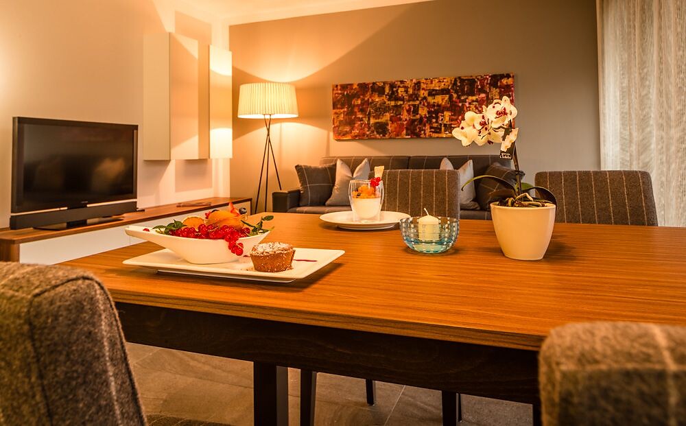55 m² con giardino privato e grande terrazza vista sud-ovest. Ampio soggiorno open space con divano letto, camera con letti king size, bagno con doccia a pioggia e doppi lavabi, asciugacapelli, WC e bidè, angolo cottura perfettamente attrezzato con piano cottura in vetroceramica, lavastoviglie, frigorifero e dotazioni complete, TV LCD a schermo piatto con satellitare, radio, cassaforte, telefono e tavolo da pranzo, biancheria da letto, asciugamani da bagno e da sauna, accappatoi e ciabattine, terrazza arredata.