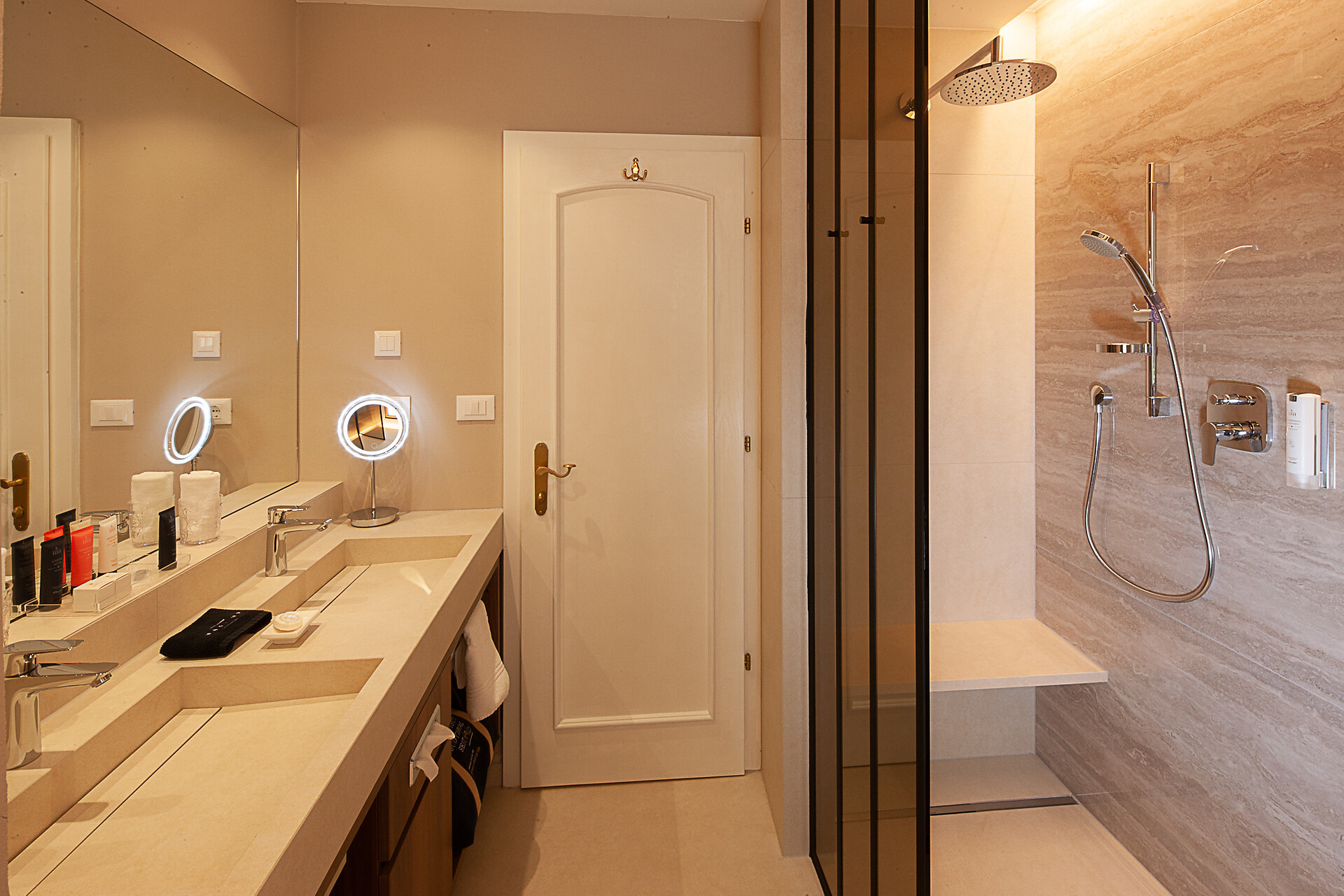 ca. 65 mq, è composta da soggiorno e camera da letto separati, fornito tutto con legno di noce, bagno con vasca e doccia, bidet e servizi separati. La suite dispone inoltre di TV a schermo piatto, di un impianto stereo Bose e di aria condizionata, situata molto silenziosa, compreso posto macchina in garage gratuito.