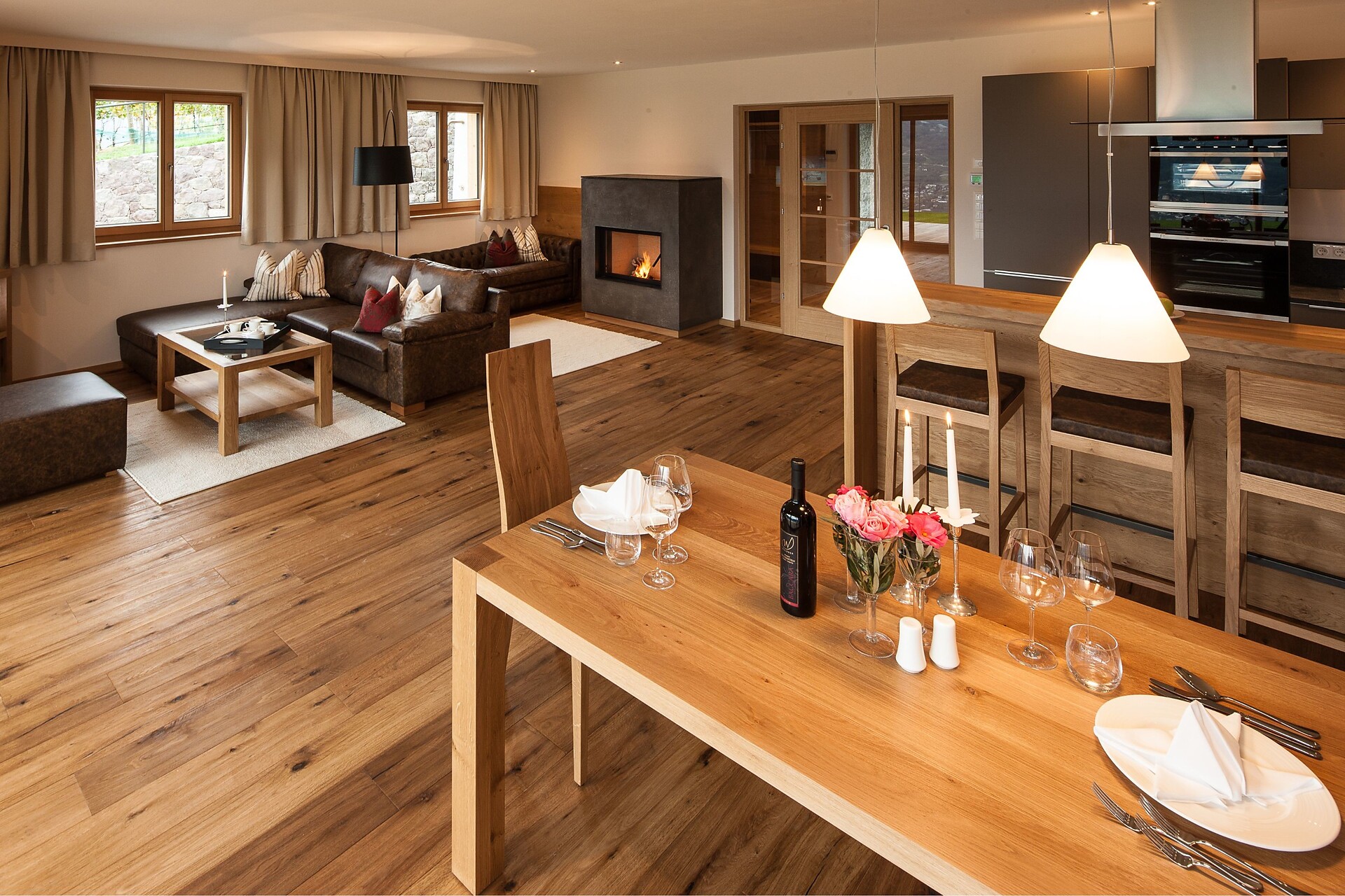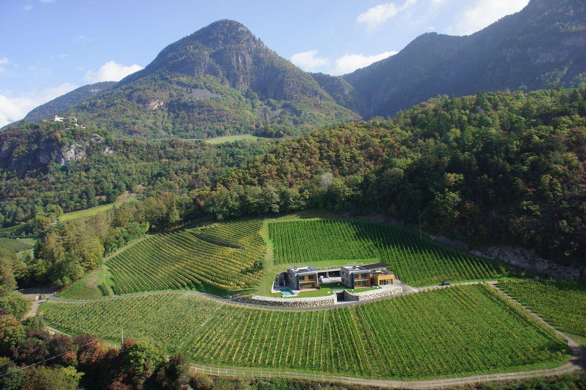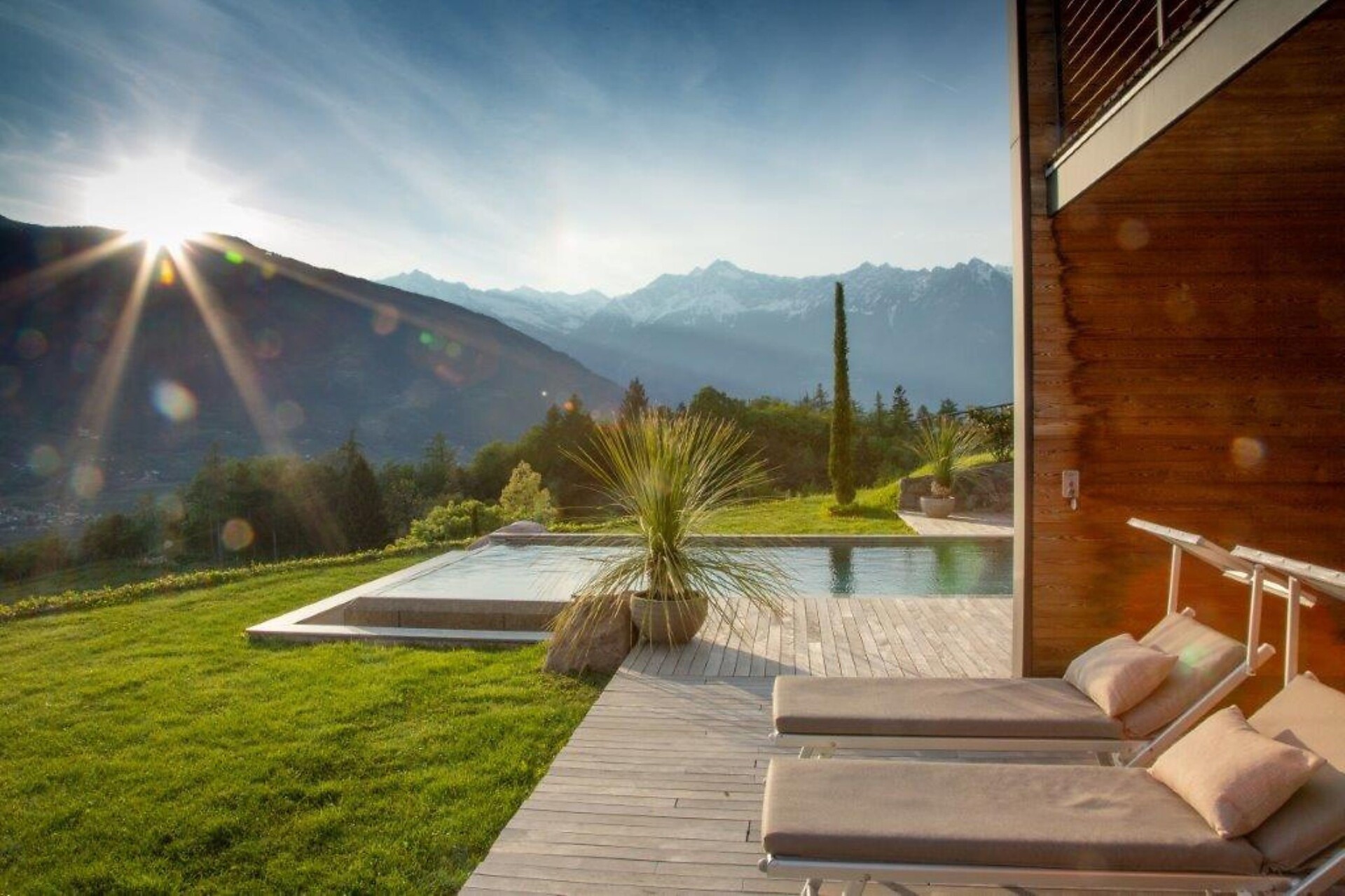 Questo chalet a Montefranco presso Merano (ca. mezz’ora dall’hotel) fa parte della nostra Tenuta vinicola Eichenstein. I moderni interni esclusivi e una superficie di ca. 180 m² sono in grado di esaudire ogni vostro desiderio, mentre il panorama mozzafiato su Merano e la Val d’Adige renderà ancora più prezioso il vostro soggiorno. Dotazioni: cucina abitabile, terrazza panoramica, caminetto, camera da letto-soggiorno con vasca da bagno a posizionamento libero, balcone assolato, centro benessere privato e Infinity Pool riscaldata con sdraio.