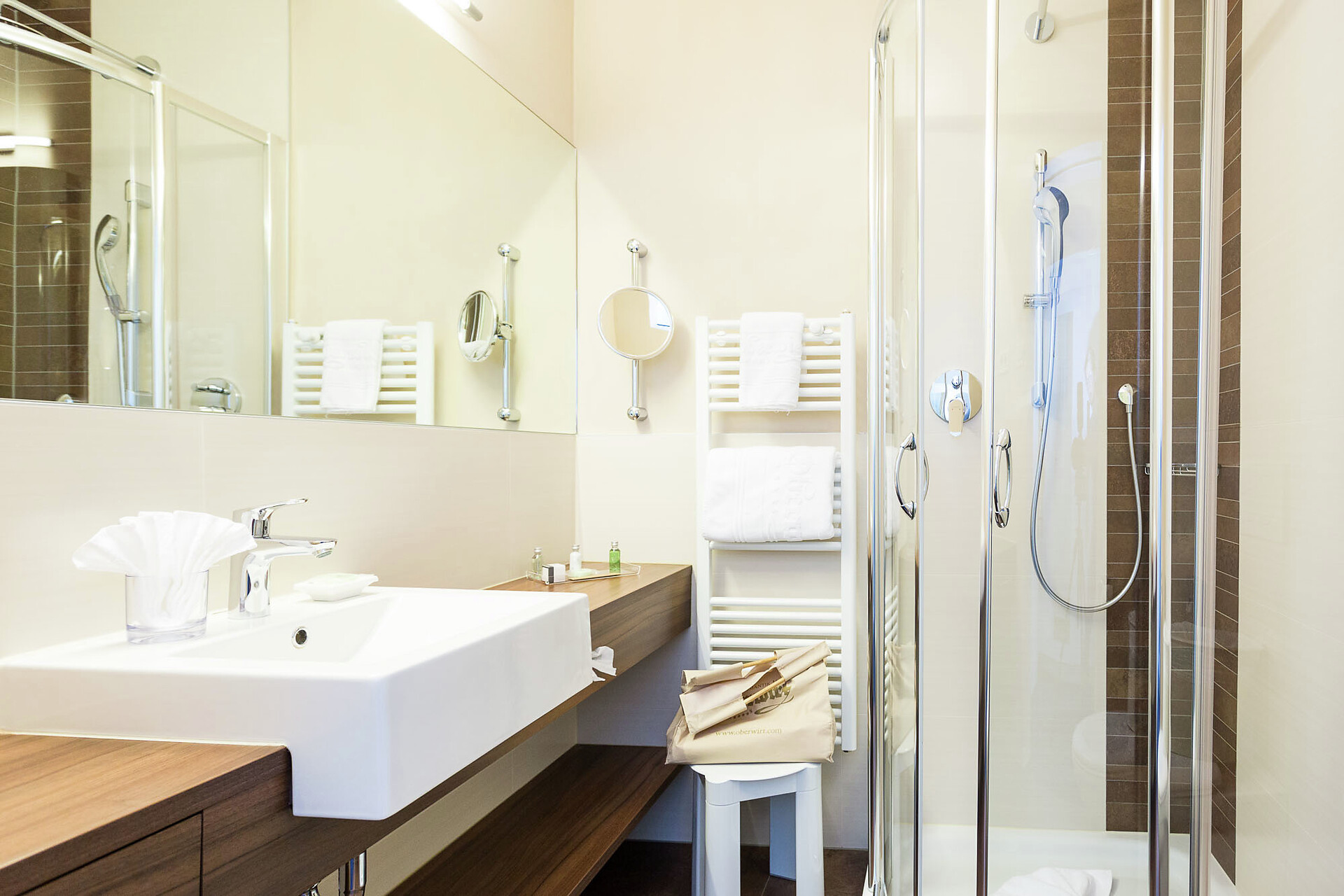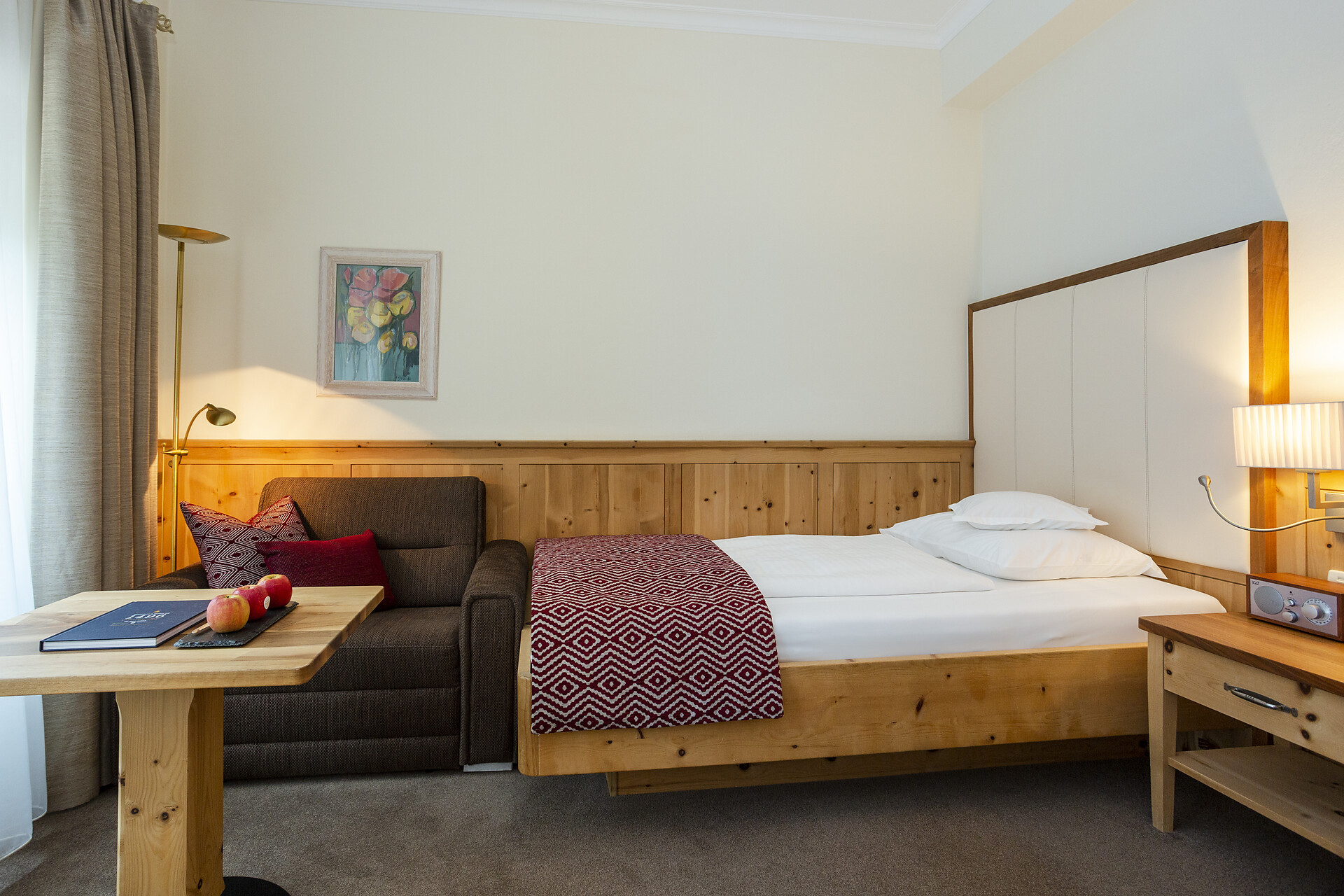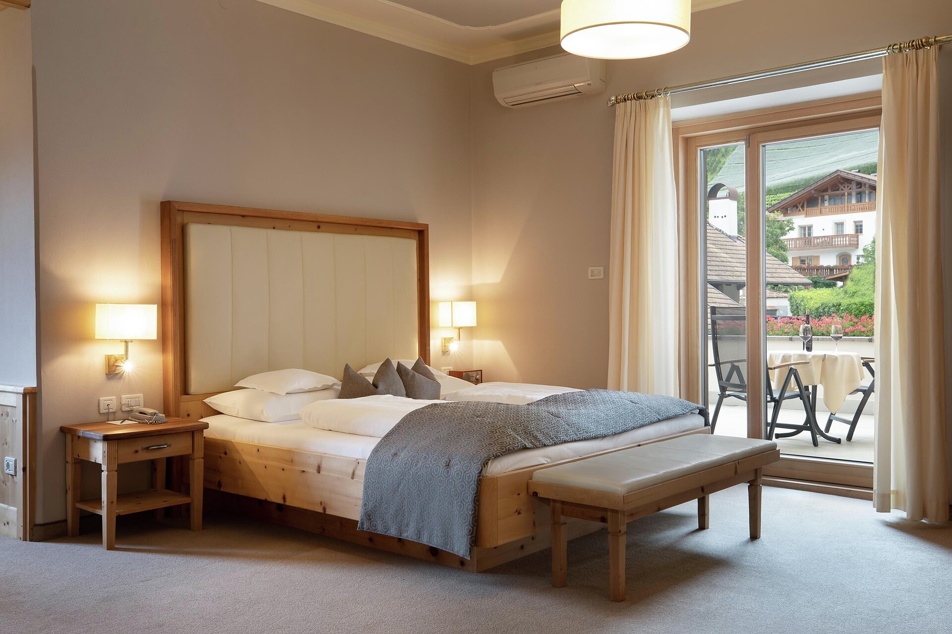Le camere singole (ca. 20 m²) dispongono in parte di ampi letti matrimoniali (1,50 x 2,10), flat-TV, minibar, cassaforte, W-lan, bagno con doccia e WC, aria condizionata e balcone.