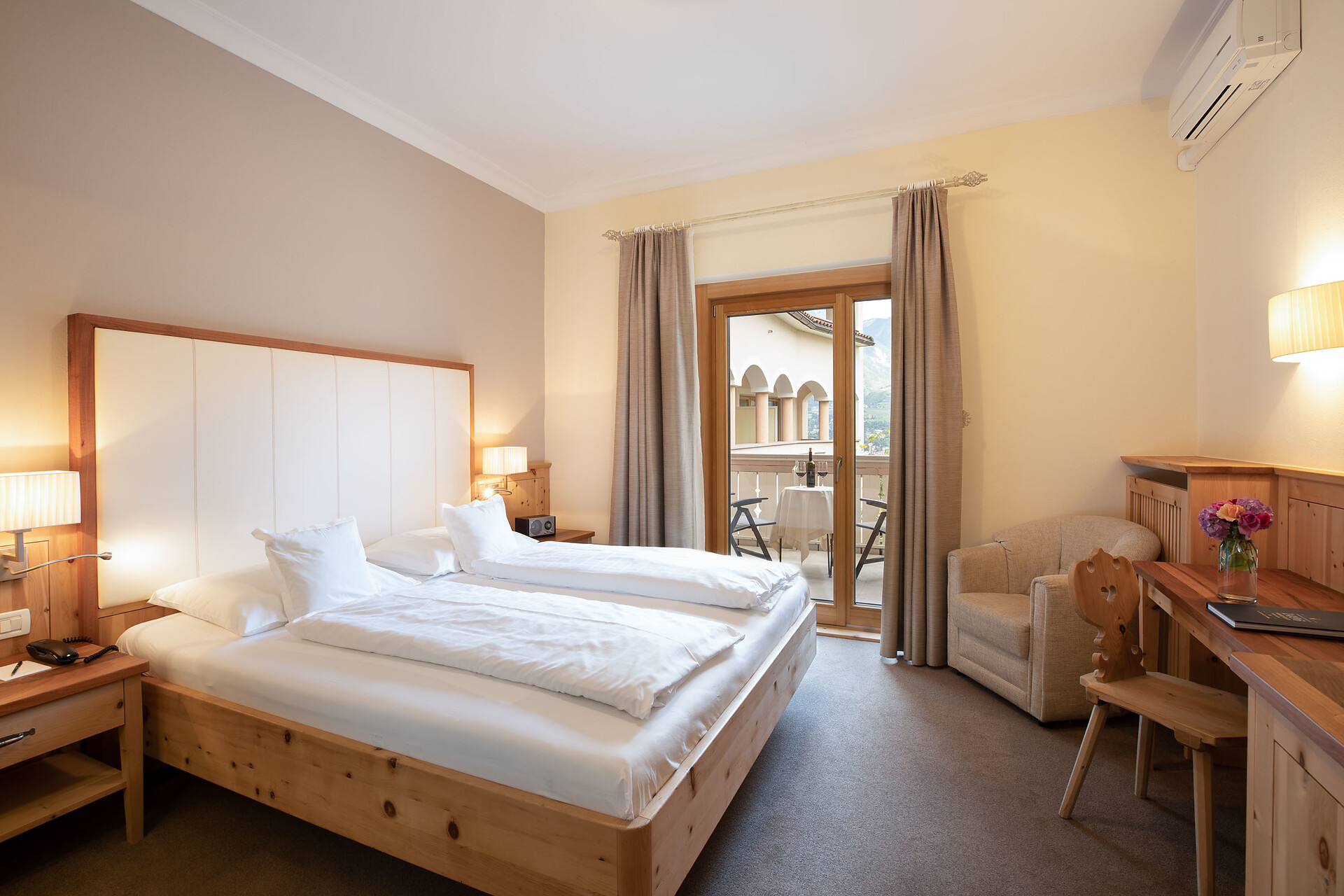 Le confortevoli camere doppie (ca. 25 – 30 mq) dispongono di un letto matrimoniale, flat-TV, minibar, cassaforte, W-lan, bagno con doccia e WC, aria condizionata, balcone in parte.