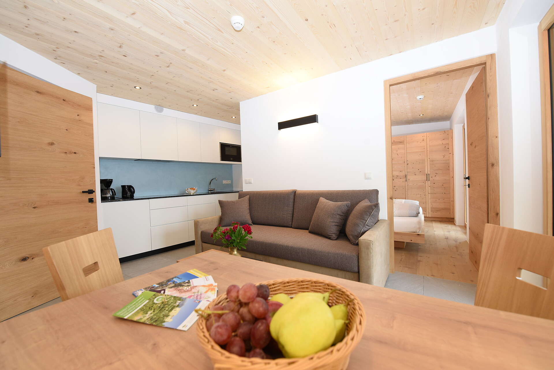 L’appartamento Lärche misura 63m² ed è adatto a 4-6 persone. L'appartamento si trova al secondo piano e dispone di due camere da letto separate e di un divano letto per 2 persone nel soggiorno.